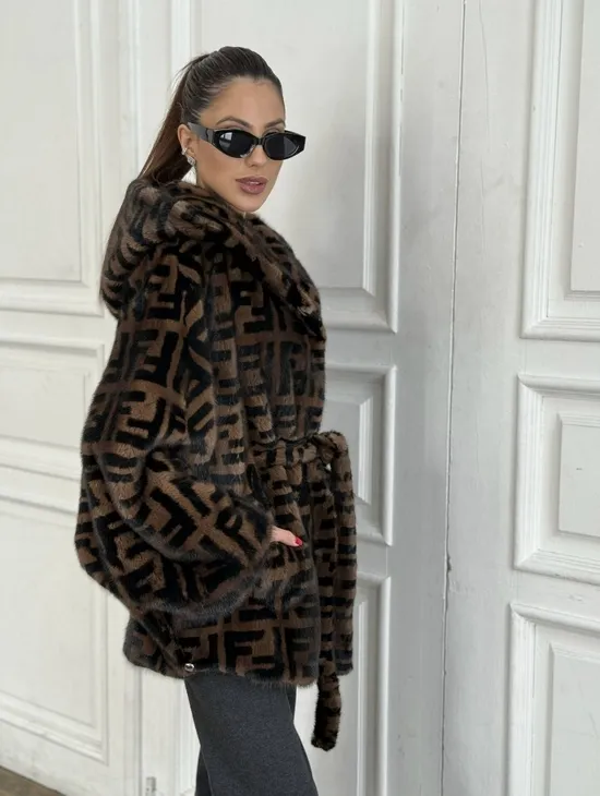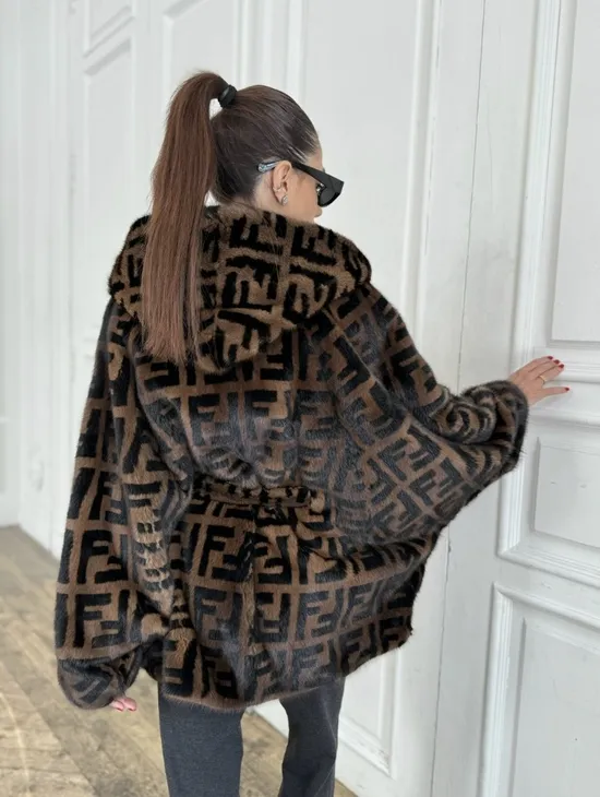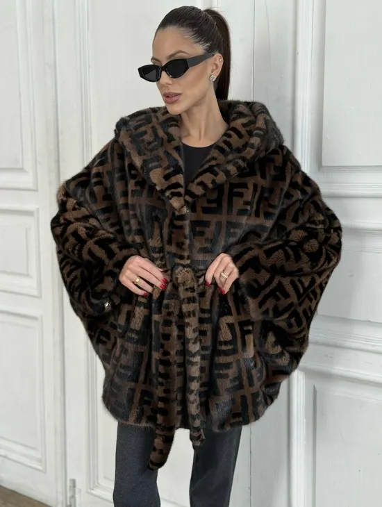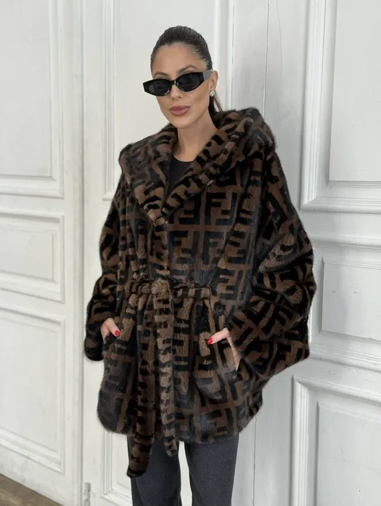 Норка летучая мышь с капюшоном, принт - цвет соболь
