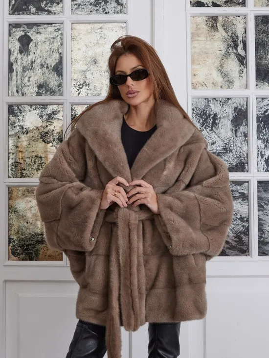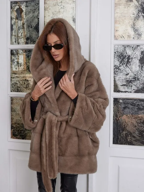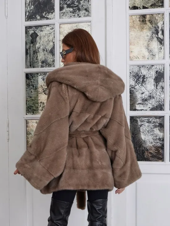 Палевая летучая мышь мех норка с капюшоном - NAFA MILK