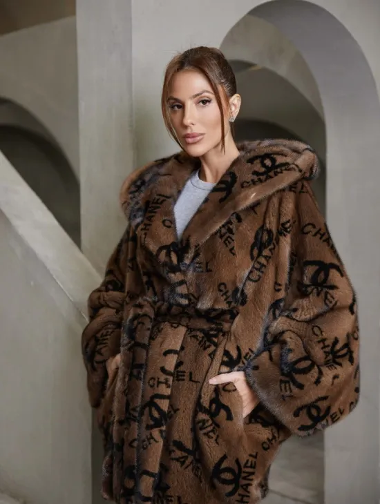 Норковые шубы с капюшоном из куницы