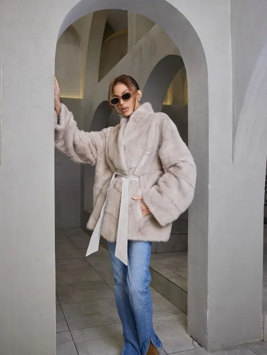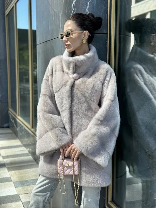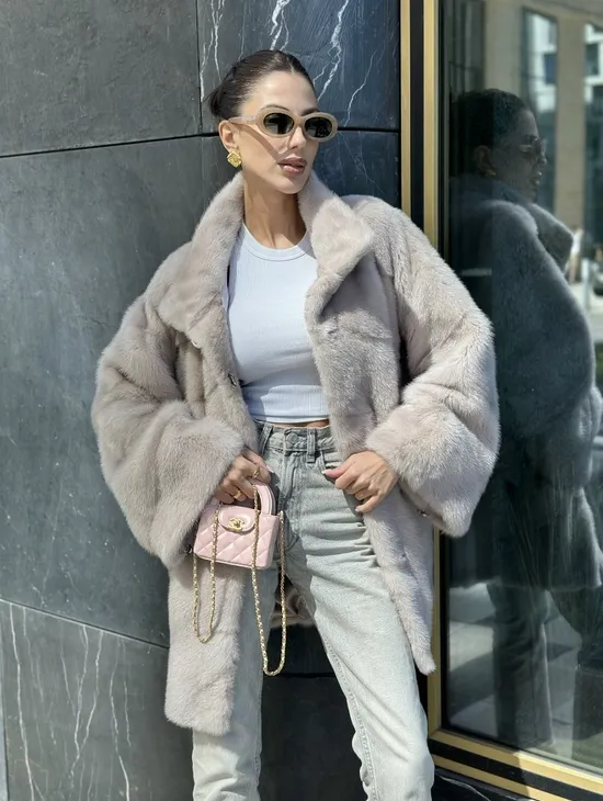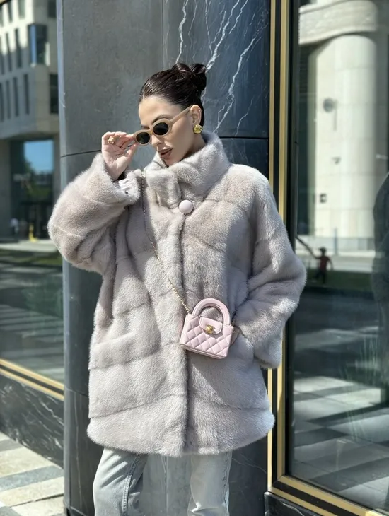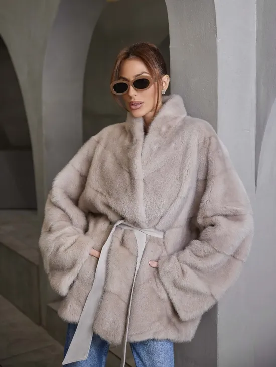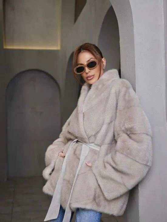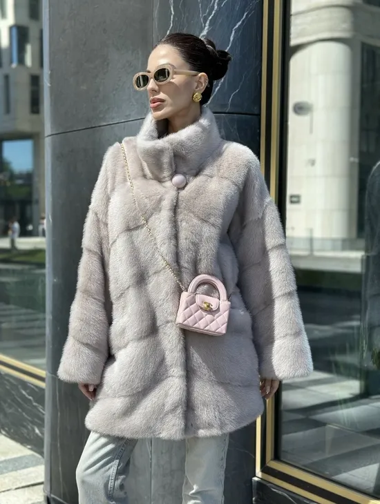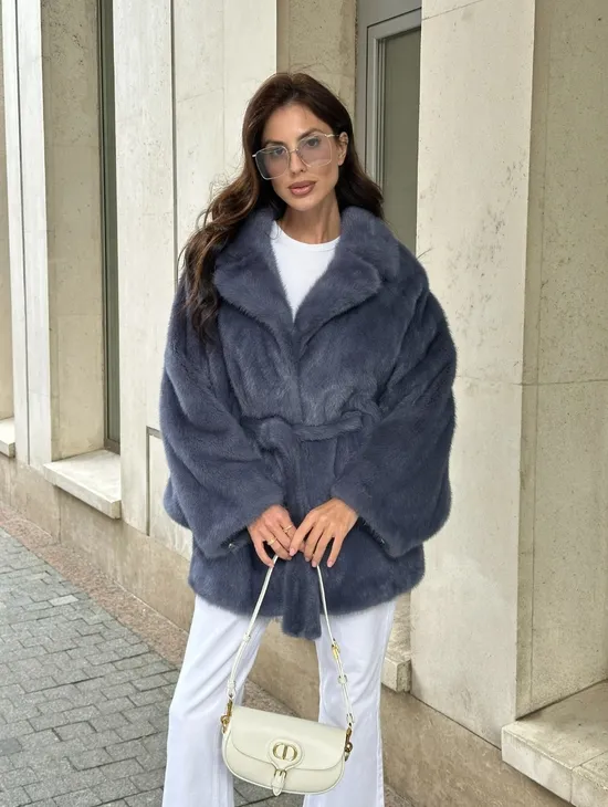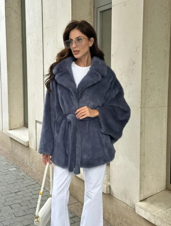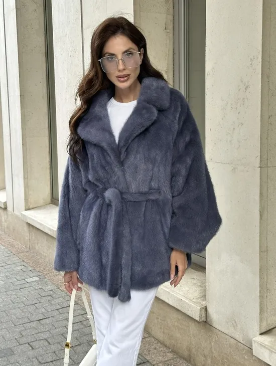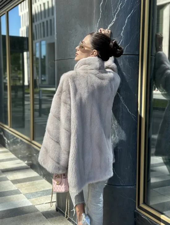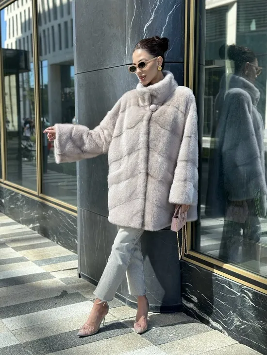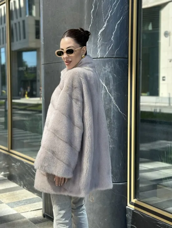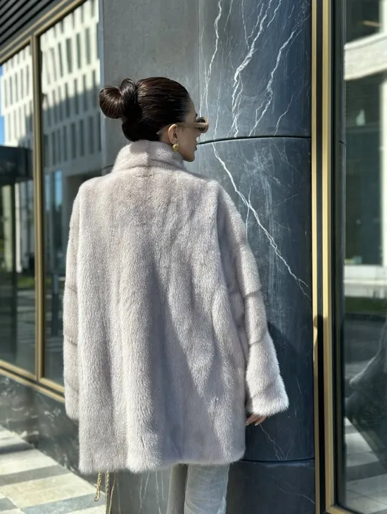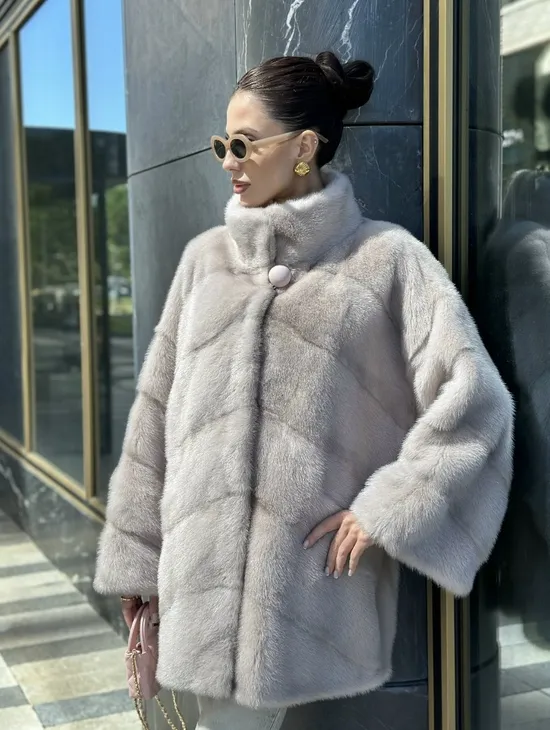 Белоснежное меховое манто из аукционной норки, фасон - летучая мышь