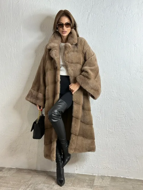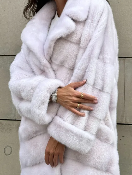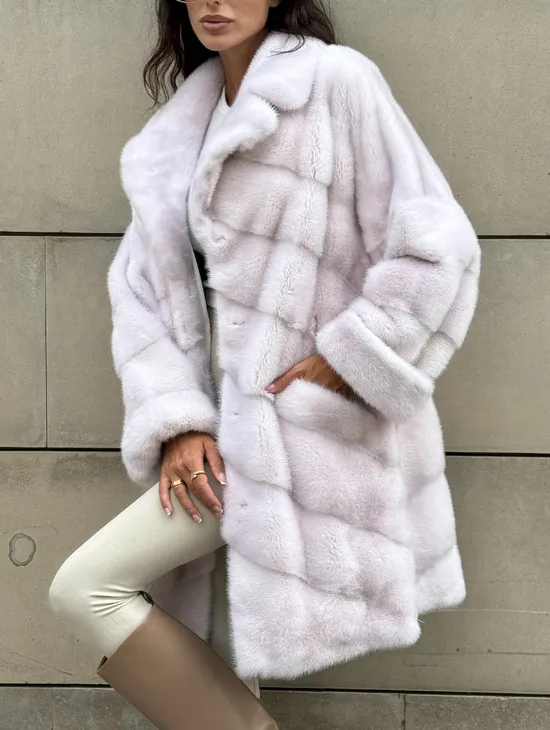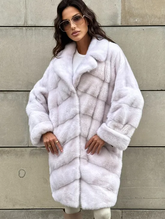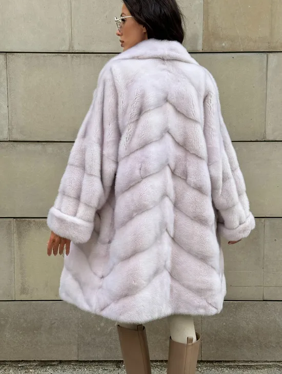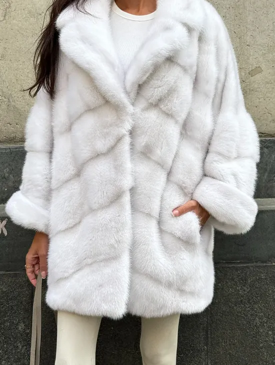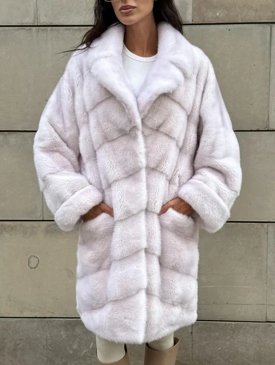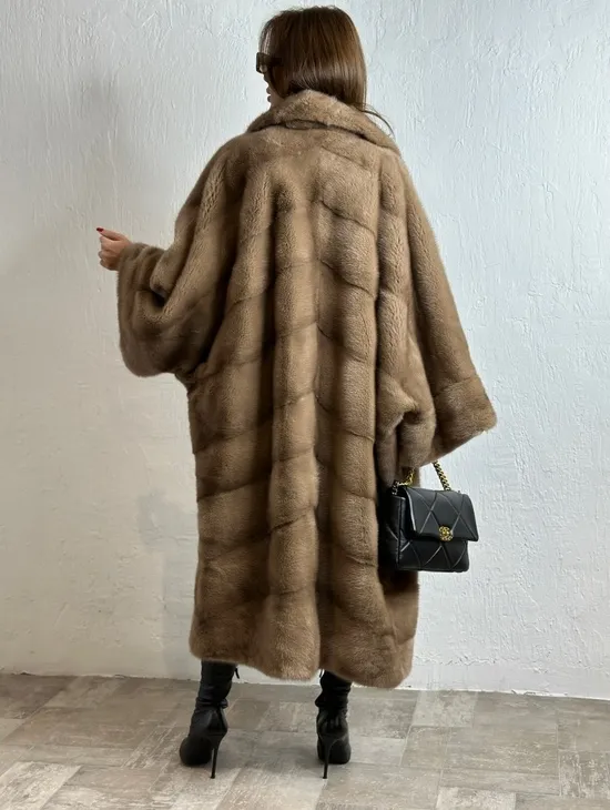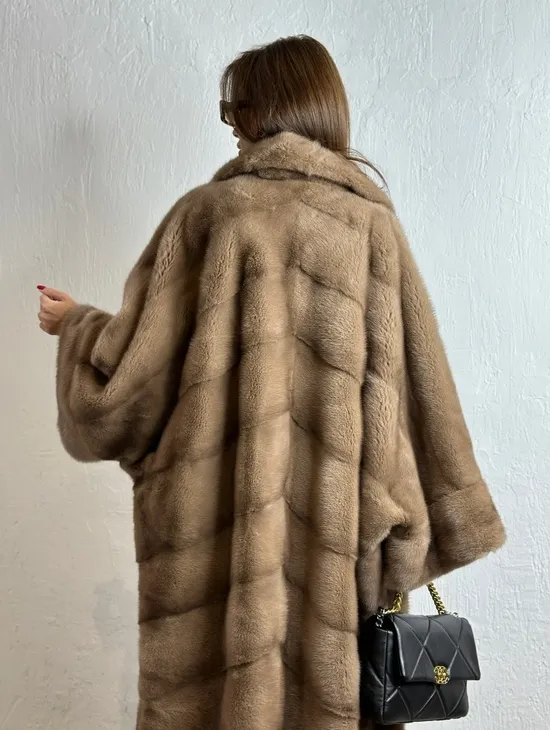 Белоснежное меховое манто из аукционной норки, фасон - летучая мышь