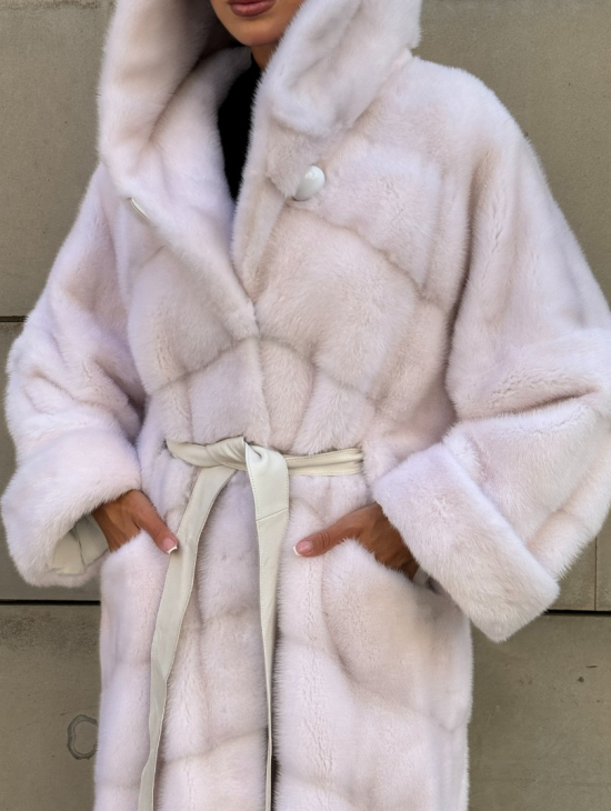Женская норковая шуба NAFA MINK с капюшоном - цвет пастель