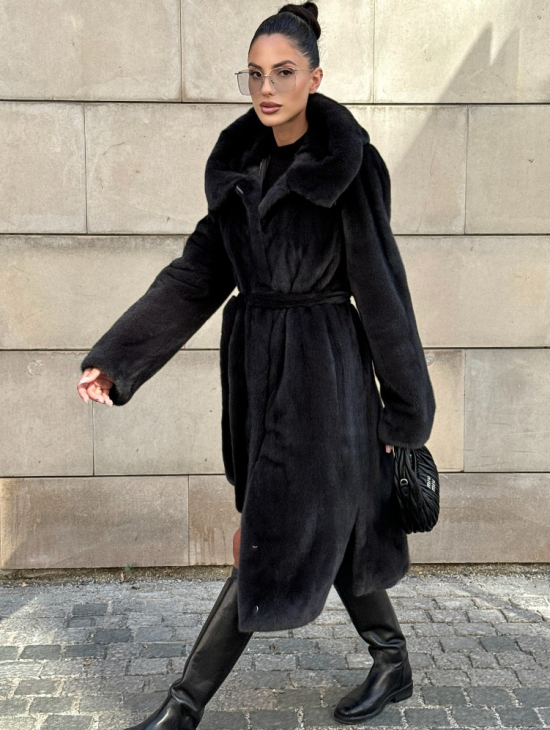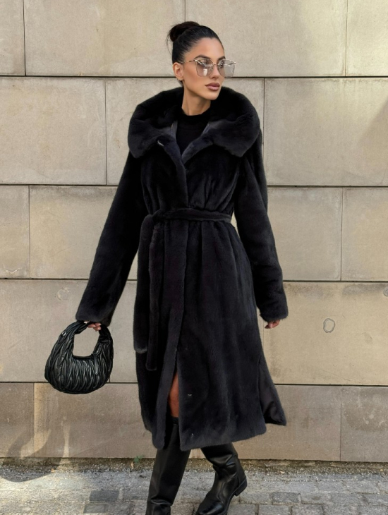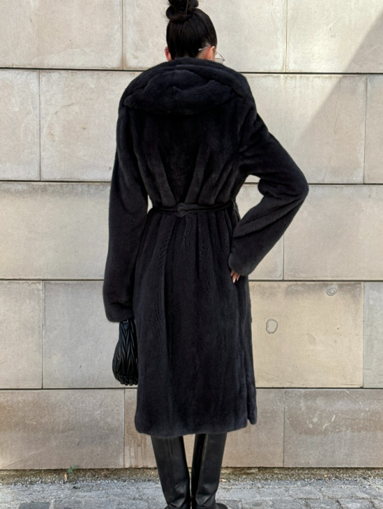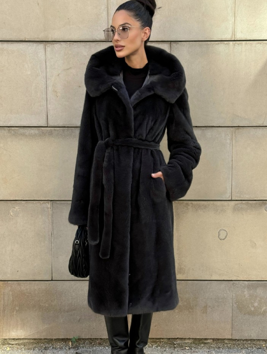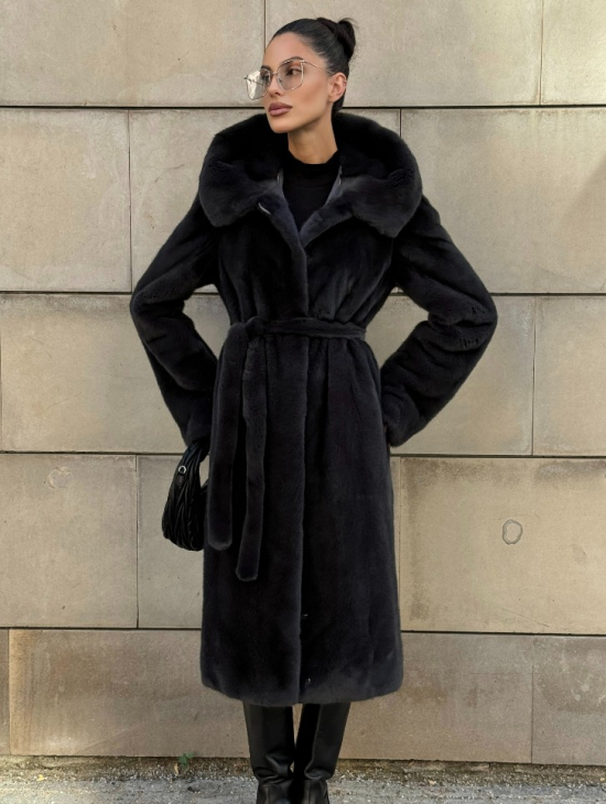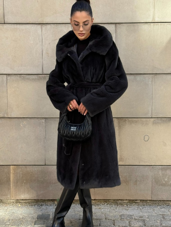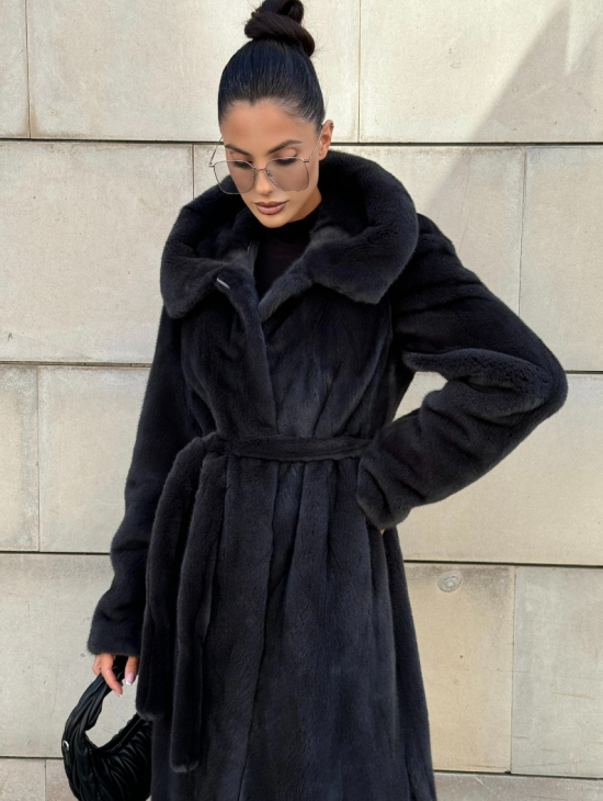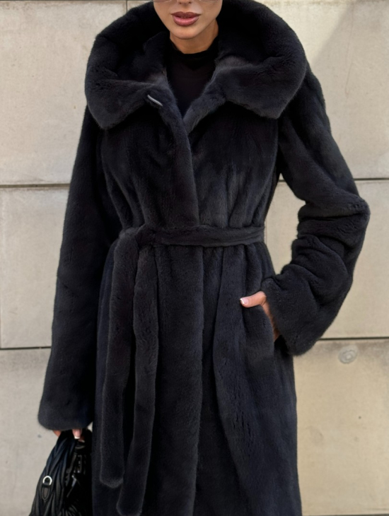Шуба из плюшевой норки Velvet с капюшоном из меха рыси