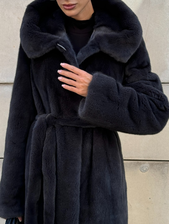 Шуба кимоно из импортной норки с капюшоном в цвете графит