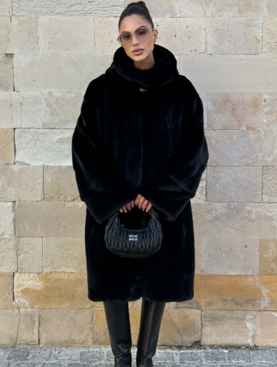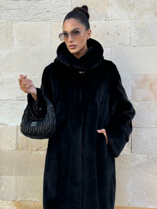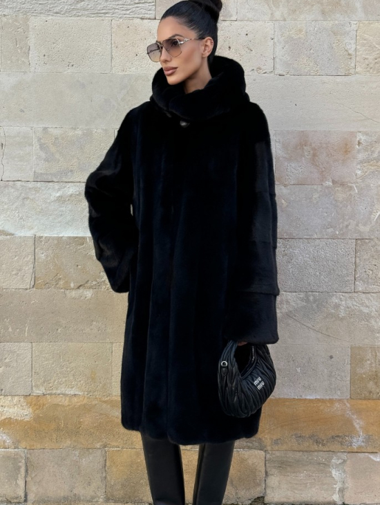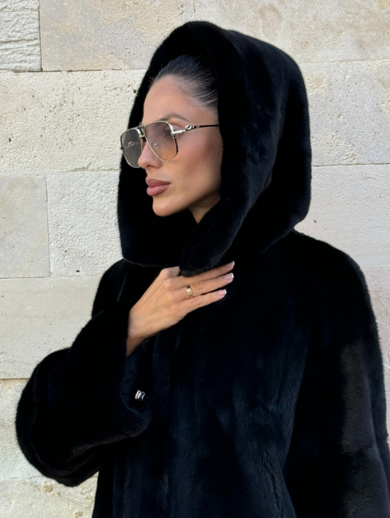 Шуба натуральная женская из норки Blackglama с капюшоном