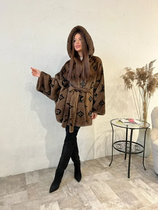 Норковые шубы с капюшоном из куницы