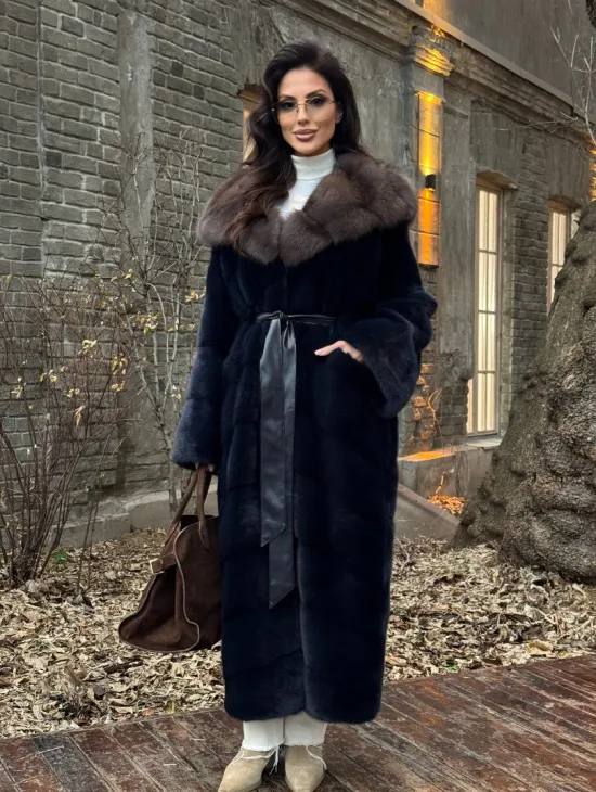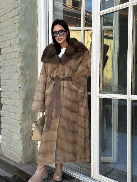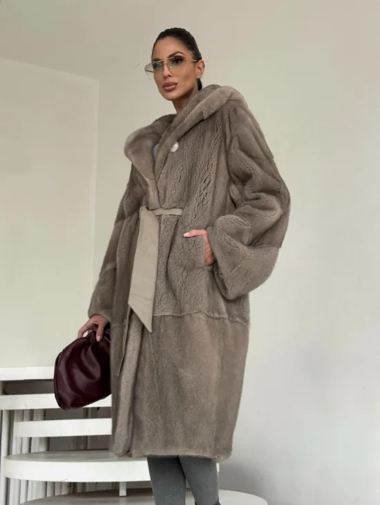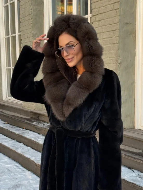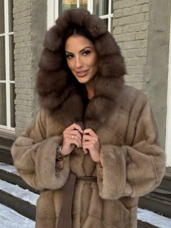 Норковые шубы с капюшоном из куницы