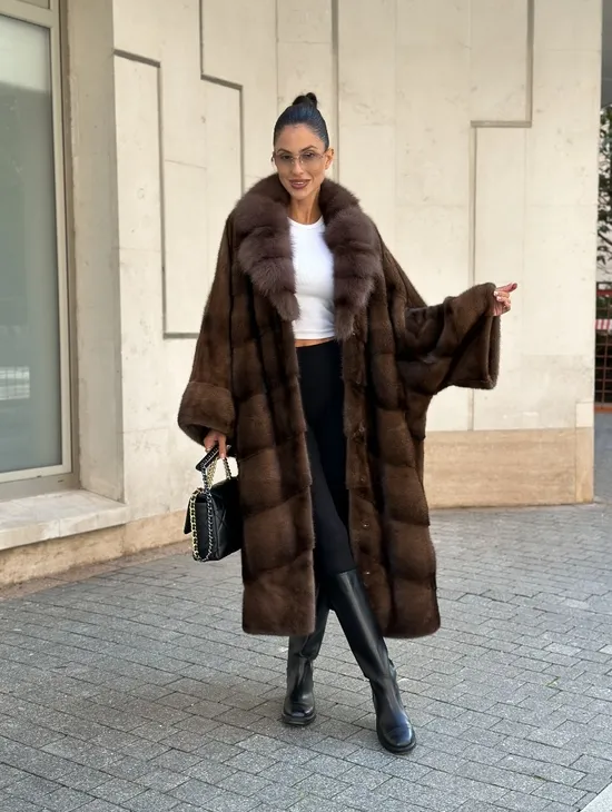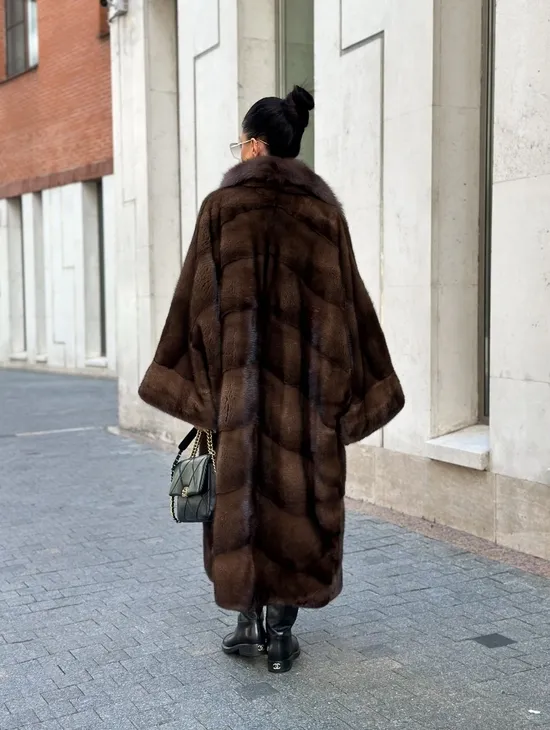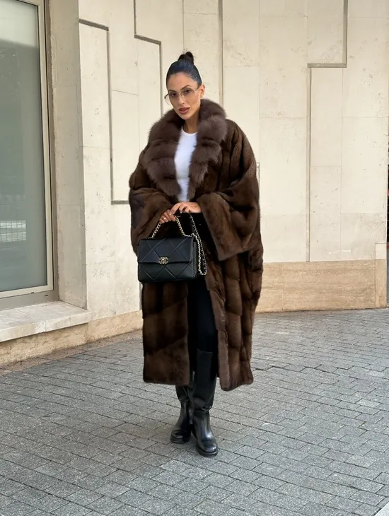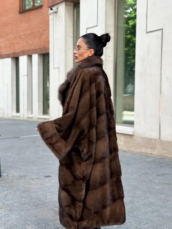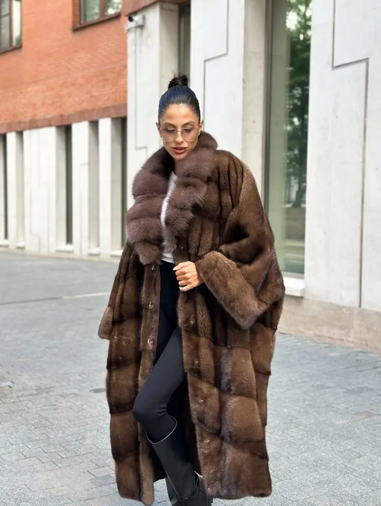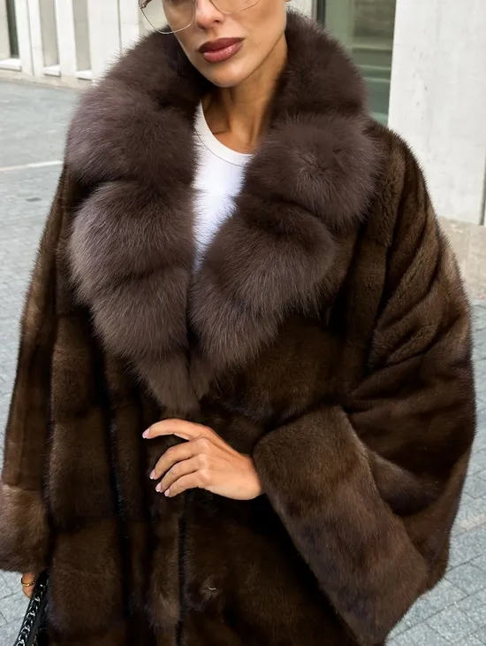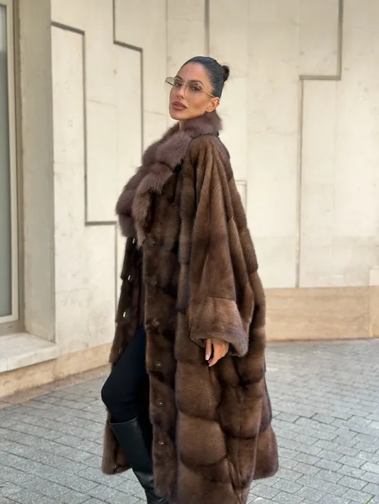 Шуба кимоно LUXURY FASHION из аукционной норки NAFA MINK с английским воротником из меха соболя