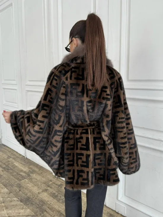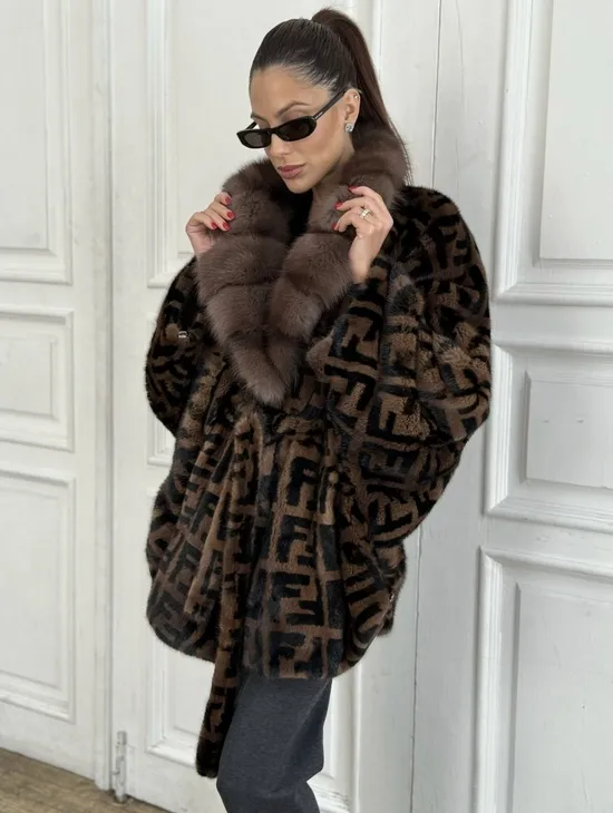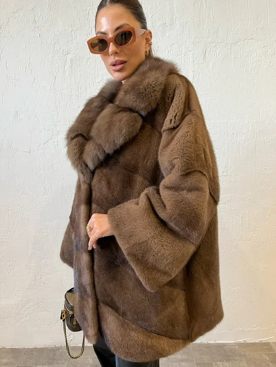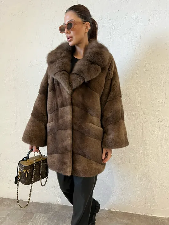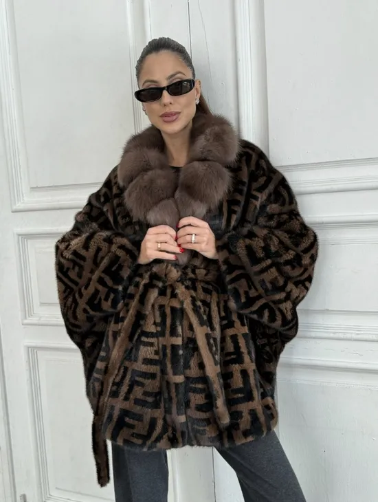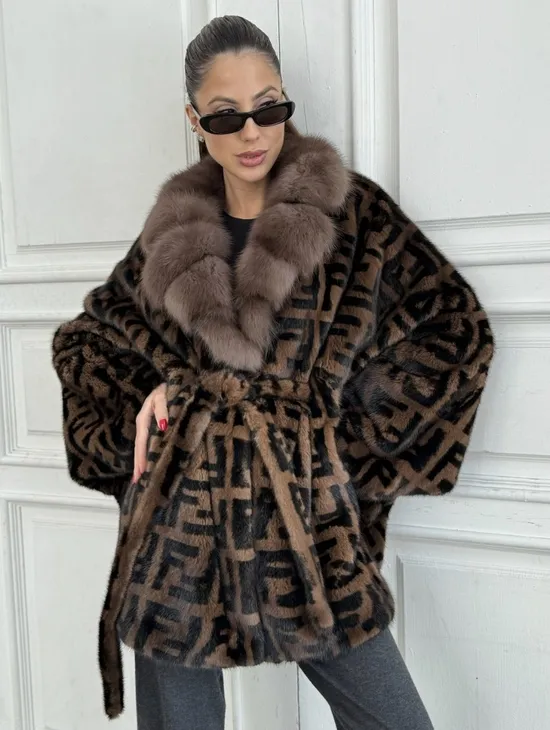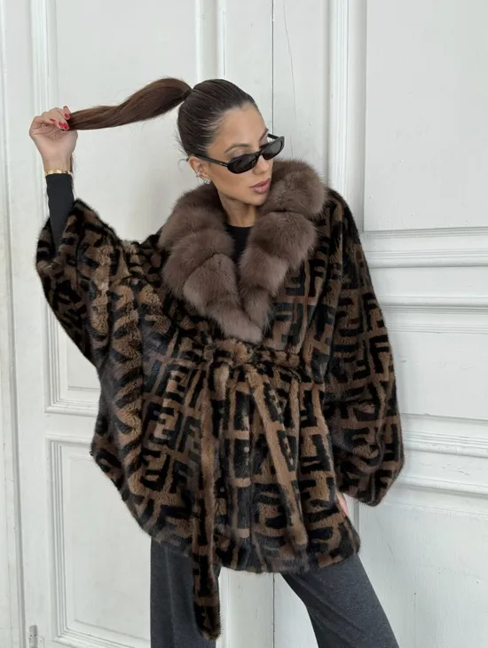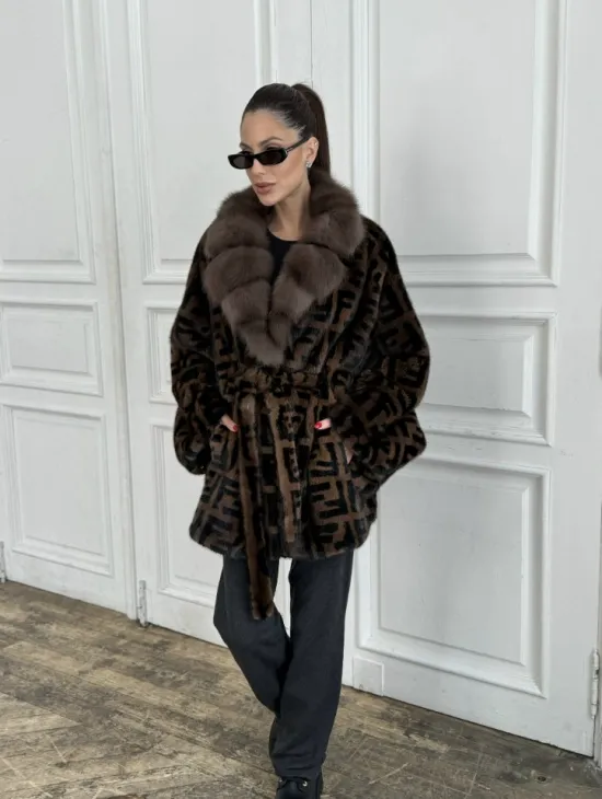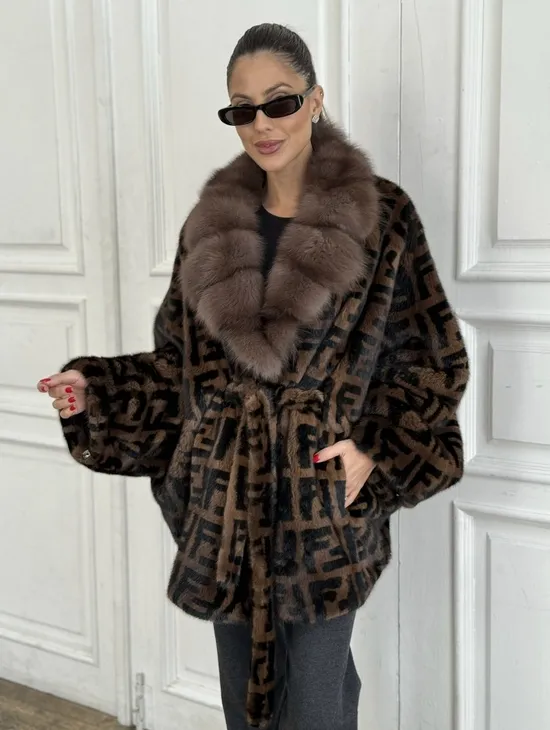 Норка летучая мышь воротник из меха куницы, принт - цвет соболь