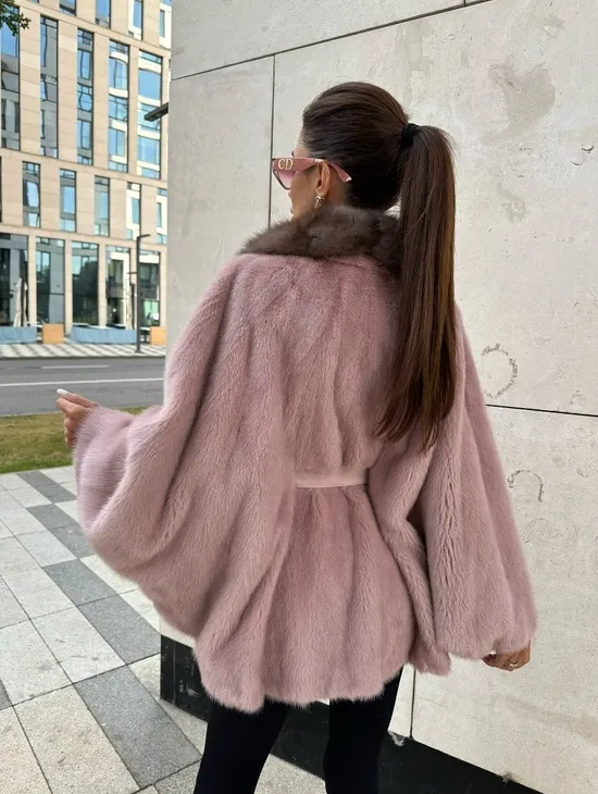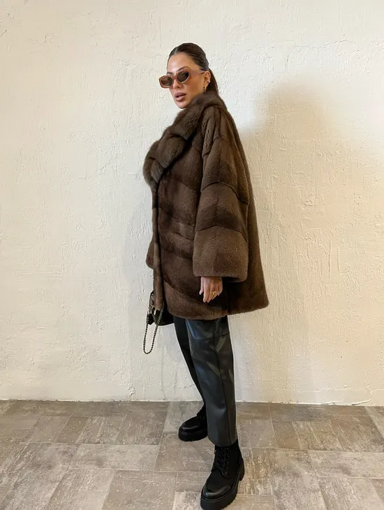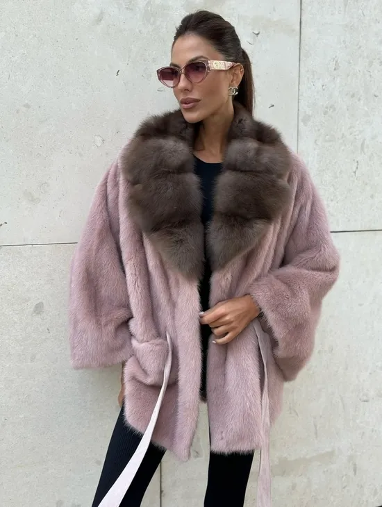 Короткая шуба из меха норки с воротником из меха куницы