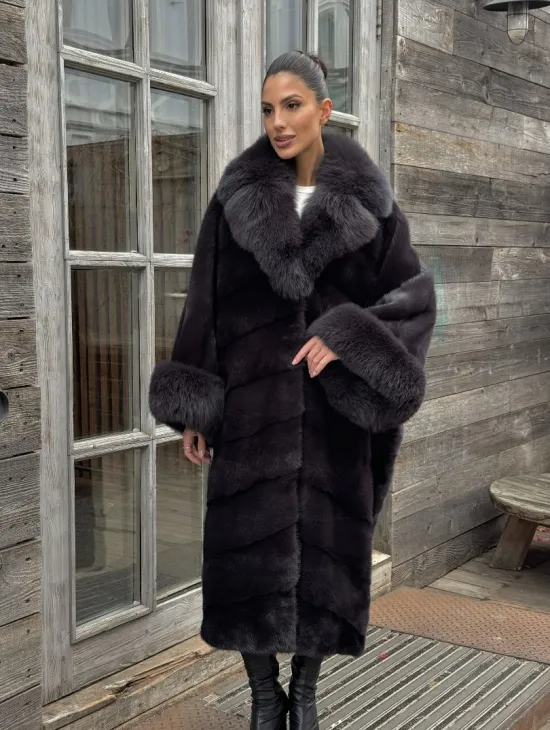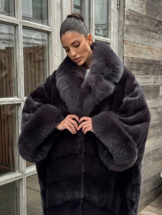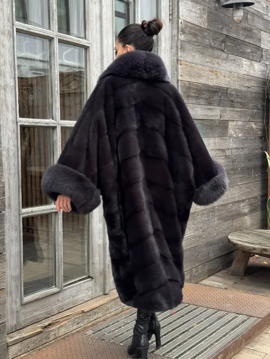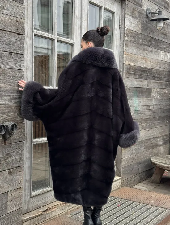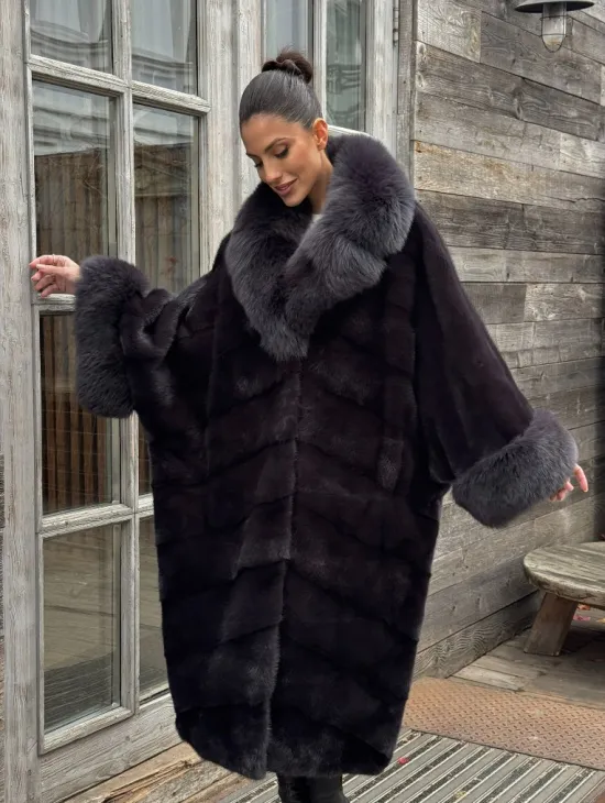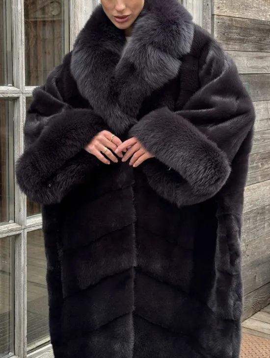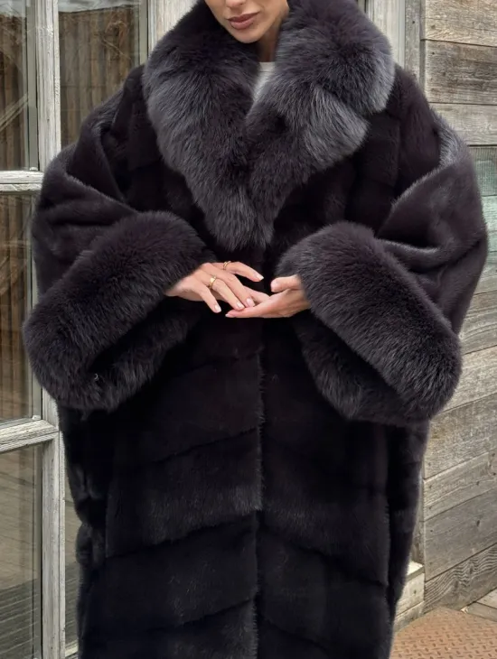 Шуба норковая оверсайз в стиле "Бохо" - цвет темный графит