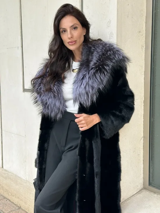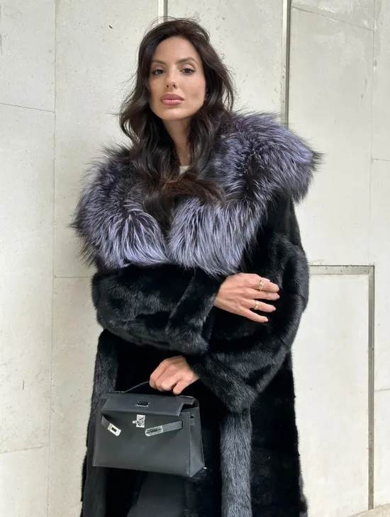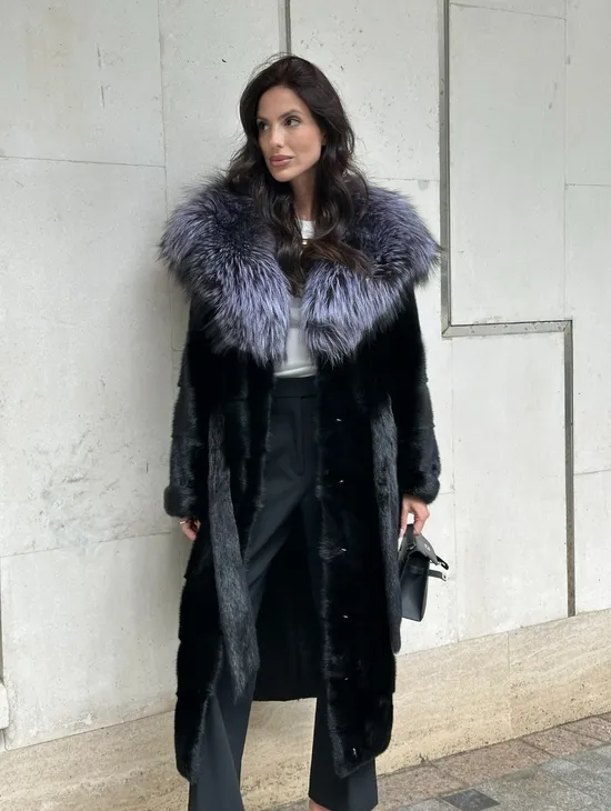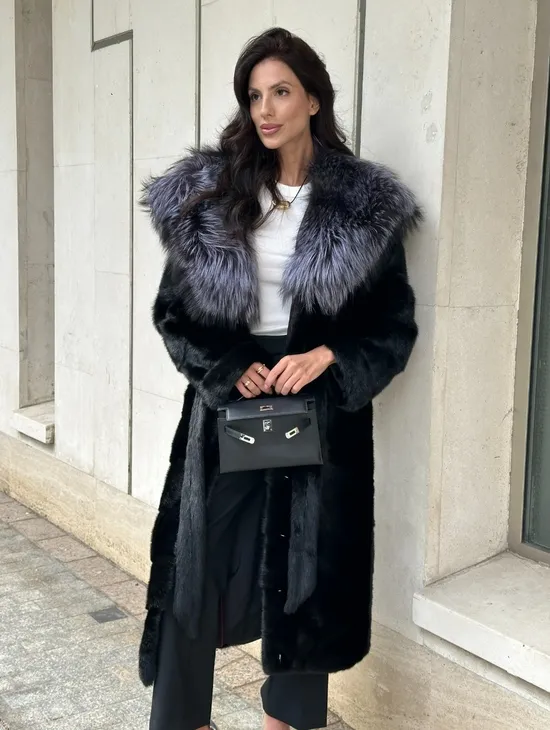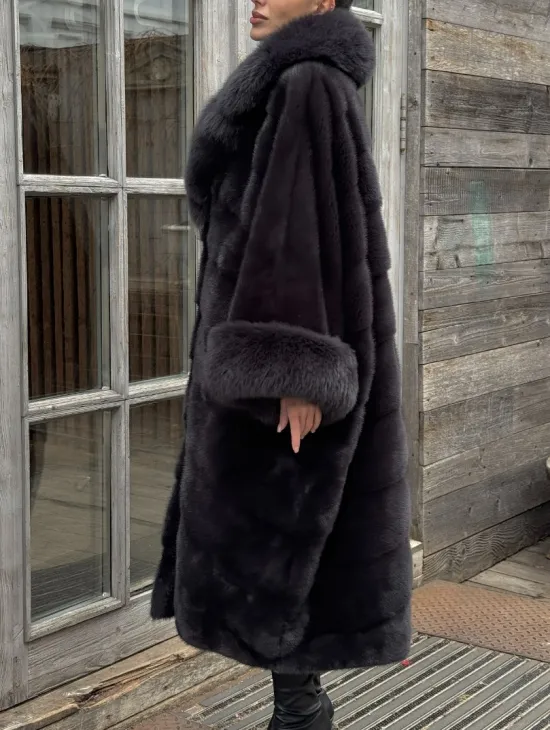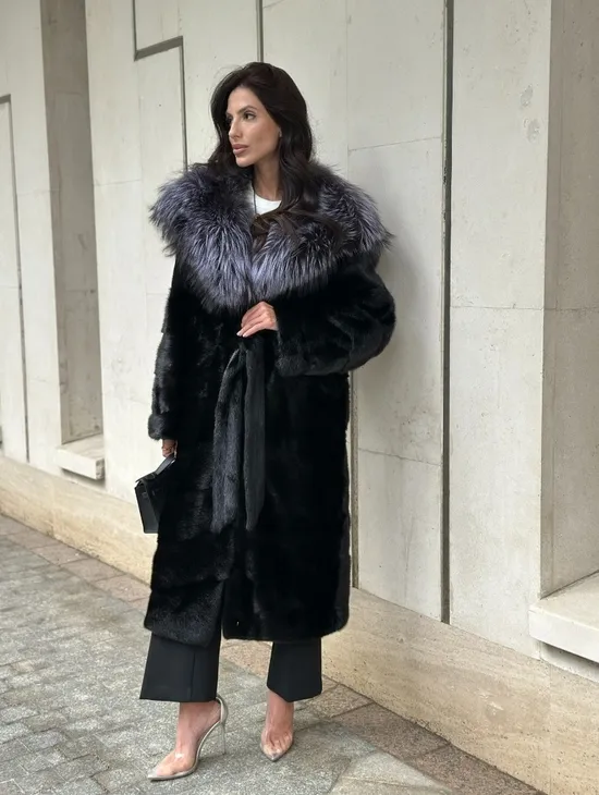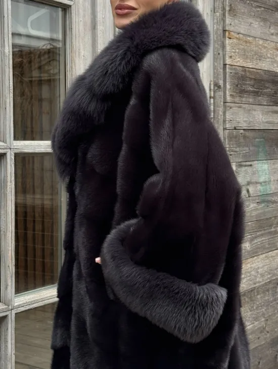 Женская норковая шуба в стиле «Бохо» с отделкой на воротнике и рукавах из меха песца