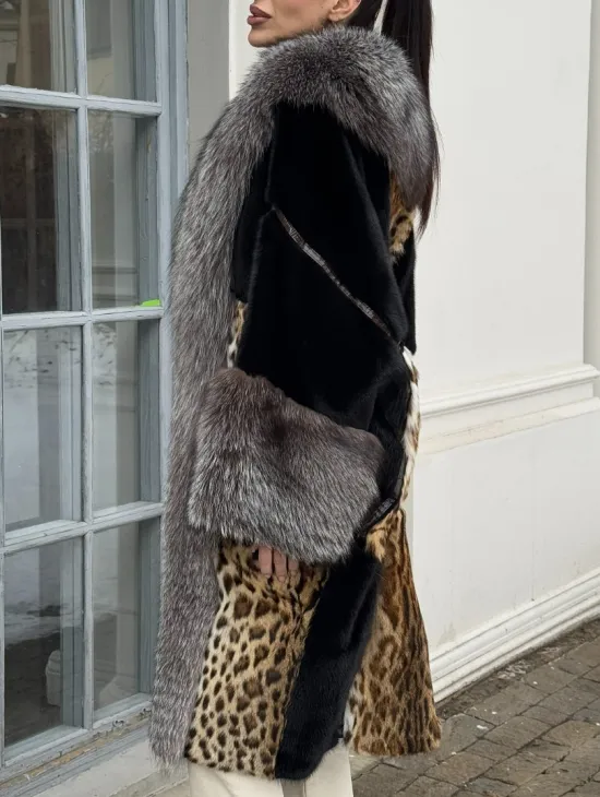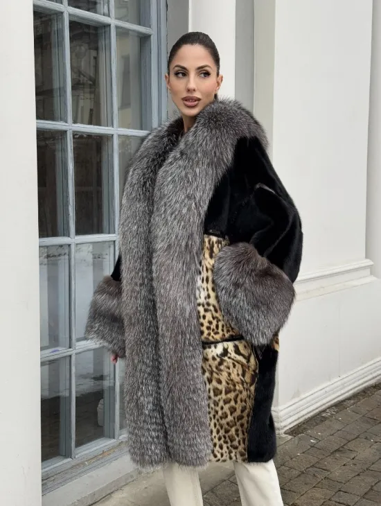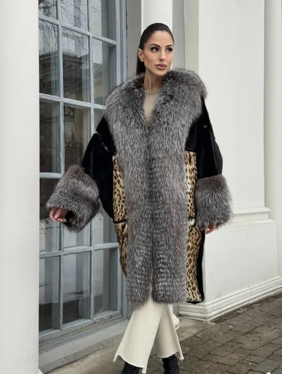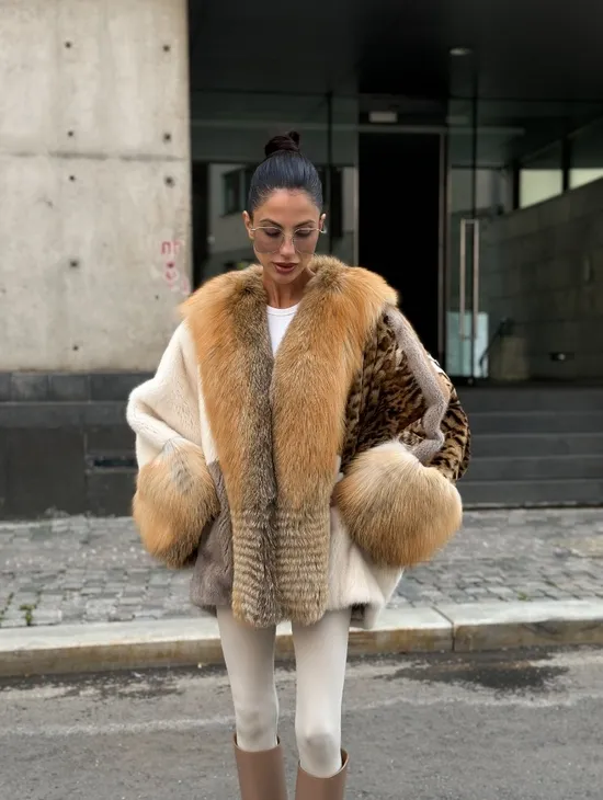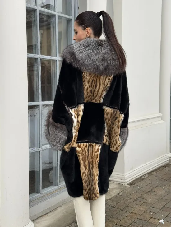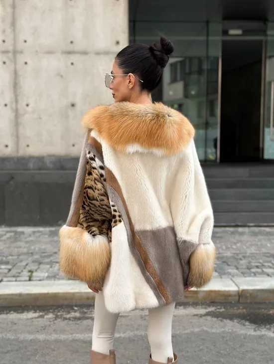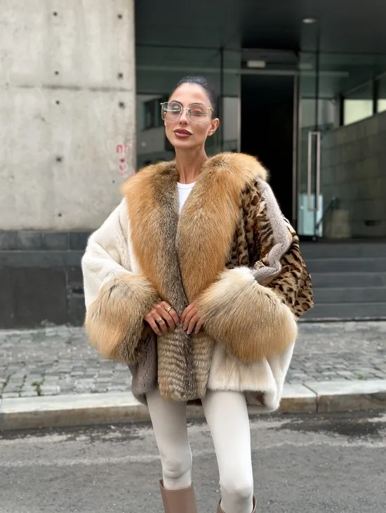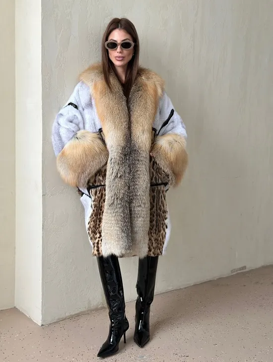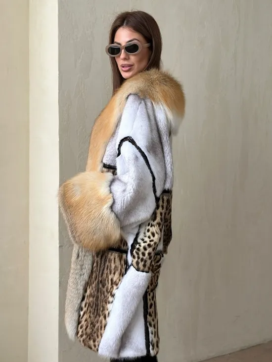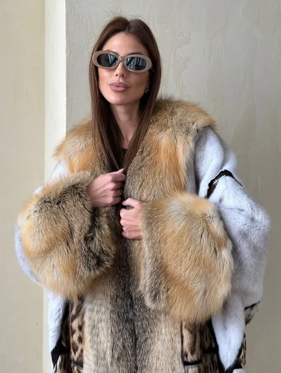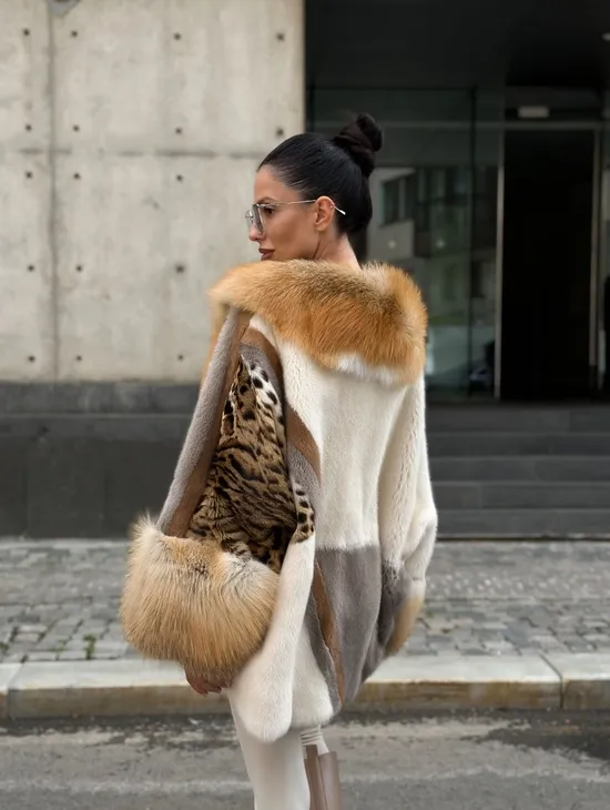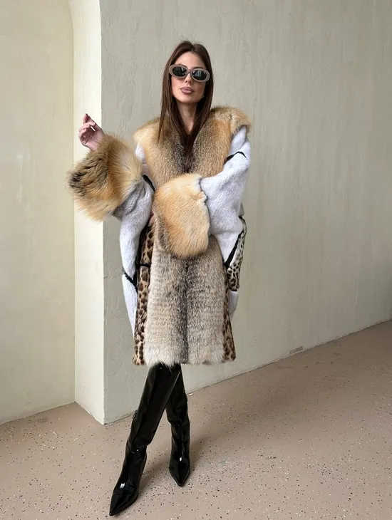 Норковая шуба с капюшоном из лисы под рысь - стиль "Бохо"