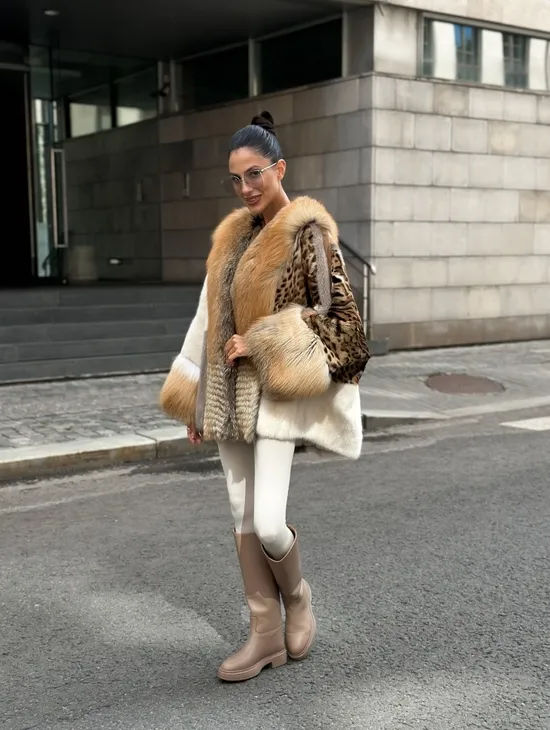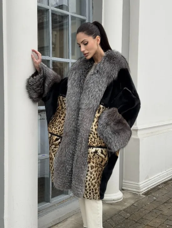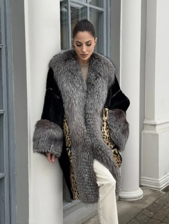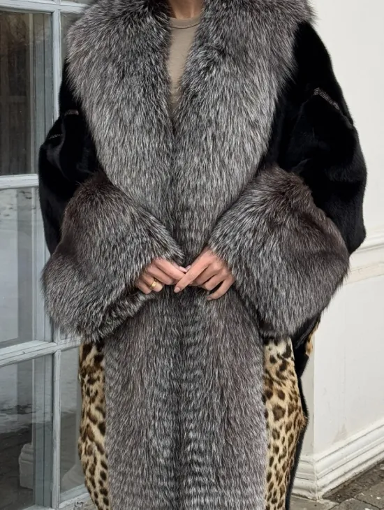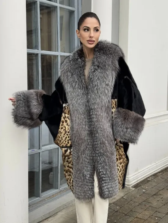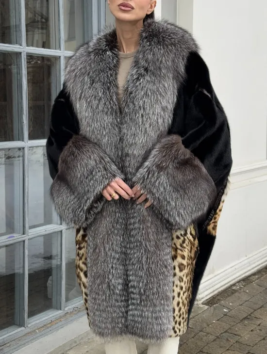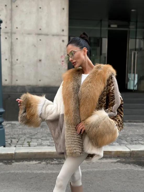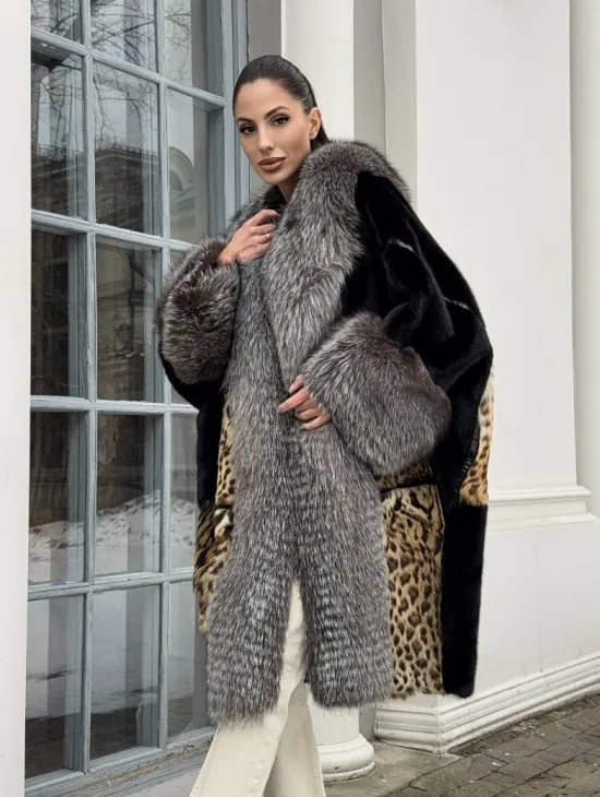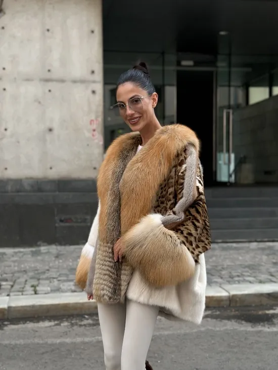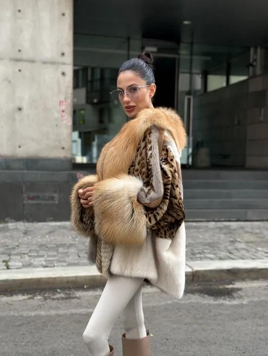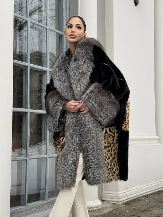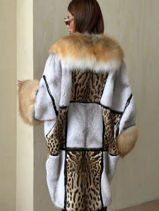 Норковая шуба с капюшоном из лисы под рысь - стиль "Бохо"