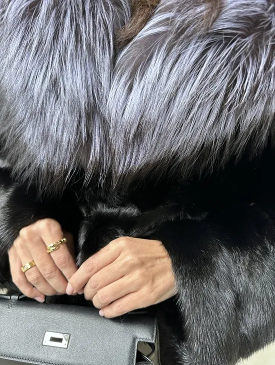 Полушубок норковый автоледи с отделкой из чернобурки на капюшоне