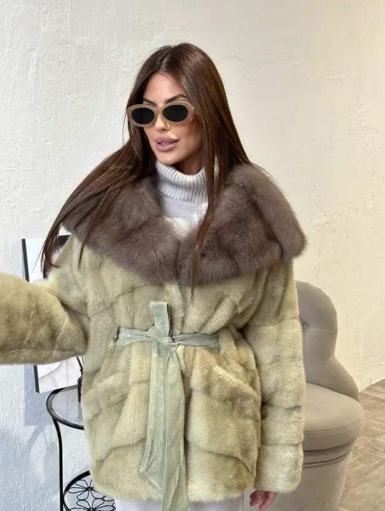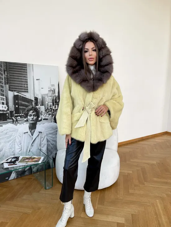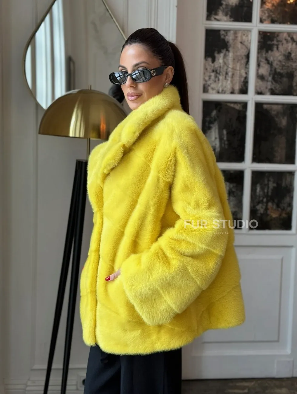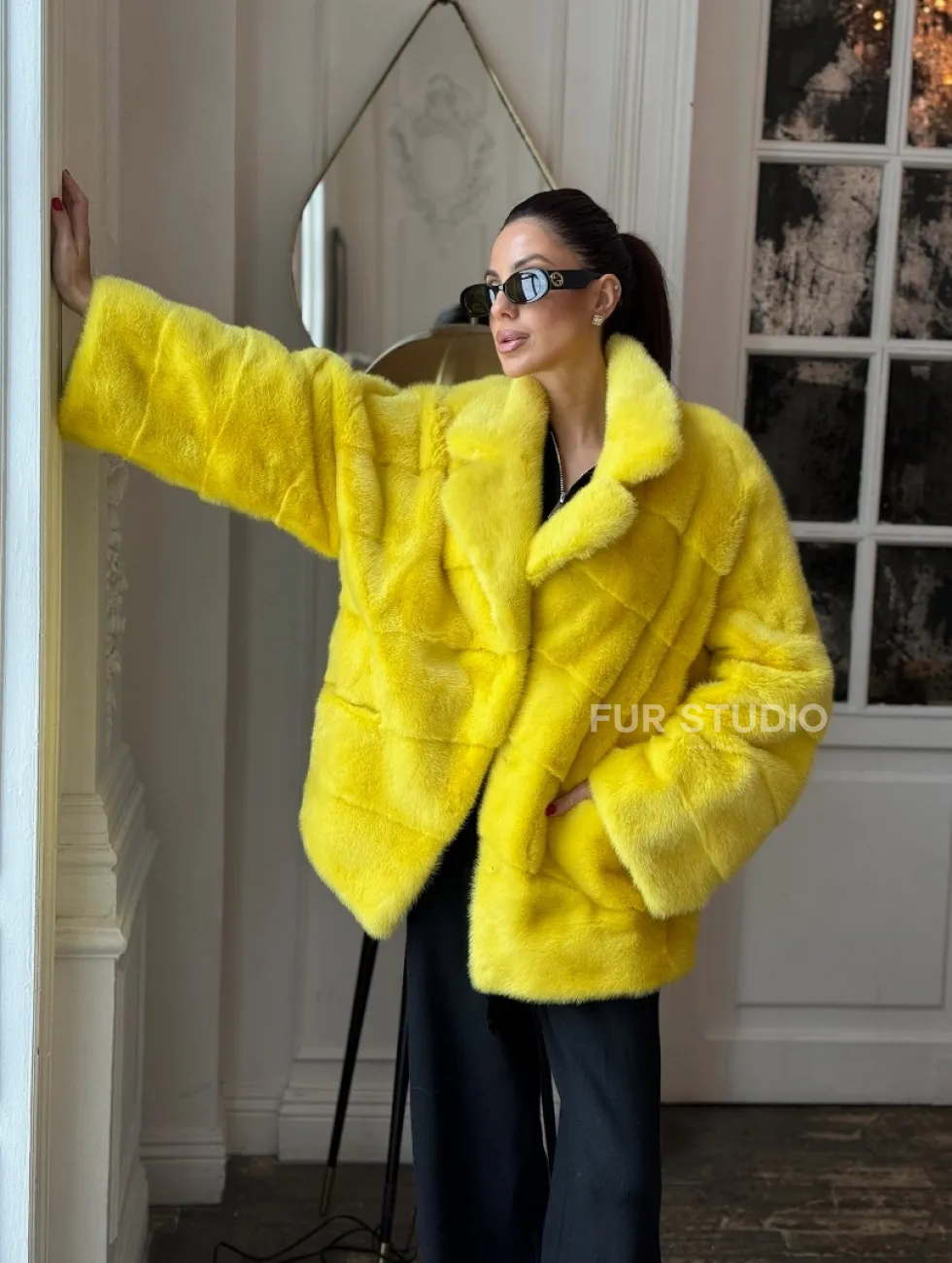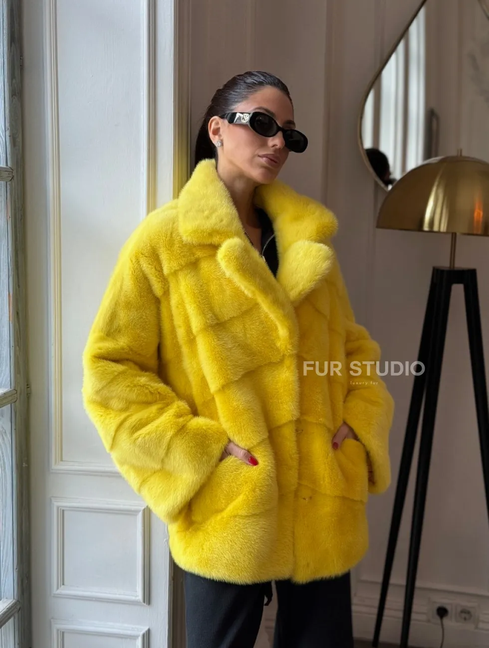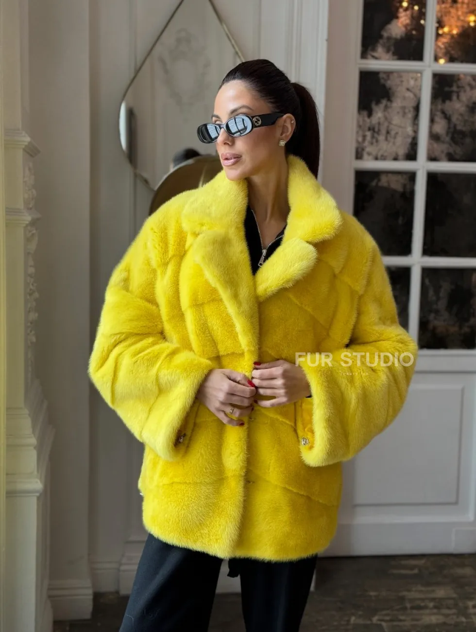Норковый полушубок английский воротник, паркет - цвет лимонный доступна для покупки в нашем шоуруме Furs Studio в Чите. У нас так же есть доставка во все города России. Добавьте немного роскоши в свой гардероб с этой шубой, которая будет служить вам многие годы.