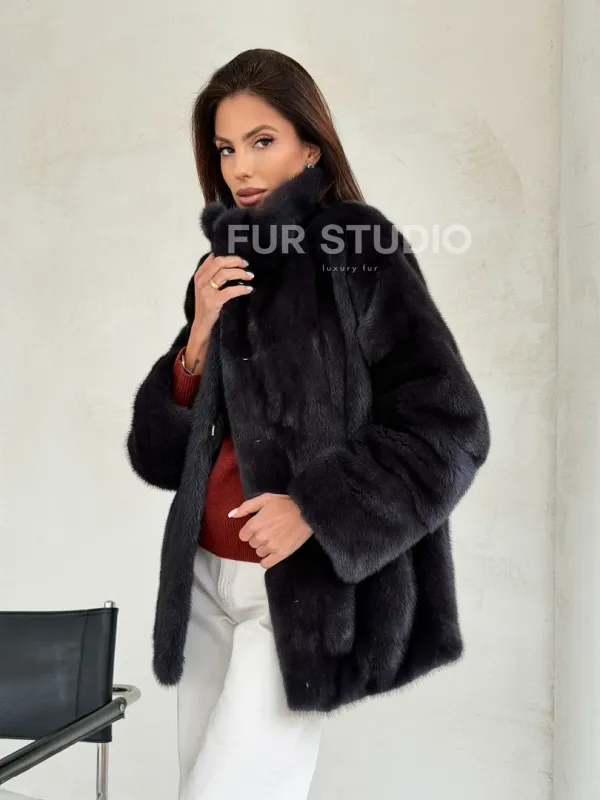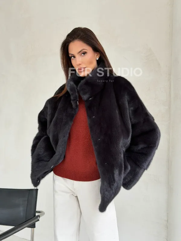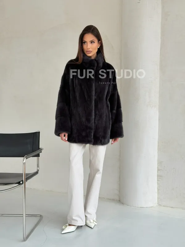 Норковый полушубок графит - стойка воротник доступна для покупки в нашем шоуруме Furs Studio в Чите. У нас так же есть доставка во все города России. Добавьте немного роскоши в свой гардероб с этой шубой, которая будет служить вам многие годы.