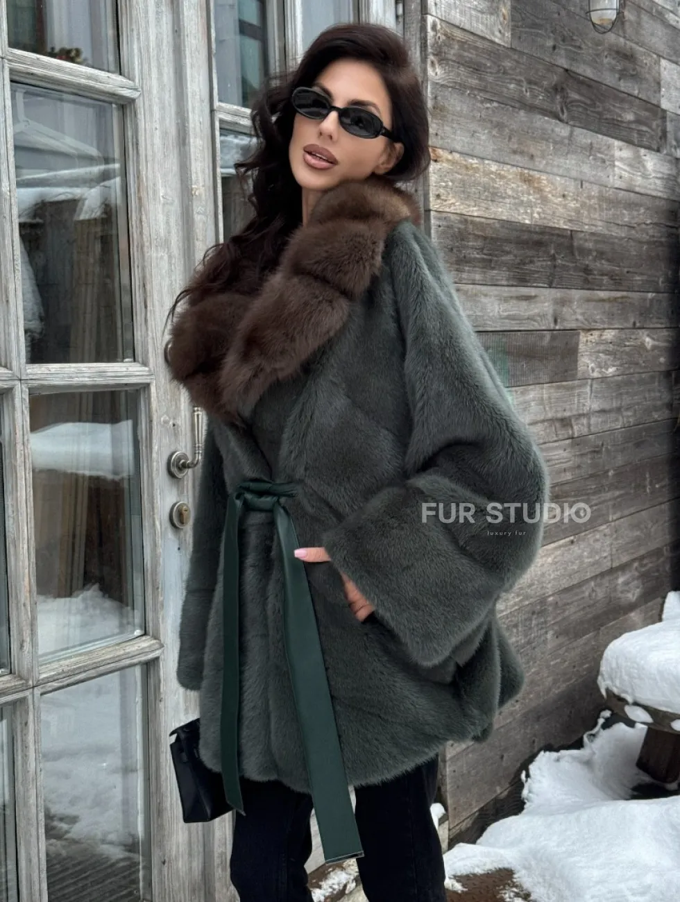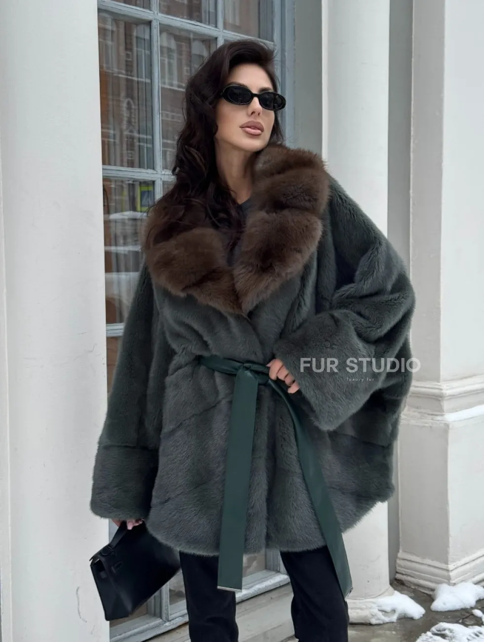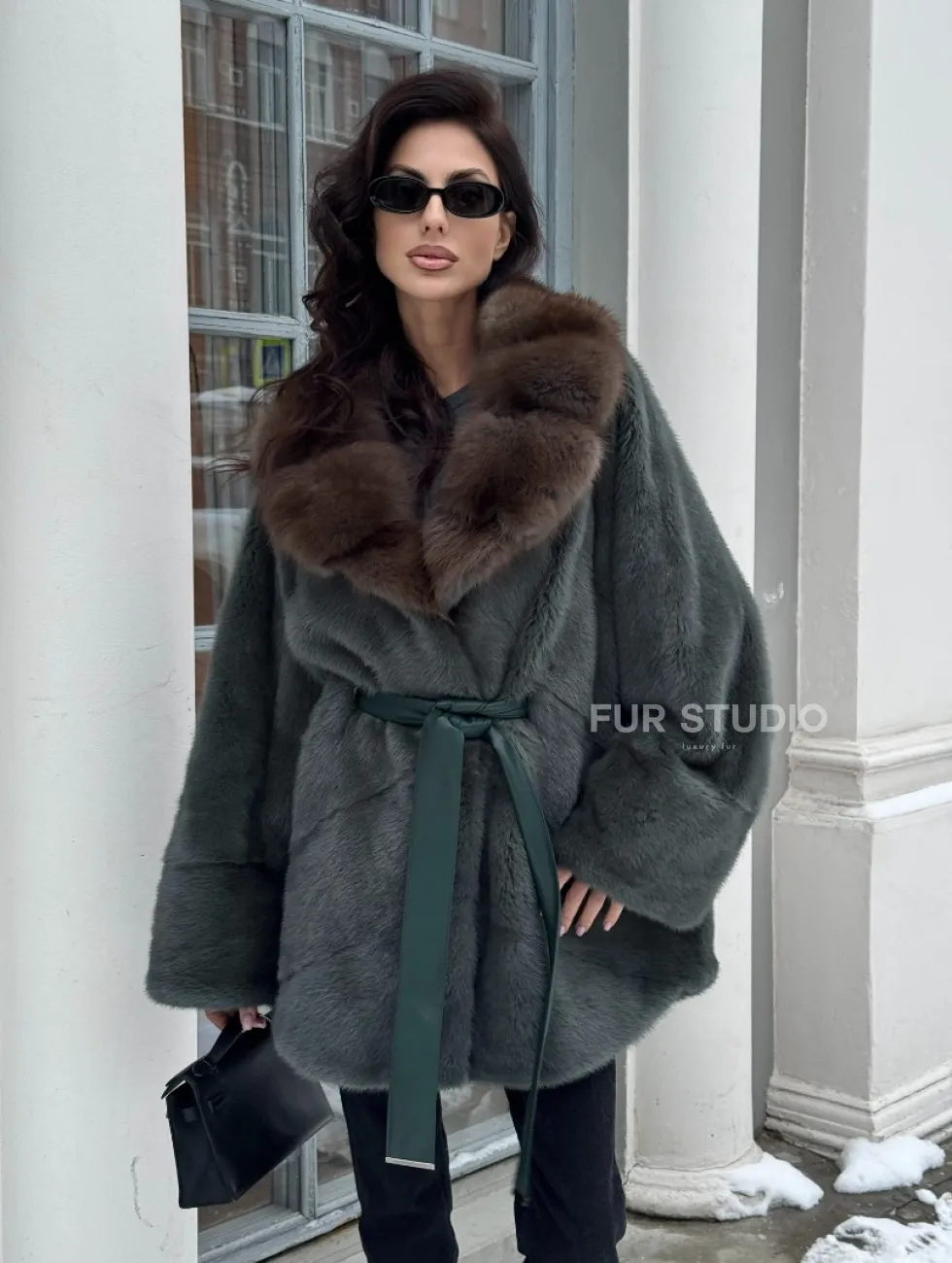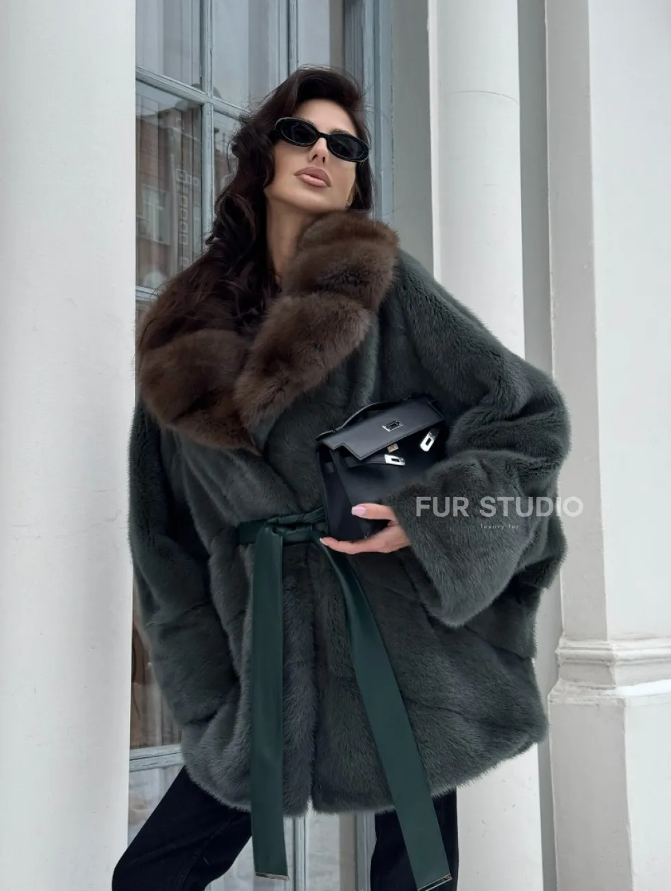 Норковый полушубок "летучая мышь" из аукционной норки с воротником из меха куницы доступна для покупки в нашем шоуруме Furs Studio в Чите. У нас так же есть доставка во все города России. Добавьте немного роскоши в свой гардероб с этой шубой, которая будет служить вам многие годы.
