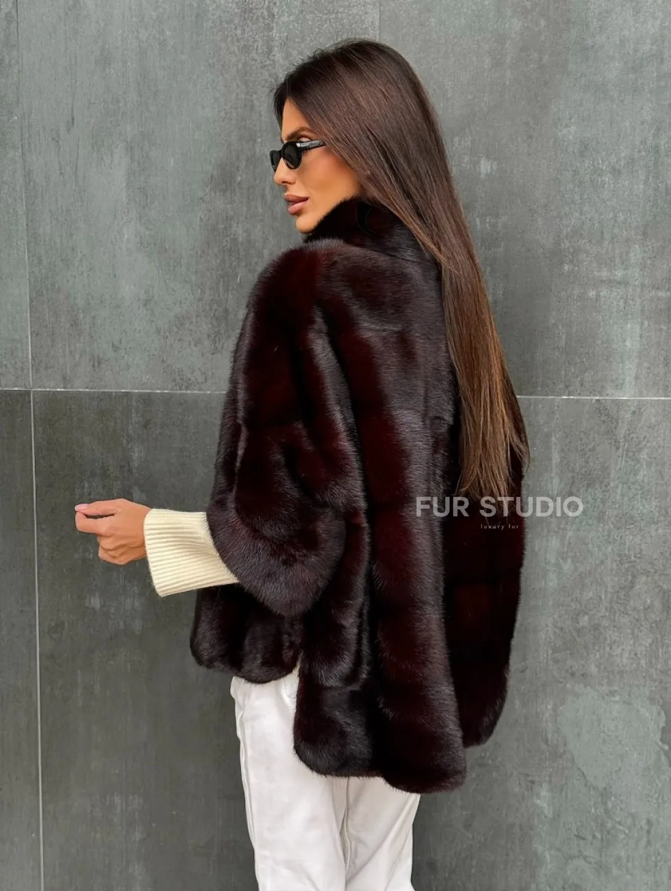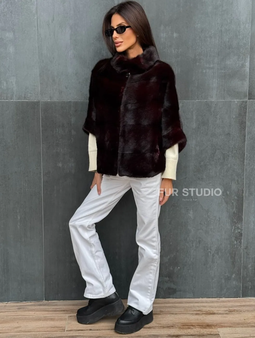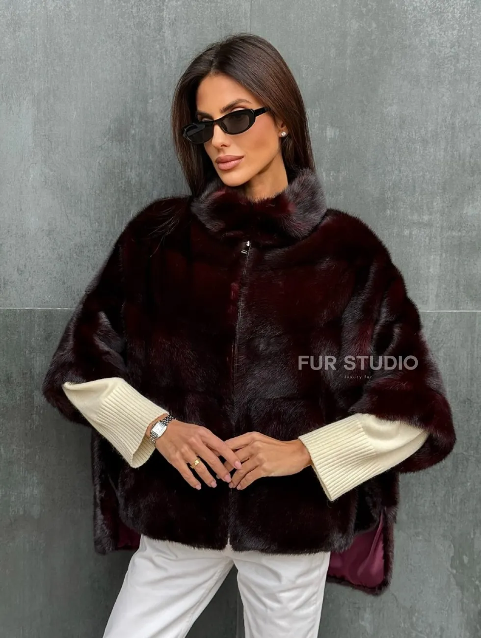 Мех данной шубы аукционная норка , цвет бордовый. Предлагается в размерах от 40 до 48 (oversize). Длина модели 60-65 см, что выгодно подчеркивает фигуру девушек. Эта модель идеально подойдет для девушек и женщин, предпочитающих роскошные натуральные меха.