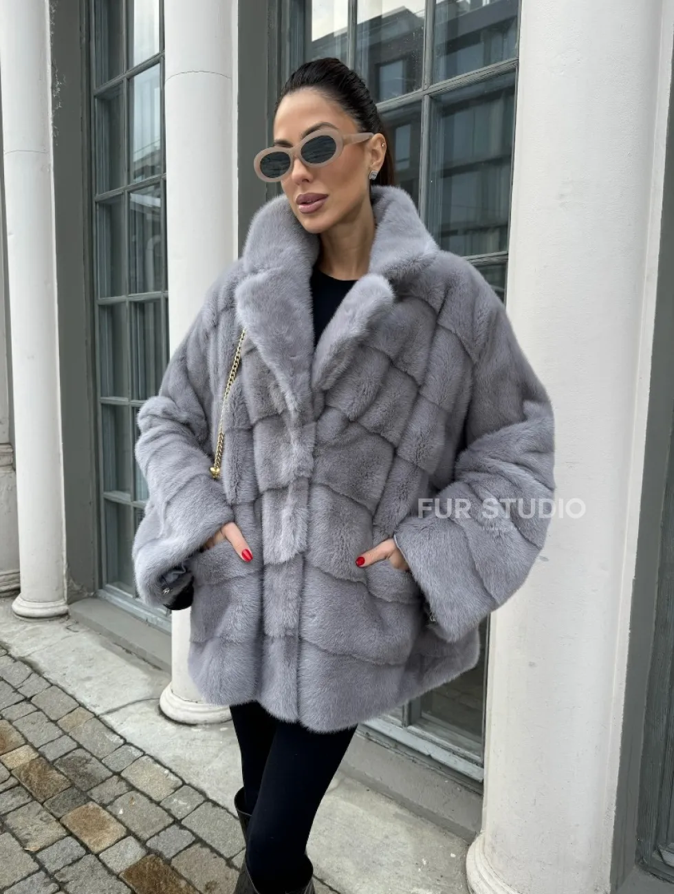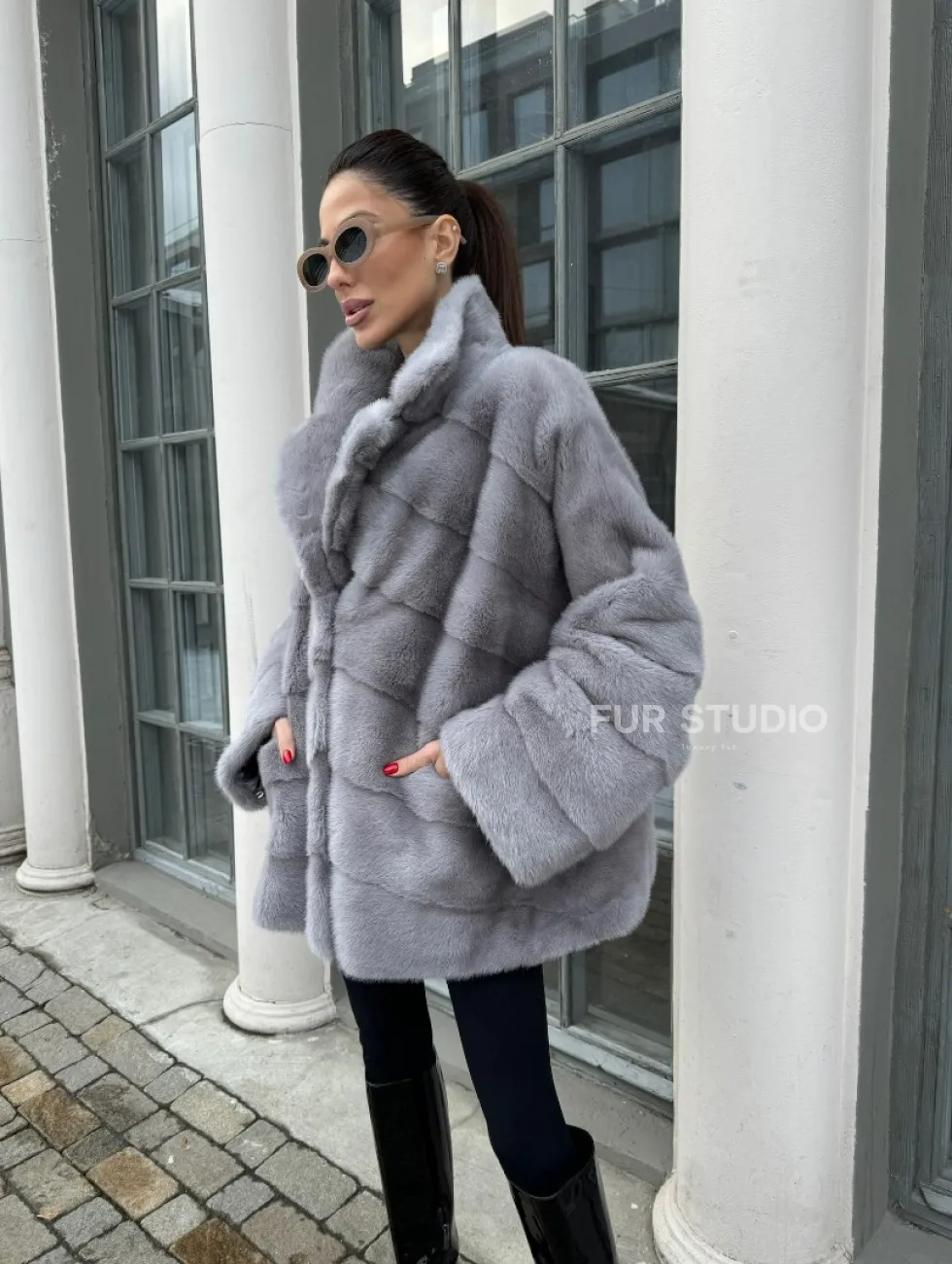 Норковый полушубок паркет английский воротник - цвет серый сапфир доступна для покупки в нашем шоуруме Furs Studio в Чите. У нас так же есть доставка во все города России. Добавьте немного роскоши в свой гардероб с этой шубой, которая будет служить вам многие годы.