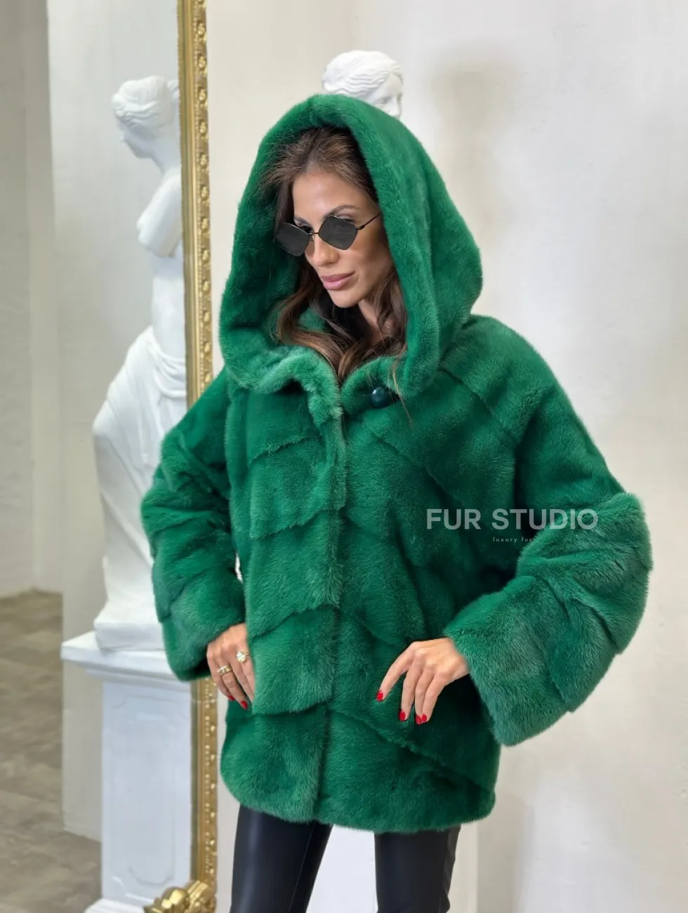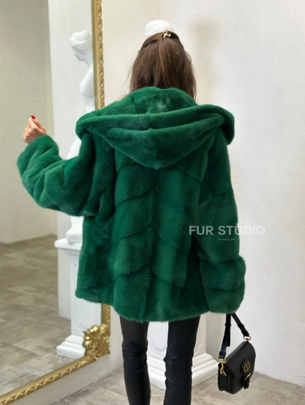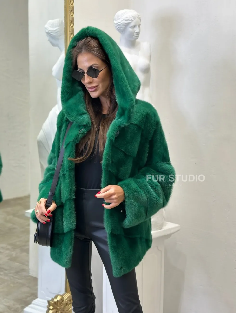 Норковый полушубок с капюшоном - цвет изумруд доступна для покупки в нашем шоуруме Furs Studio в Чите. У нас так же есть доставка во все города России. Добавьте немного роскоши в свой гардероб с этой шубой, которая будет служить вам многие годы.