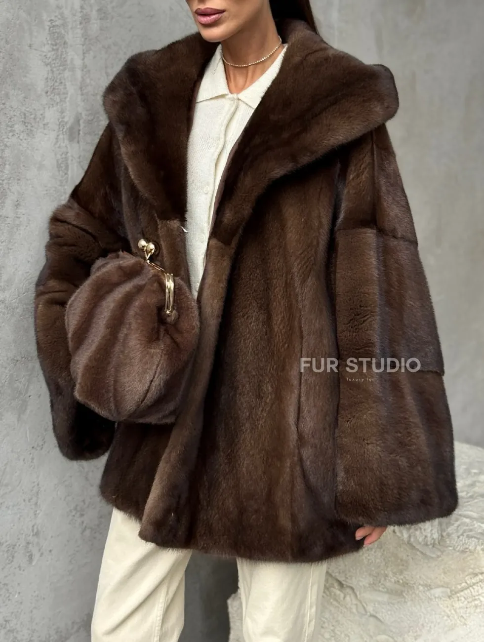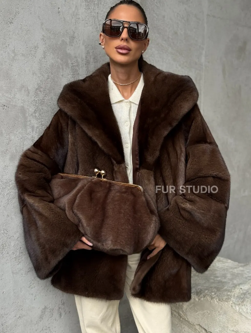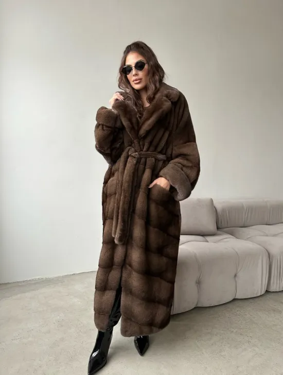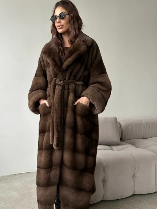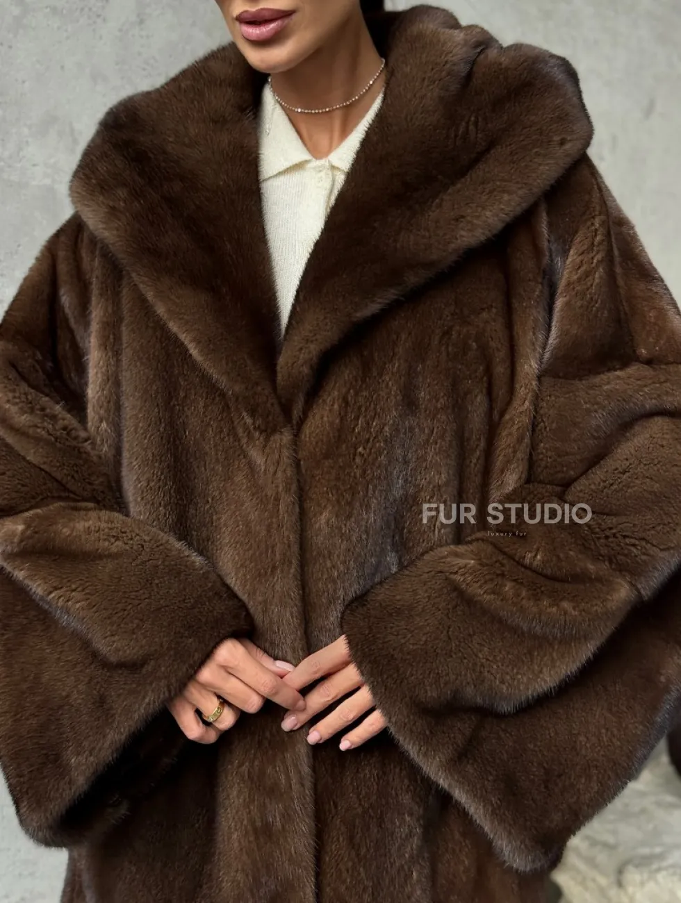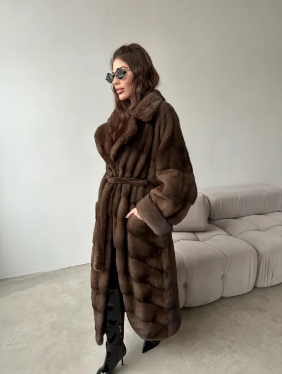 Мех данной шубы аукционная норка , цвет коричневый. Предлагается в размерах от 42 до 52 (oversize). Длина модели 70-75 см, что выгодно подчеркивает фигуру девушек. Эта модель идеально подойдет для девушек и женщин, предпочитающих роскошные натуральные меха.
