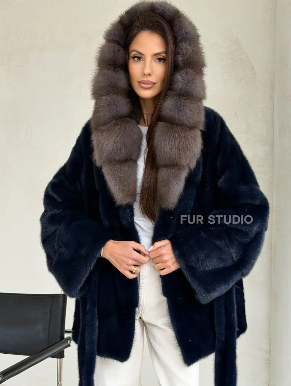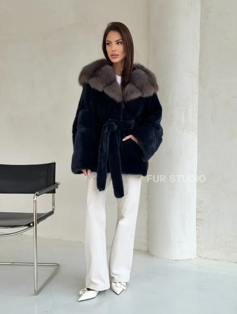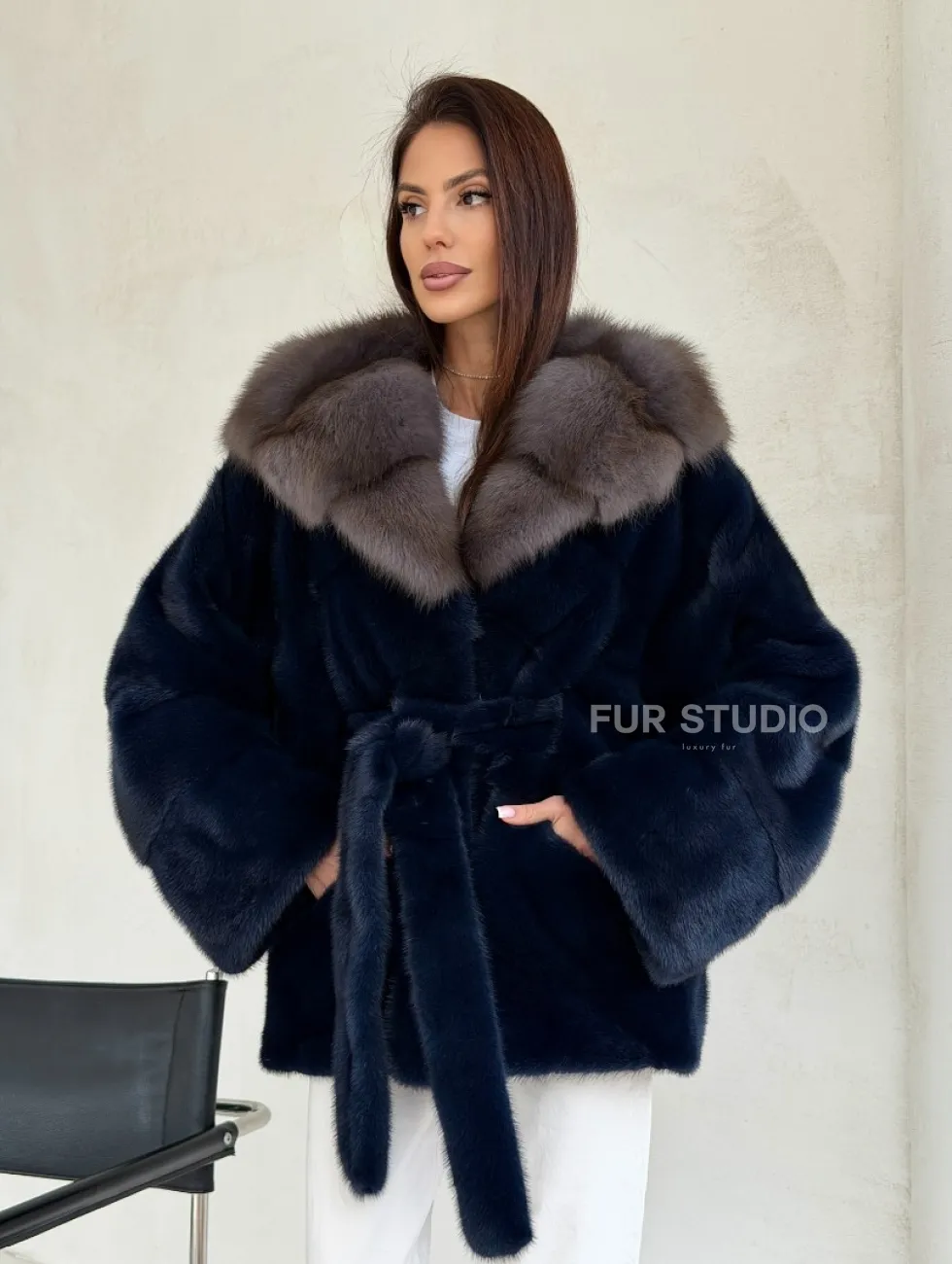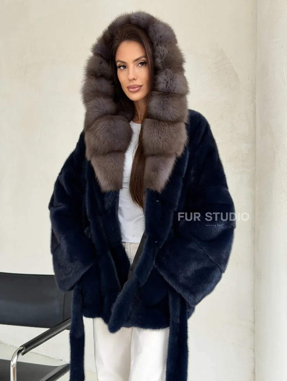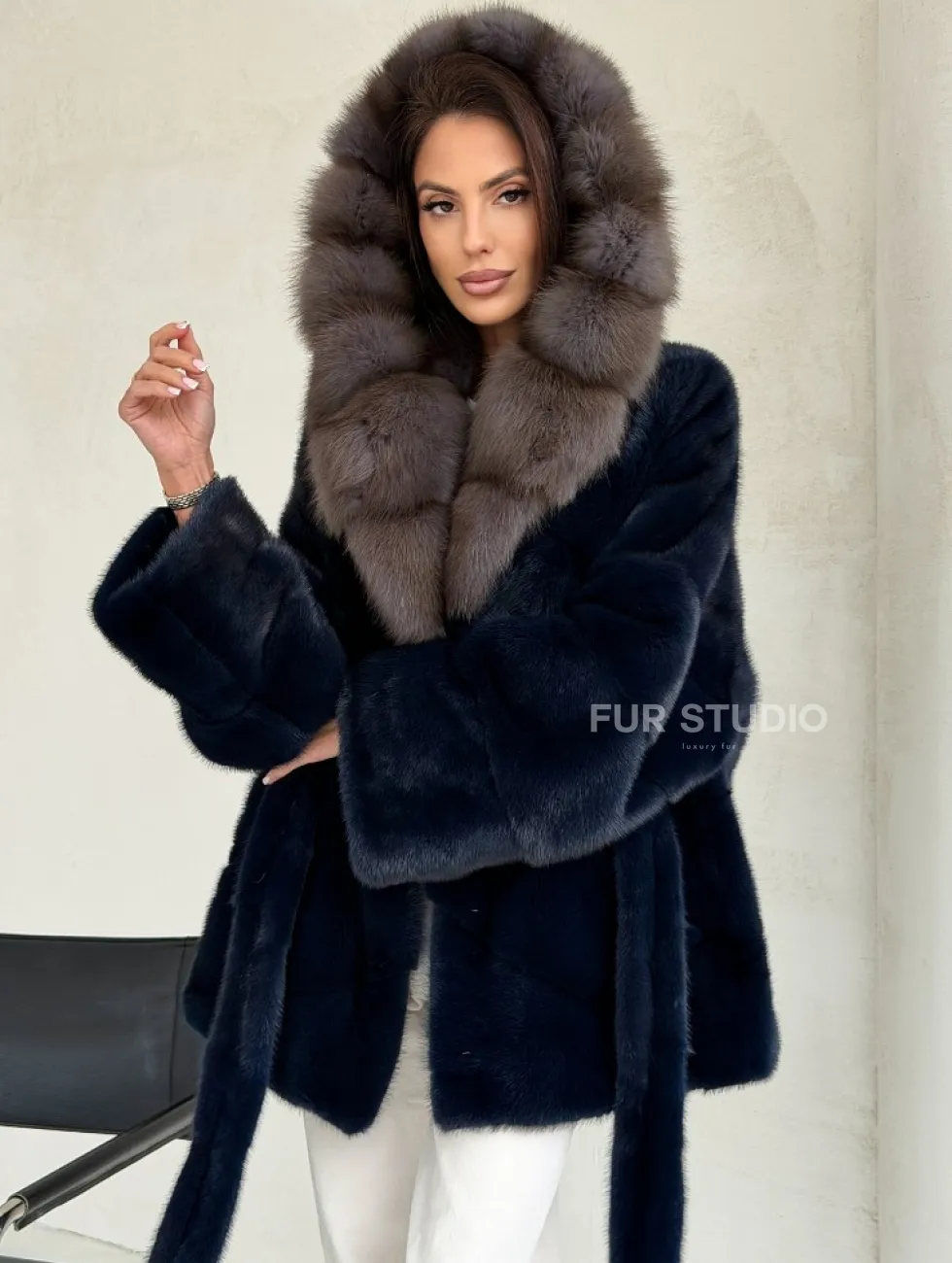 Норковый полушубок синего цвета с капюшоном куница доступна для покупки в нашем шоуруме Furs Studio в Чите. У нас так же есть доставка во все города России. Добавьте немного роскоши в свой гардероб с этой шубой, которая будет служить вам многие годы.