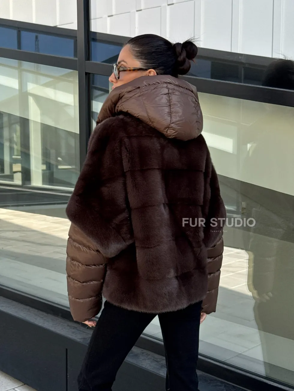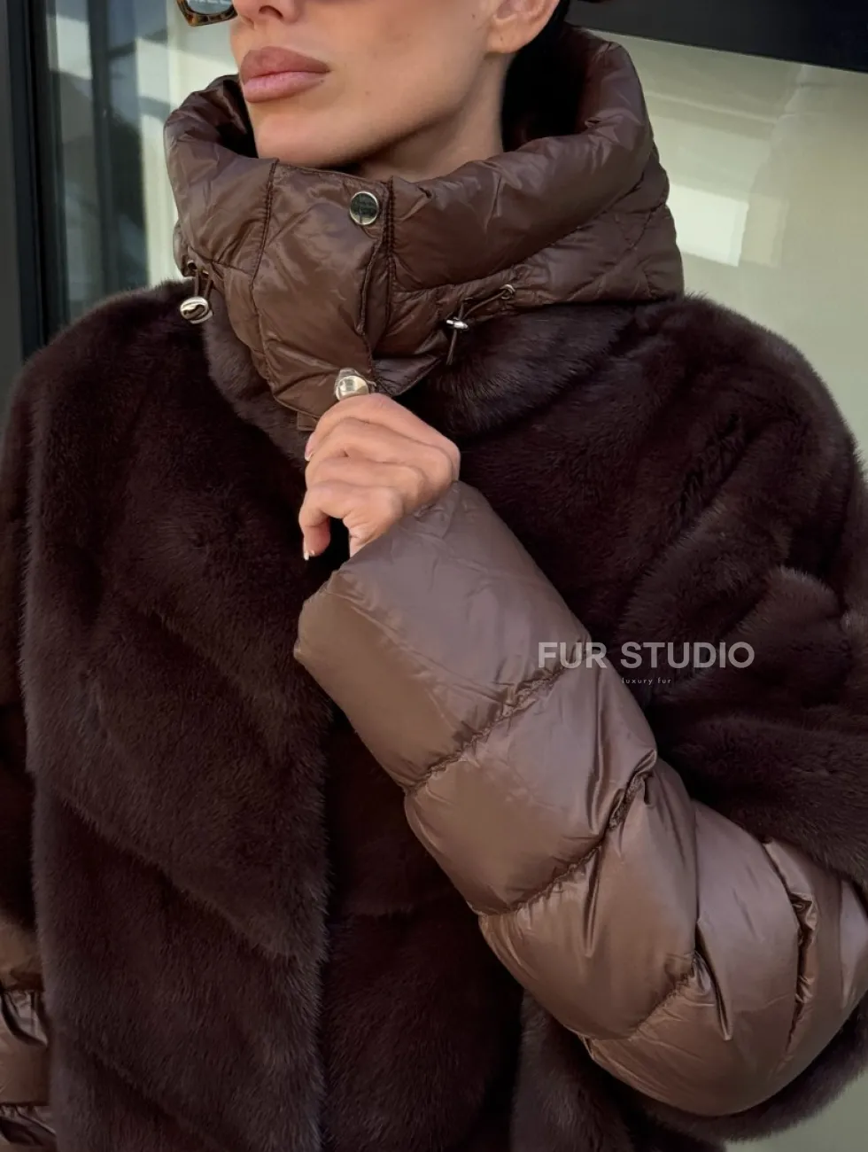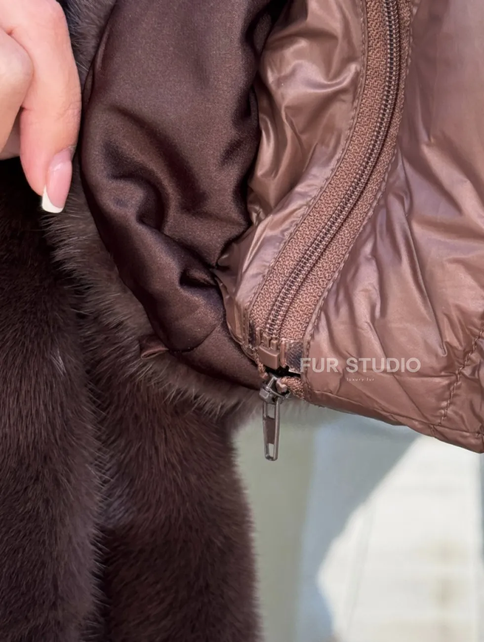 Норковый пуховик-жилет 2в1 цвет соболь доступна для покупки в нашем магазине Furs Studio в Чите, с возможностью доставки в любой город России. Добавьте немного стиля и элегантности в свой гардероб с этой курткой, которая будет вам служить многие годы, подчеркивая ваш неповторимый стиль.