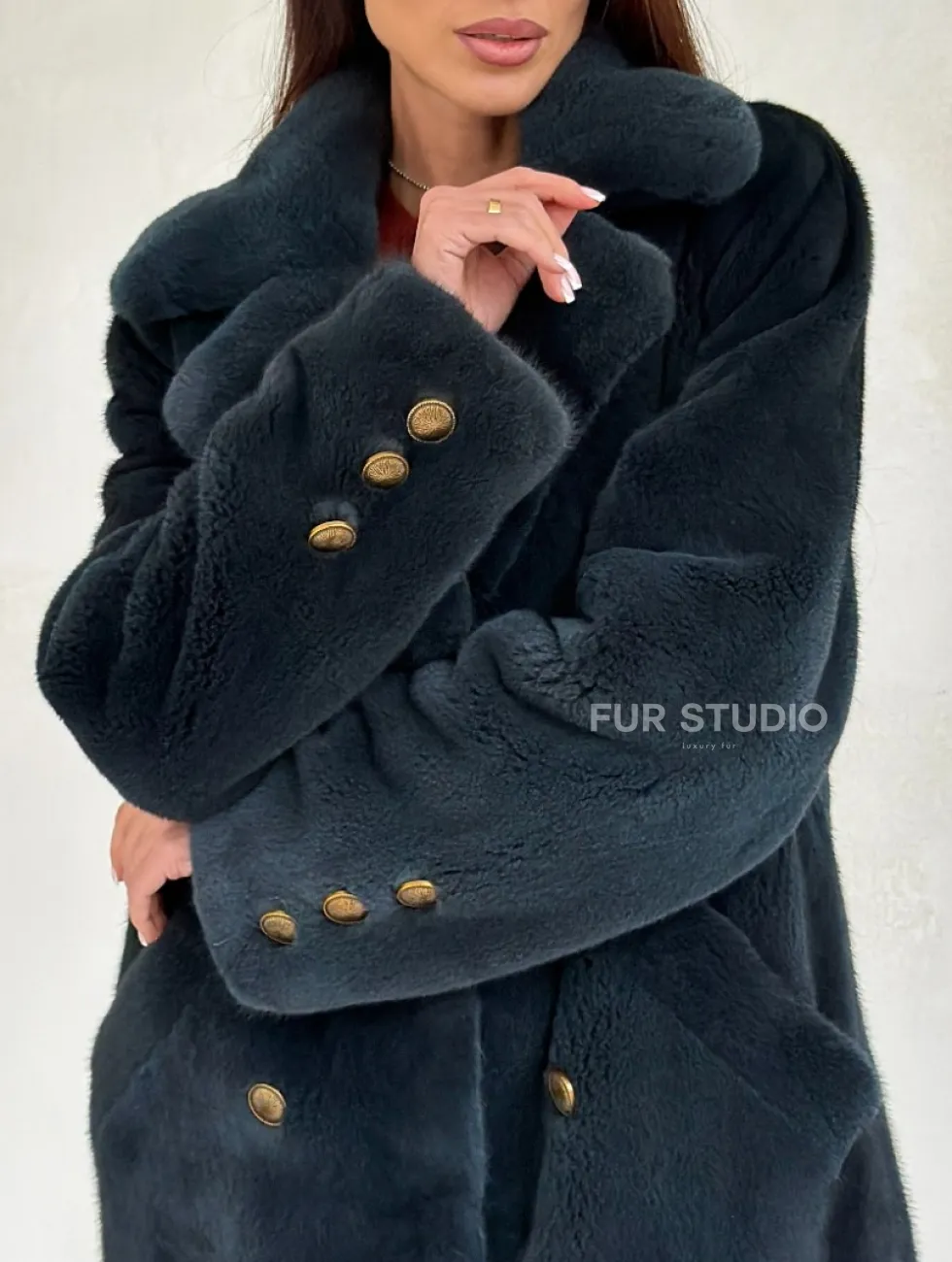 Мех данной шубы аукционная норка, цвет зеленый. Предлагается в размерах от 42 до 48. Длина модели 70-75 см, что выгодно подчеркивает фигуру девушек. Эта модель идеально подойдет для девушек и женщин, предпочитающих роскошные натуральные меха.