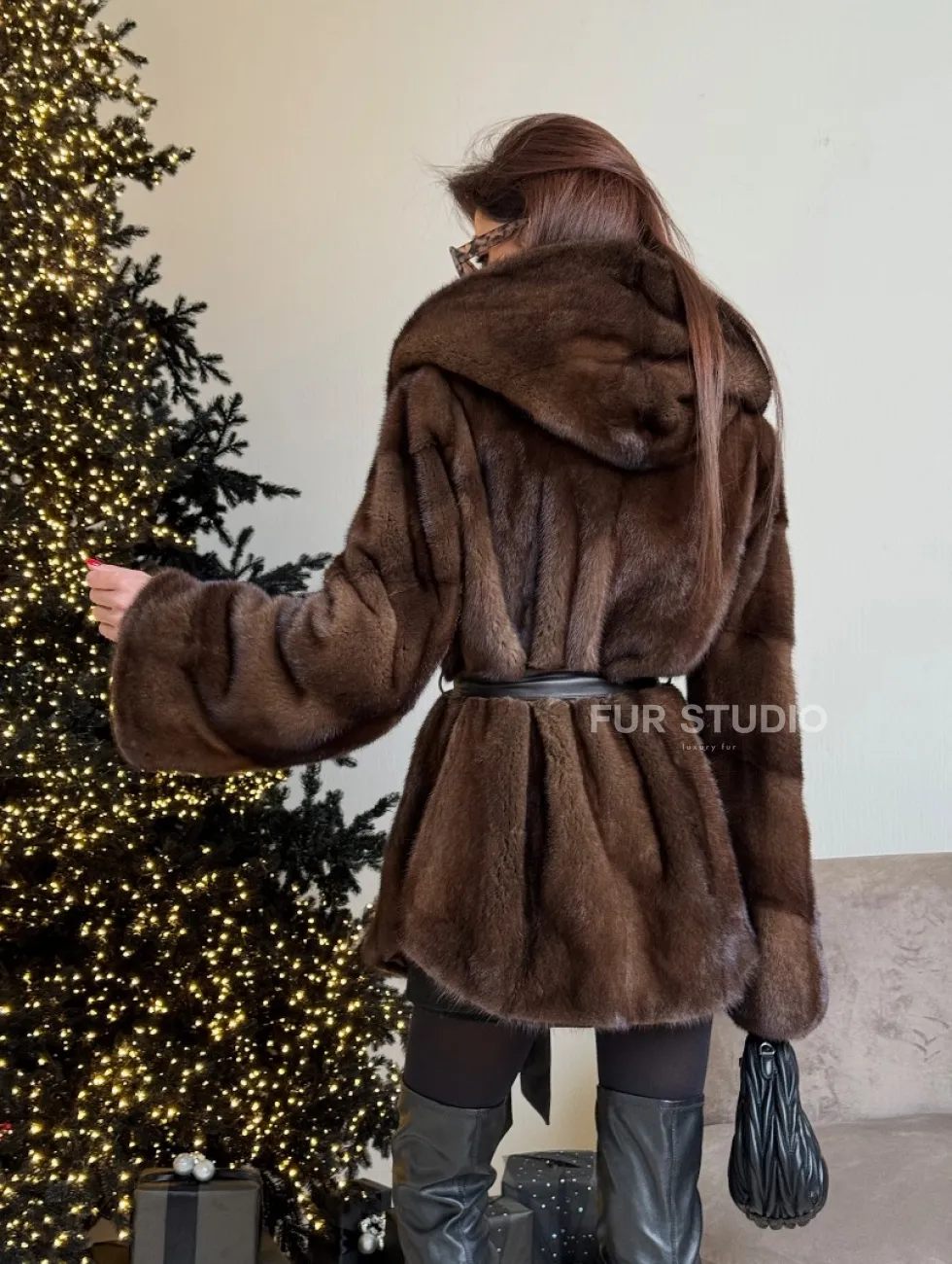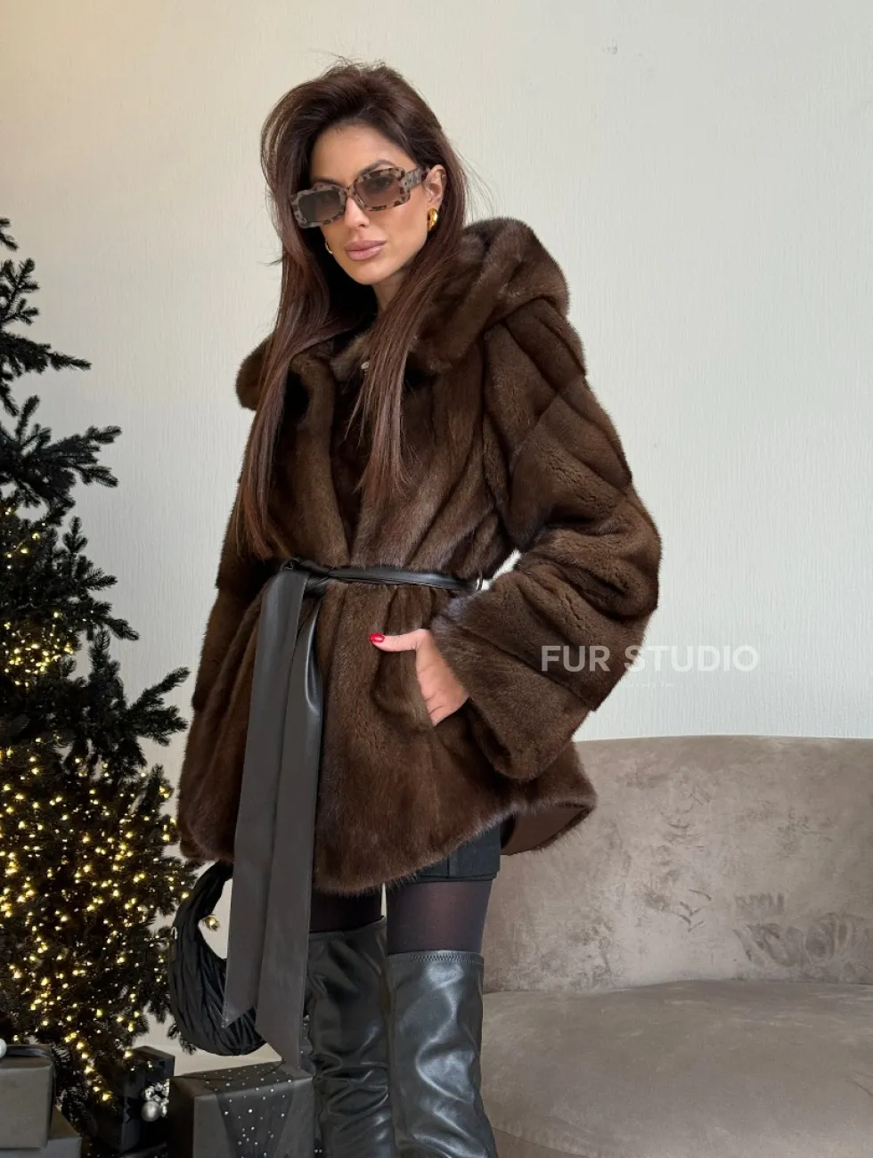 Норковый жакет с капюшоном, роспуск в цвете орех доступна для покупки в нашем шоуруме Furs Studio в Чите. У нас так же есть доставка во все города России. Добавьте немного роскоши в свой гардероб с этой шубой, которая будет служить вам многие годы.