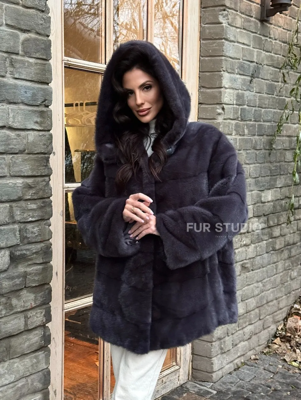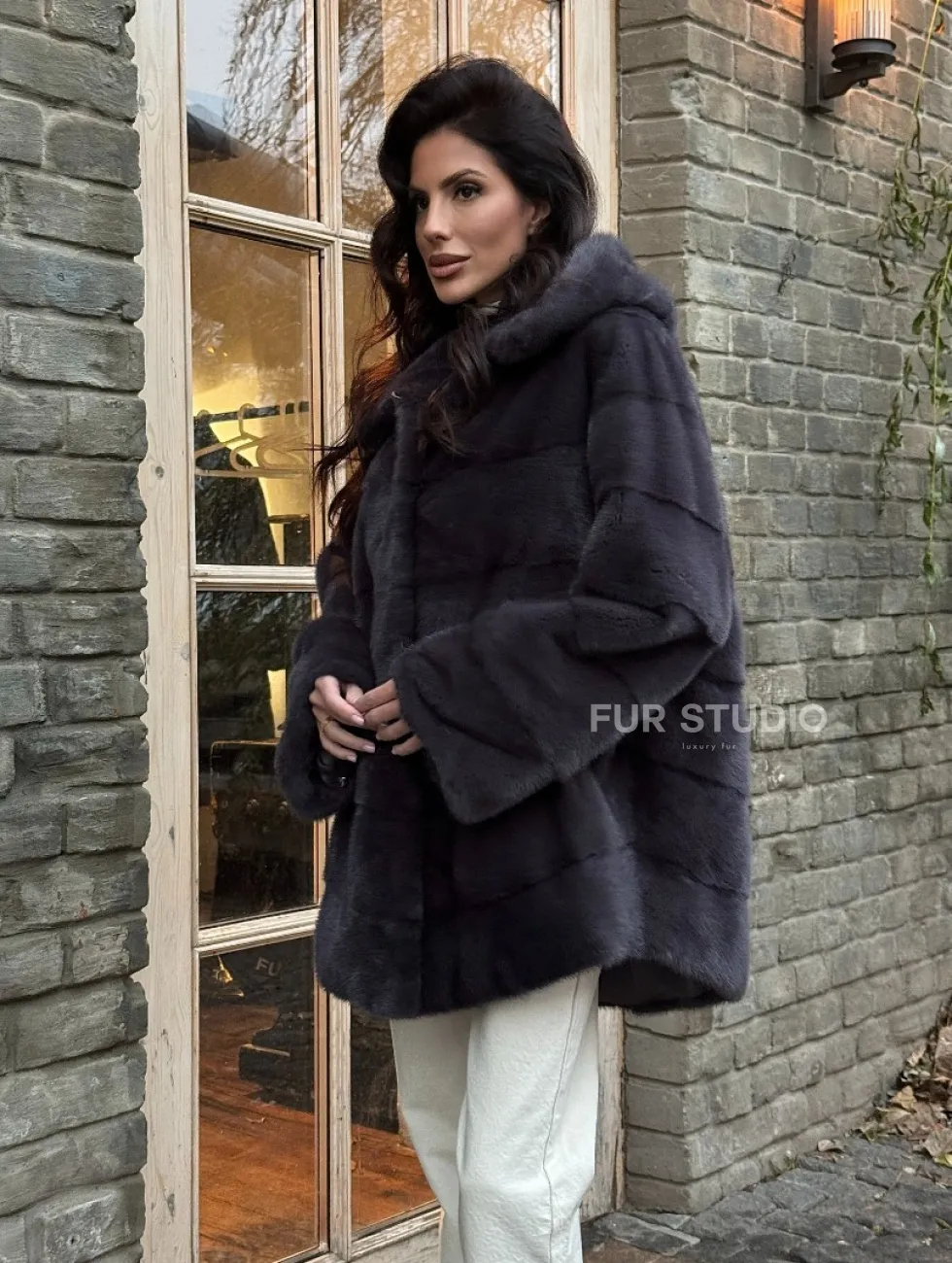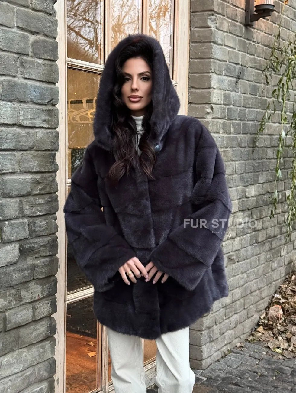Норковый женский полушубок с капюшоном в графитом цвете доступна для покупки в нашем шоуруме Furs Studio в Чите. У нас так же есть доставка во все города России. Добавьте немного роскоши в свой гардероб с этой шубой, которая будет служить вам многие годы.
