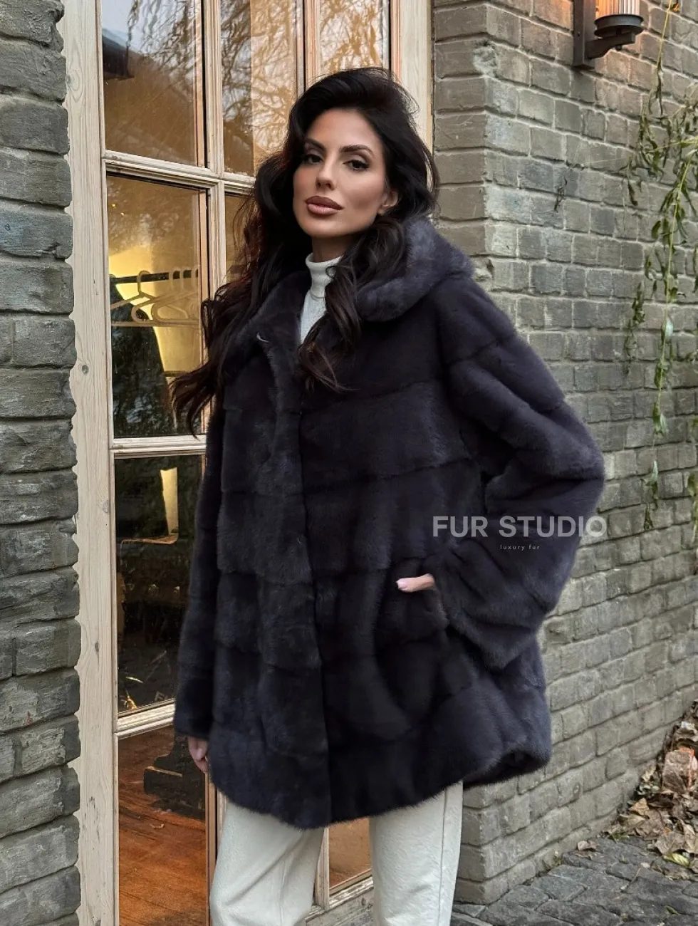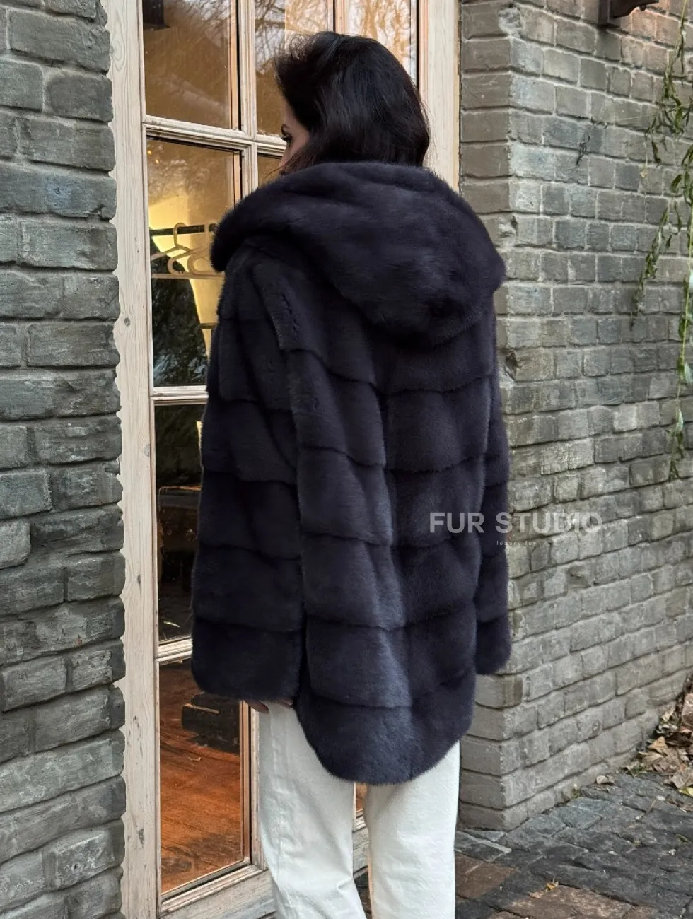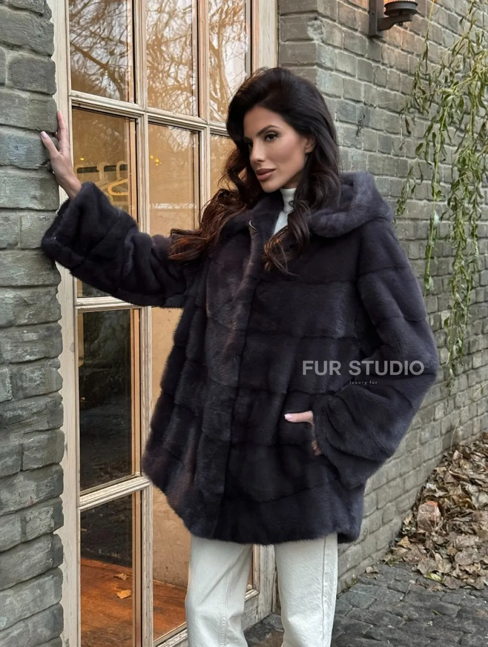 Норковый женский полушубок с капюшоном в графитом цвете доступна для покупки в нашем шоуруме Furs Studio в Чите. У нас так же есть доставка во все города России. Добавьте немного роскоши в свой гардероб с этой шубой, которая будет служить вам многие годы.