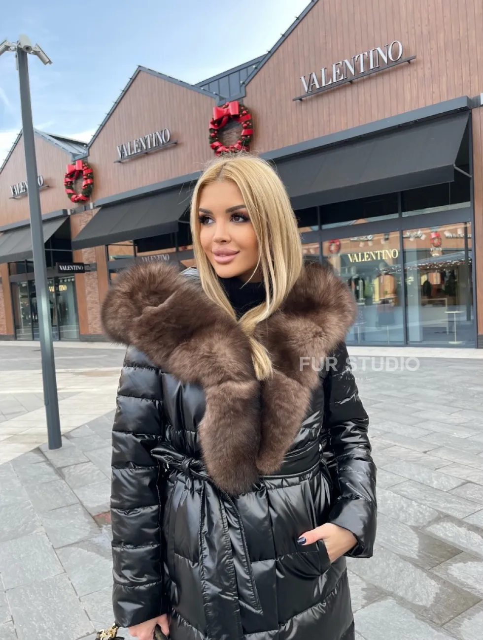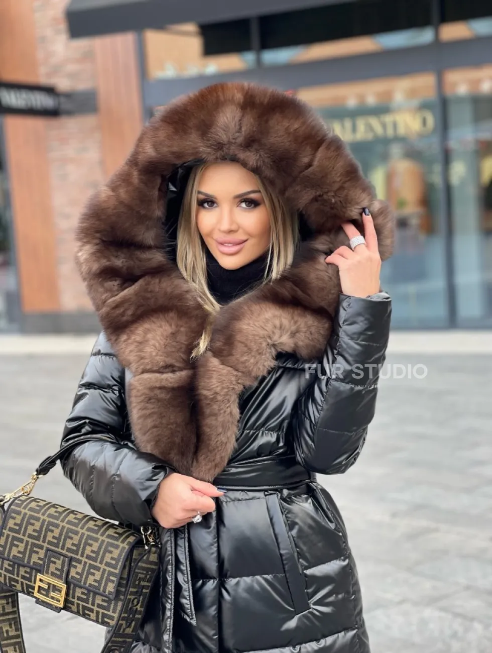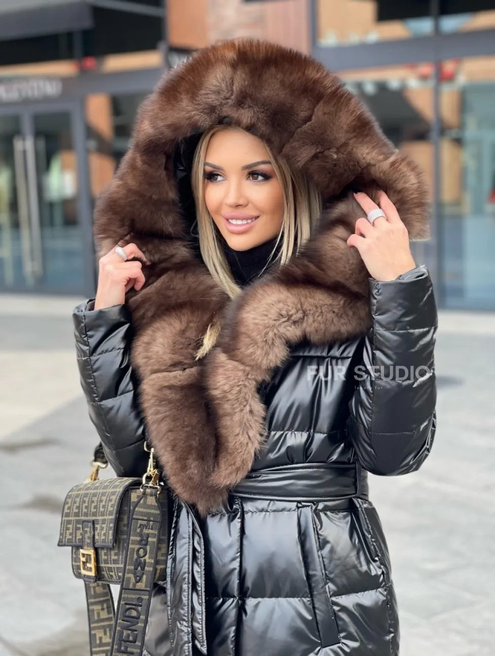 Пальто - пуховик с капюшоном из финского песца - роскошная верхняя одежда на холодный период. Дамы, которые любят выглядеть дорого и солидно будут в восторге от изделия. Стильный пуховик и капюшон из финского песца - это сочетание будет приковывать взгляды к вашей персоне. Пуховик теплый и не даст замерзнуть в минусовую погоду.