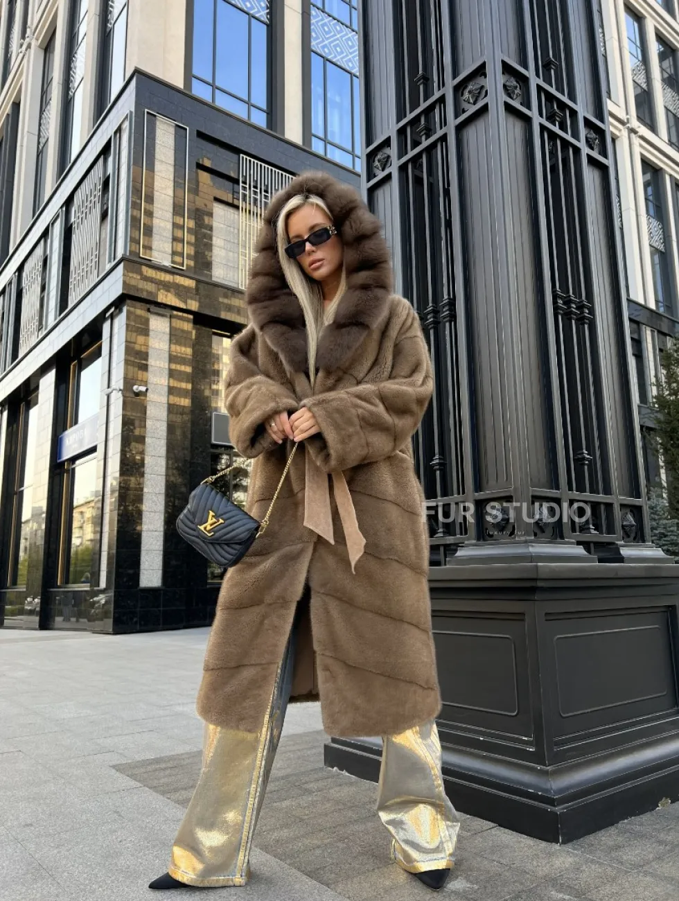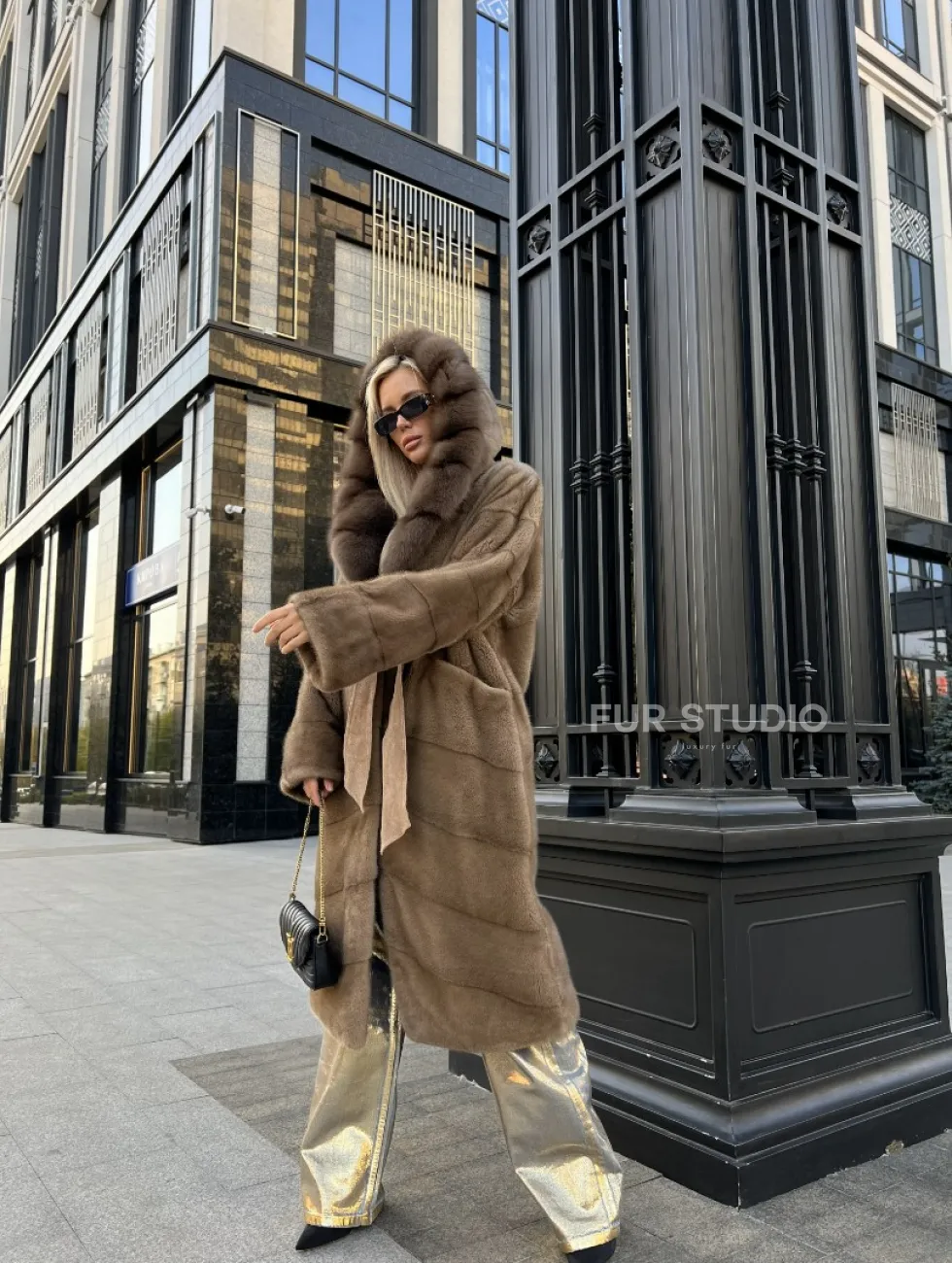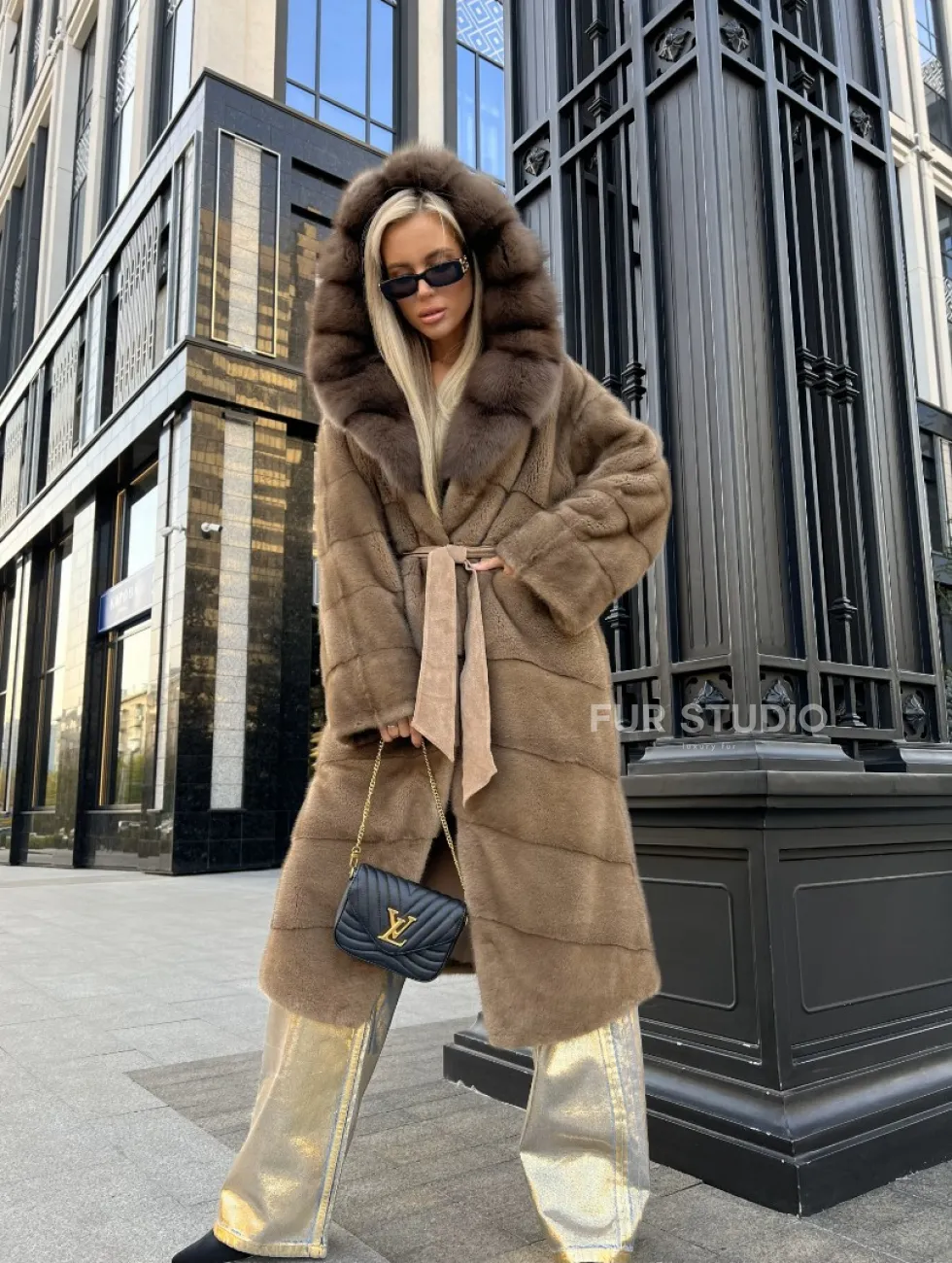 Пастель норковая шуба из меха NAFA капюшон куница доступна для покупки в нашем шоуруме Furs Studio в Чите. У нас так же есть доставка во все города России. Добавьте немного роскоши в свой гардероб с этой шубой, которая будет служить вам многие годы.