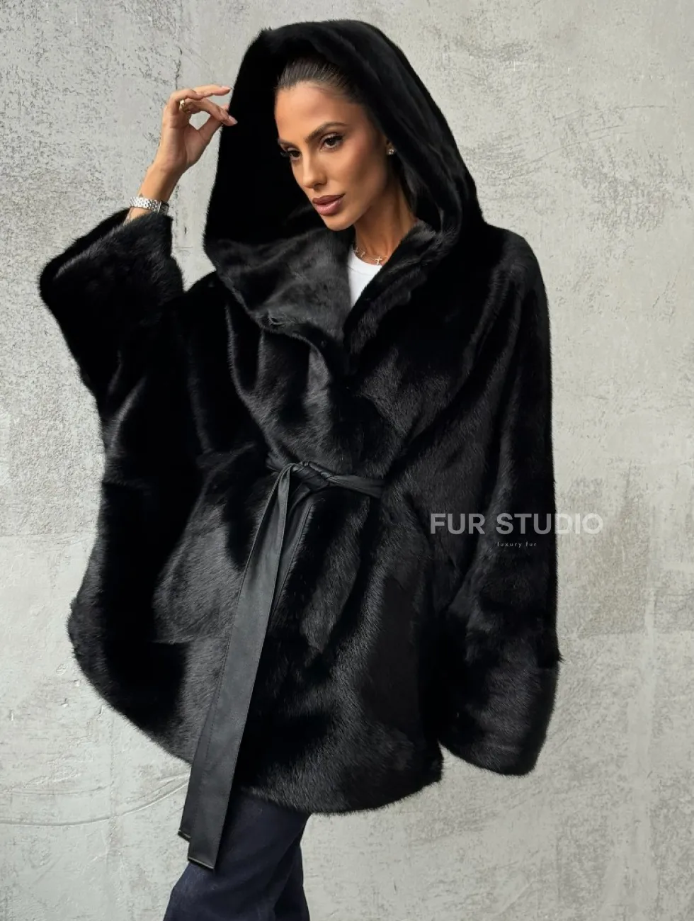 Полушубок черный норковый с капюшоном доступна для покупки в нашем шоуруме Furs Studio в Чите. У нас так же есть доставка во все города России. Добавьте немного роскоши в свой гардероб с этой шубой, которая будет служить вам многие годы.