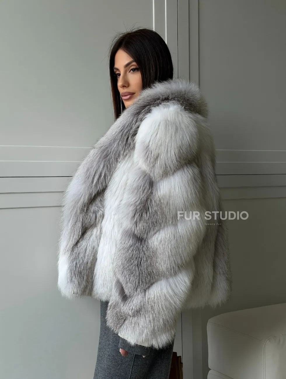 Полушубок из белой лисы, рукава - косички доступна для покупки в нашем шоуруме Furs Studio в Чите. У нас так же есть доставка во все города России. Добавьте немного роскоши в свой гардероб с этой шубой, которая будет служить вам многие годы.