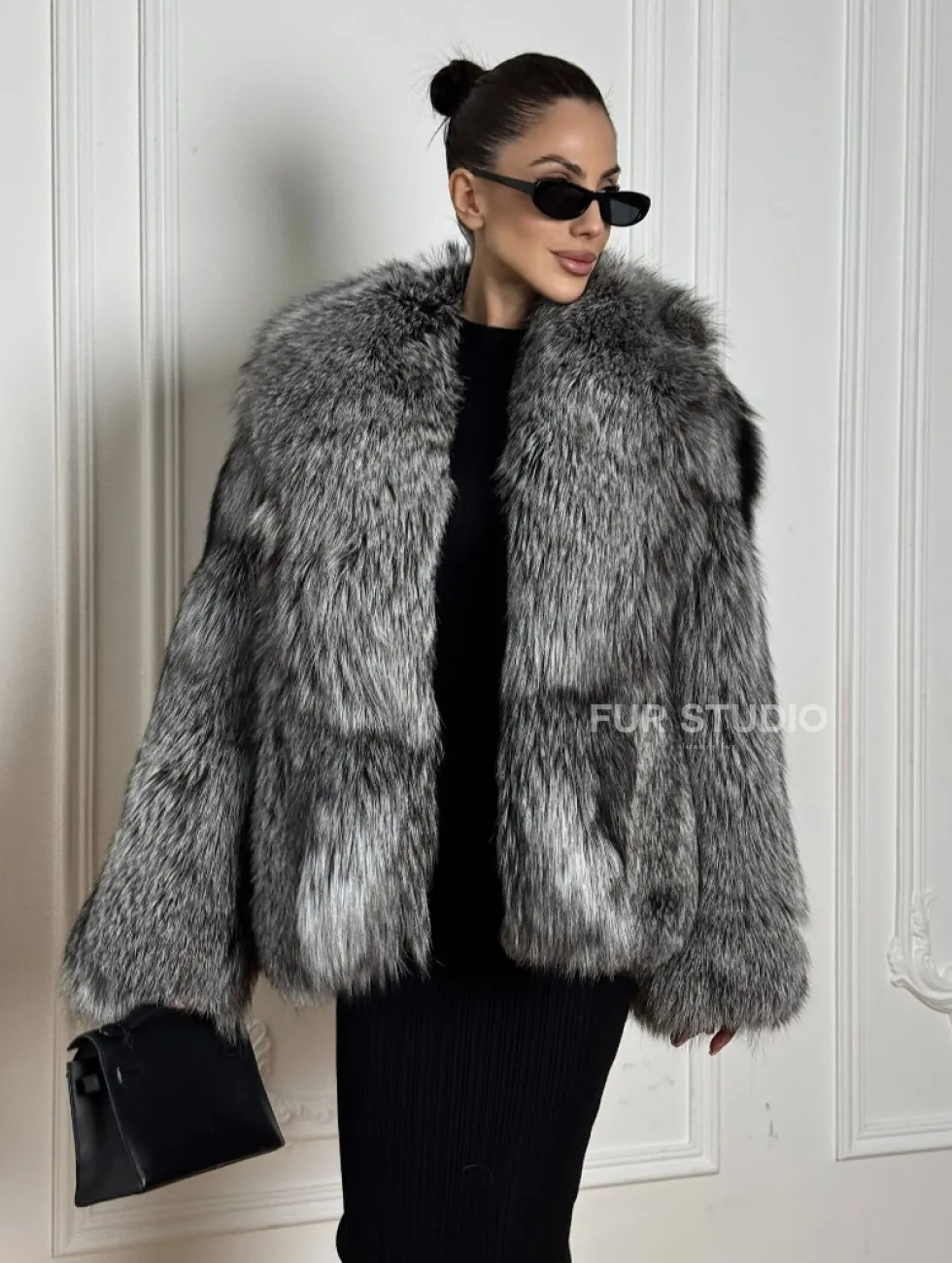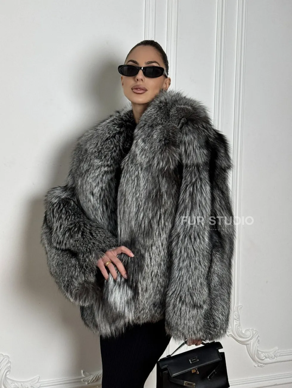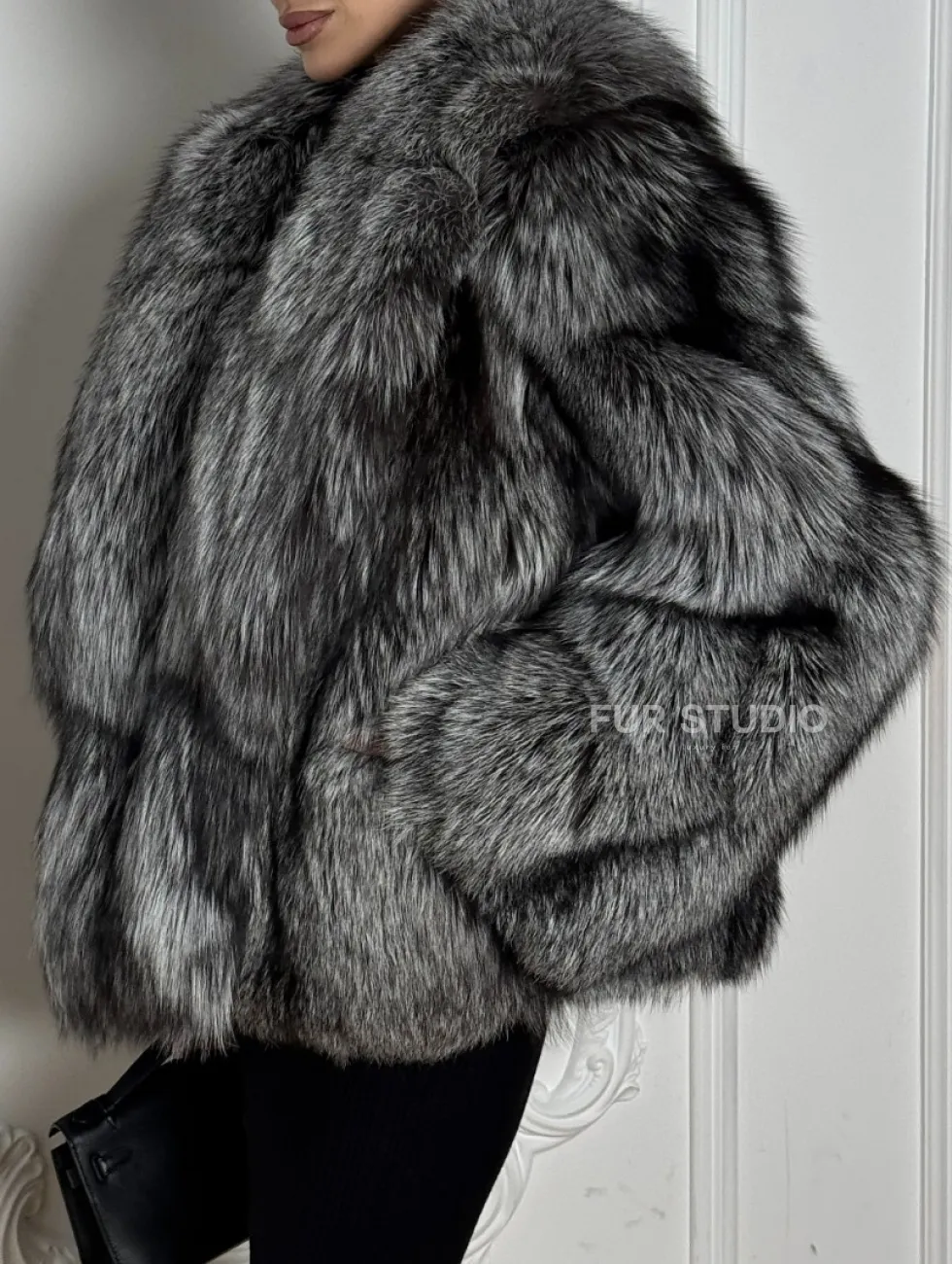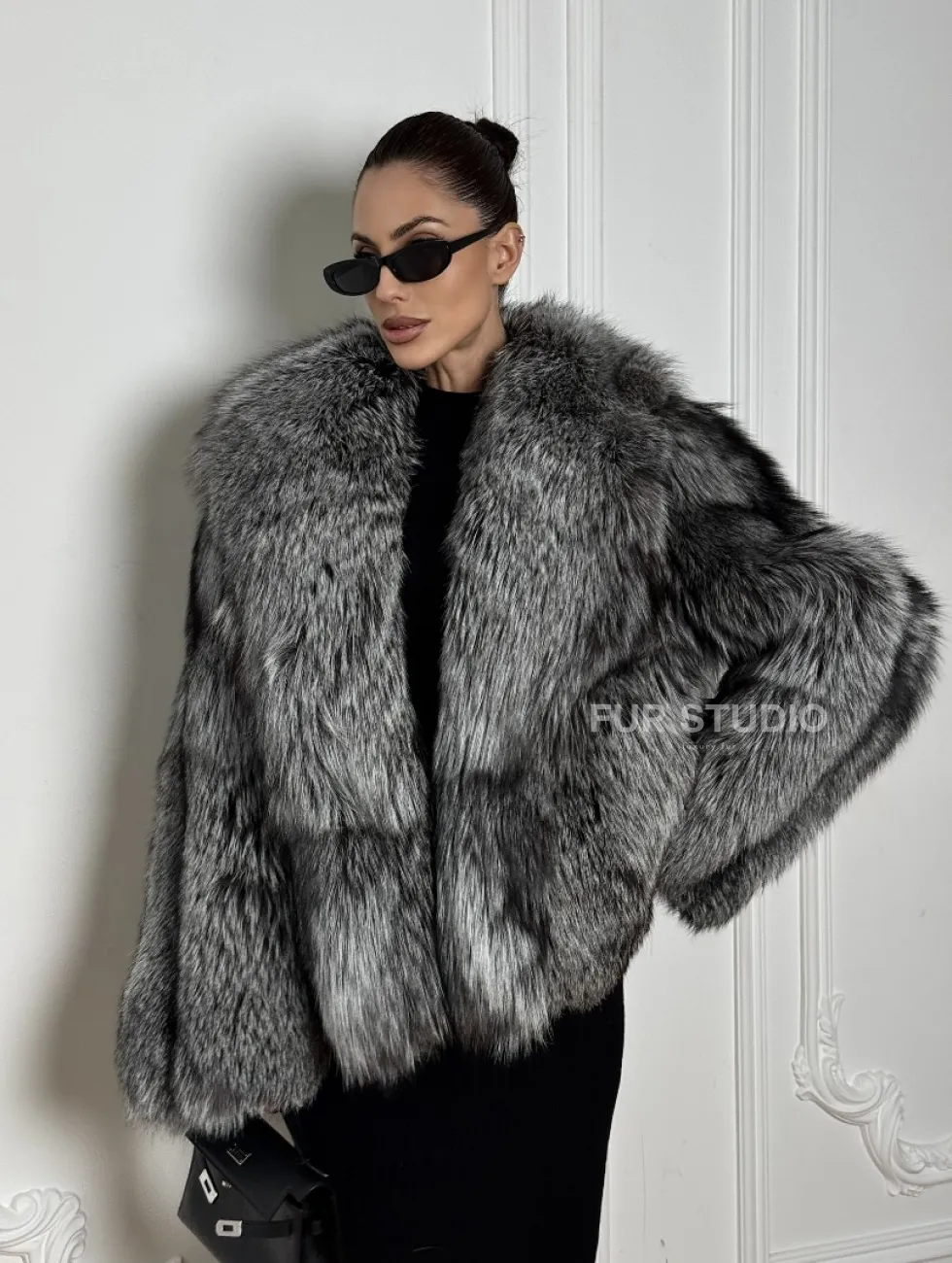 Мех данной шубы лиса, цвет серый. Предлагается в размерах от 42 до 48. Длина модели 55-60 см, что выгодно подчеркивает фигуру девушек. Эта модель идеально подойдет для девушек и женщин, предпочитающих роскошные натуральные меха.
