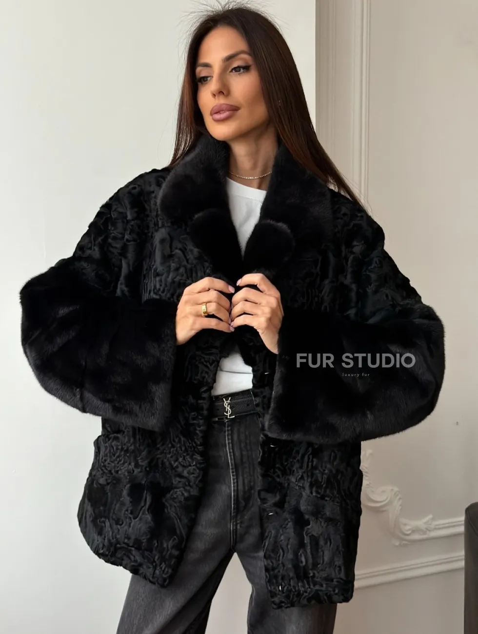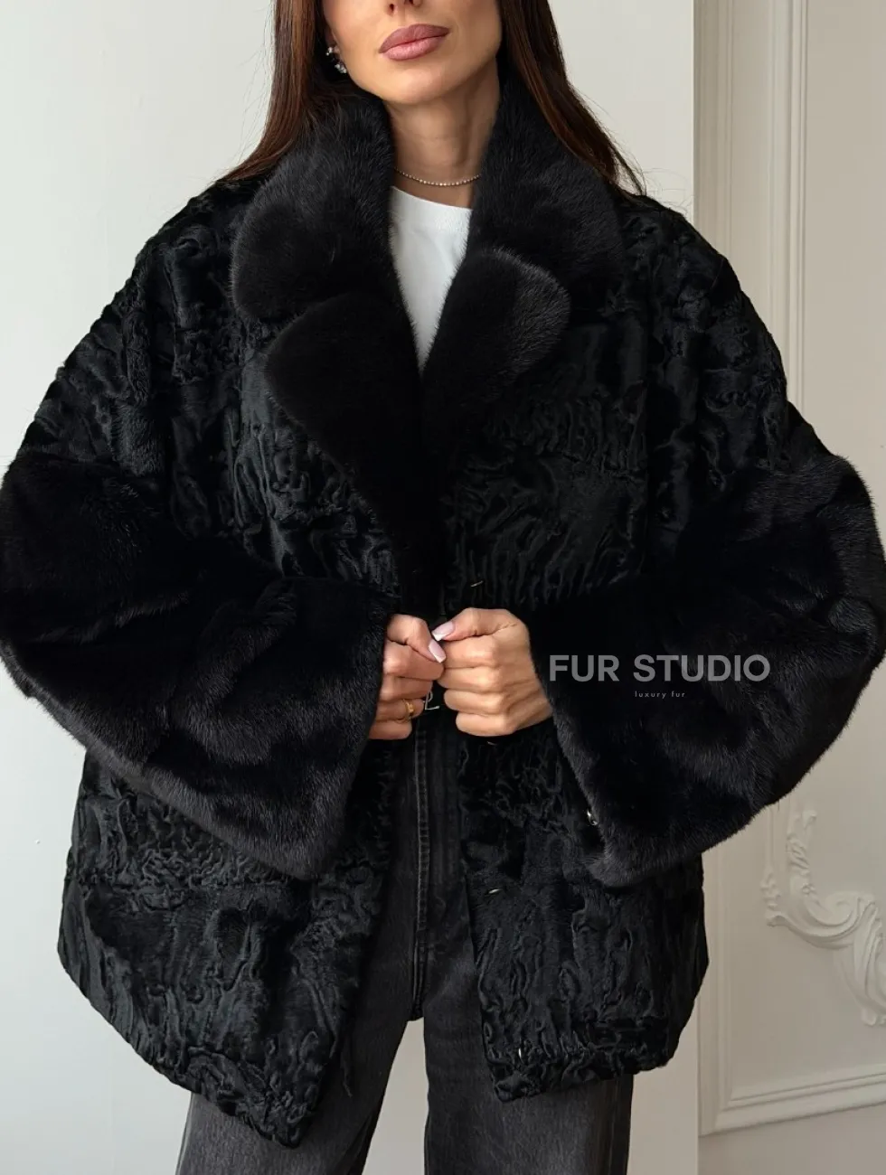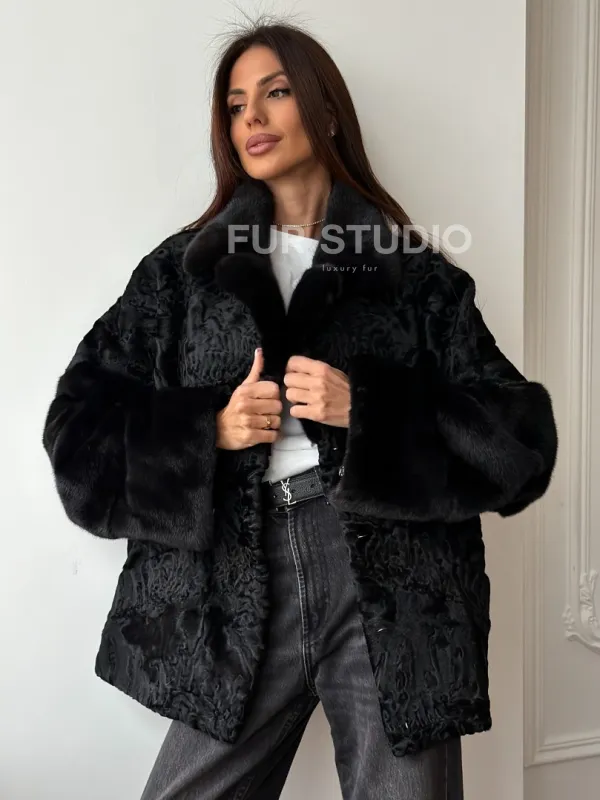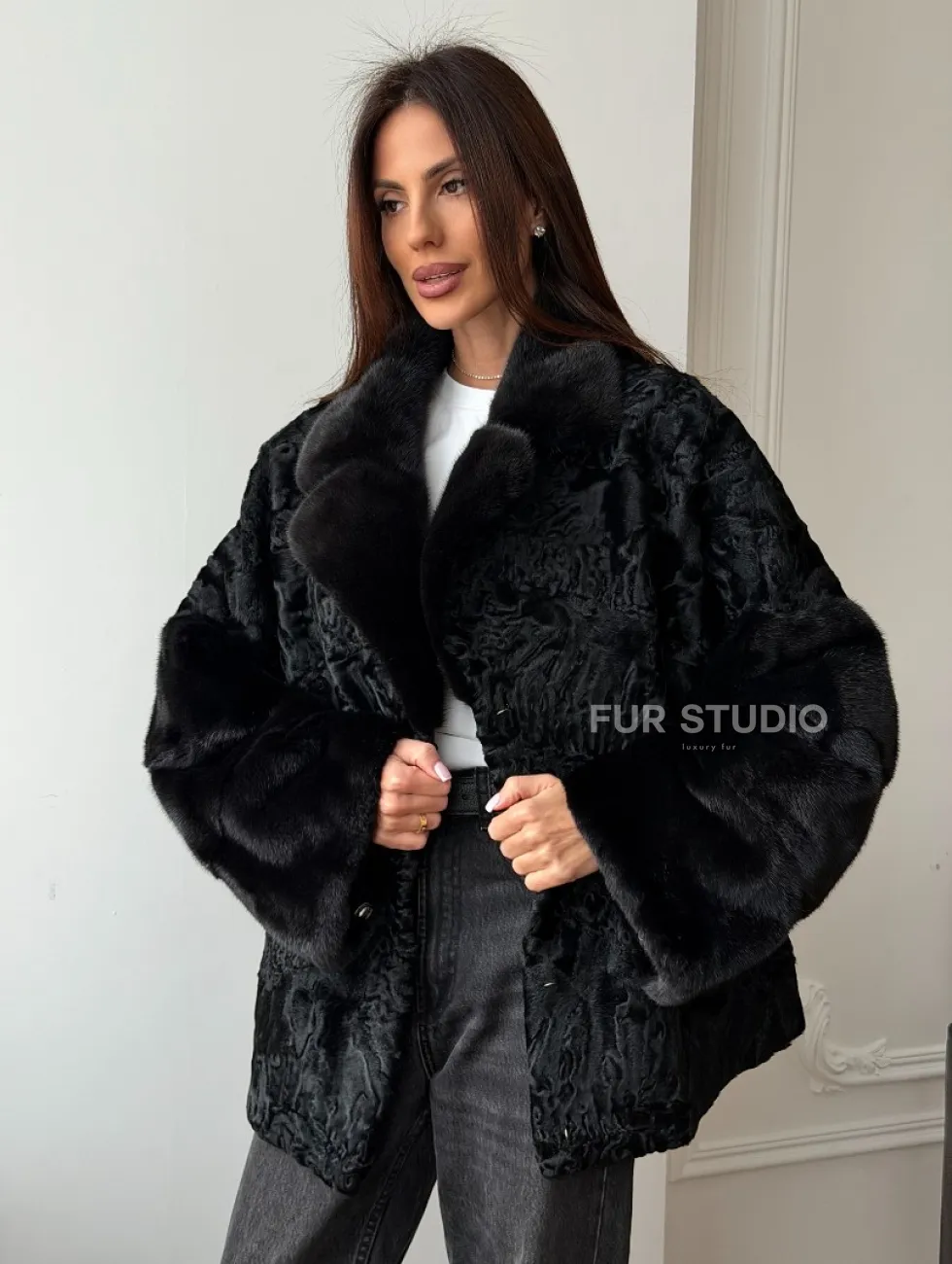Полушубок из каракуля с норкой доступна для покупки в нашем шоуруме Furs Studio в Чите. У нас так же есть доставка во все города России. Добавьте немного роскоши в свой гардероб с этой шубой, которая будет служить вам многие годы.