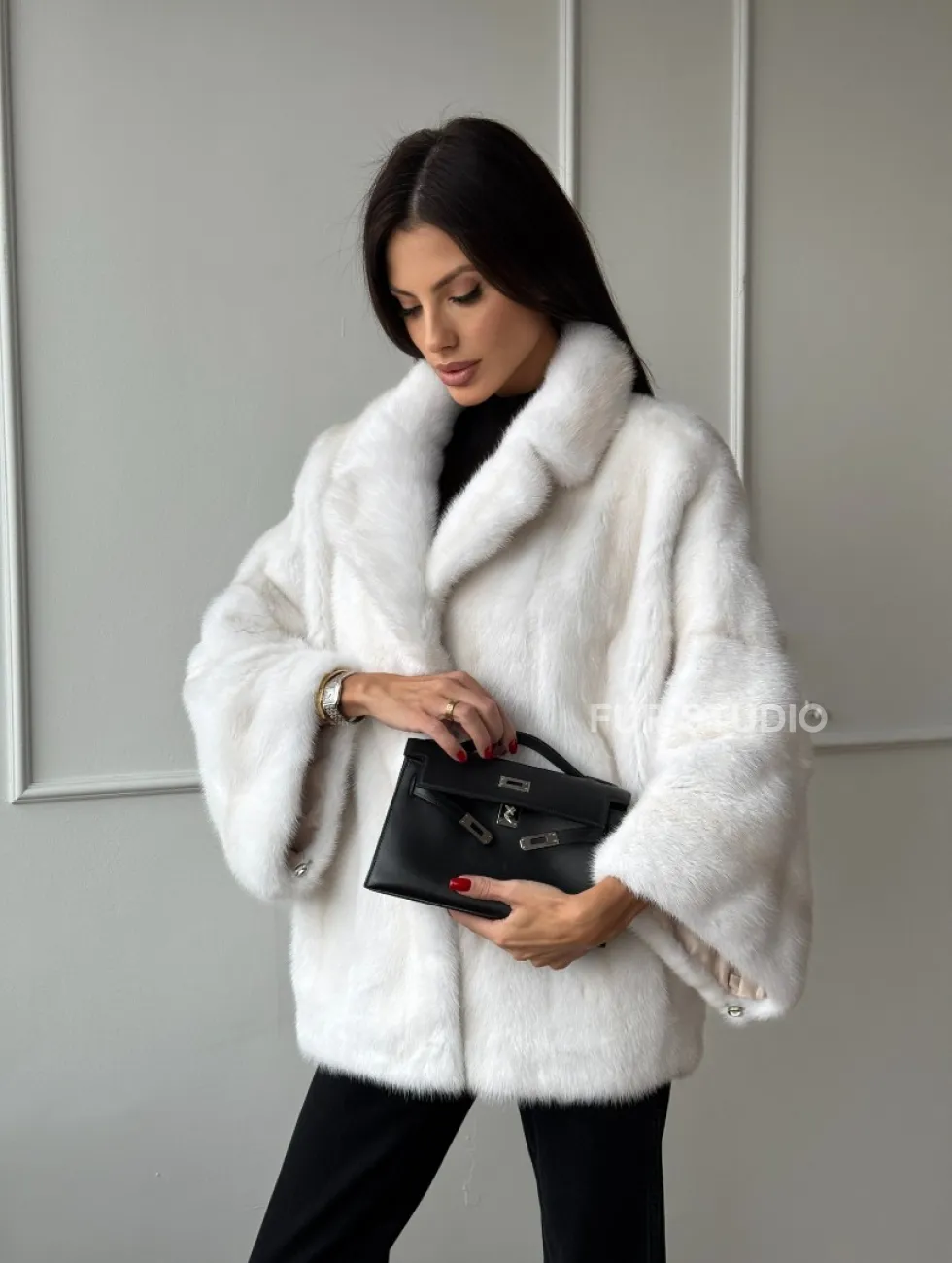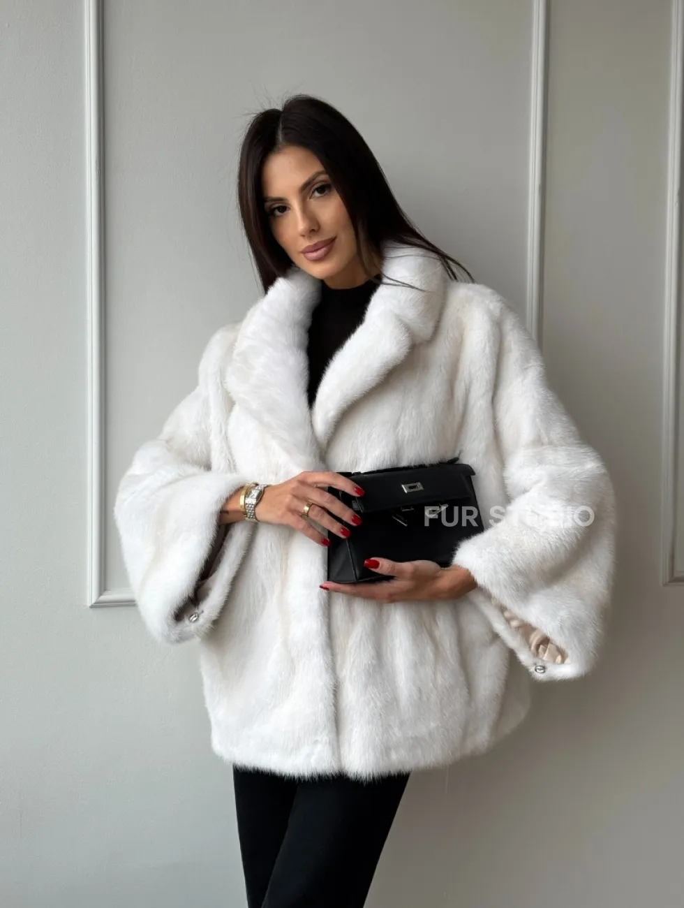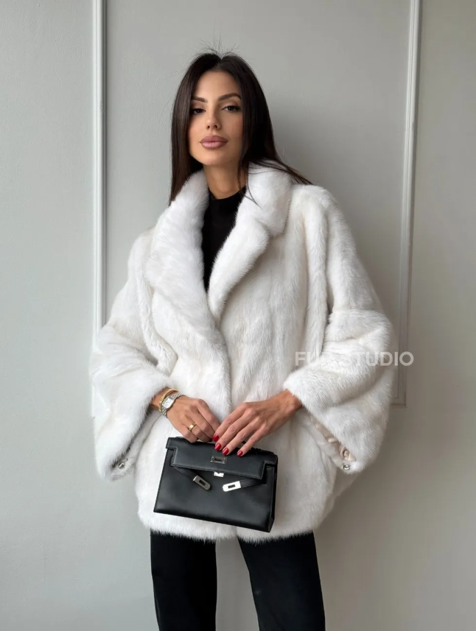 Мех данной шубы аукционная норка, цвет белый. Предлагается в размерах от 42 до 50. Длина модели 60-65 см, что выгодно подчеркивает фигуру девушек. Эта модель идеально подойдет для девушек и женщин, предпочитающих роскошные натуральные меха.