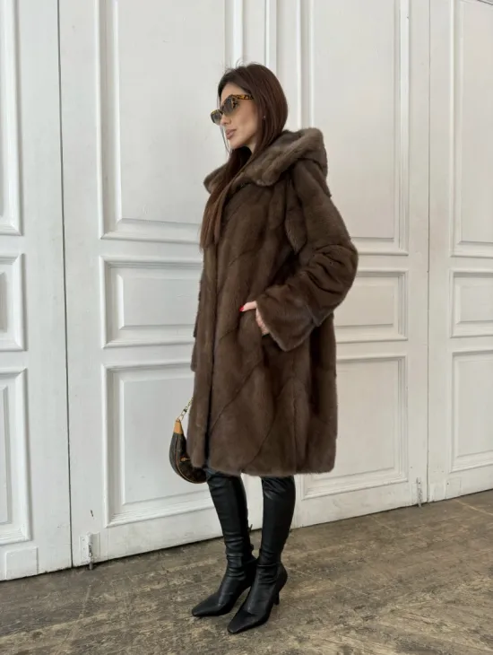 Длина оптимальна и комфортна в носке. Роскошный воротник выделяет изгибы шеи и не согреет в непогоду. Необычный пояс очертит талию и сделает ее тоньше. Модель сочетается с любым гардеробом: от классического стиля до вечерних нарядов. Купить полушубок из меха норки в цвете пастель могут женщины, которые обладают изысканным и тонким вкусом стиля.
