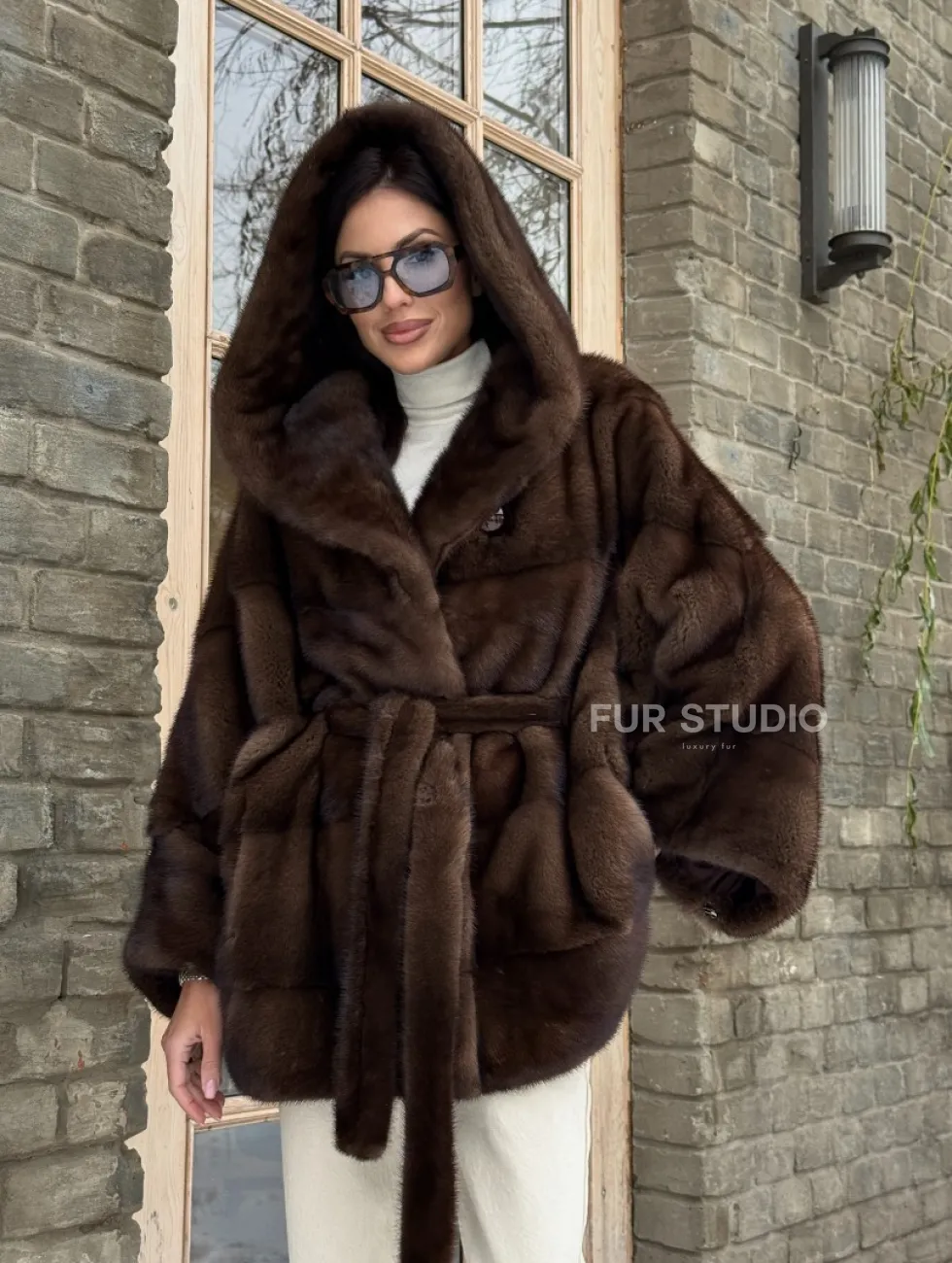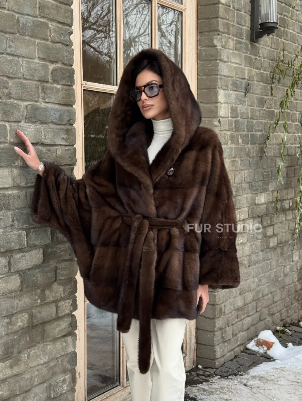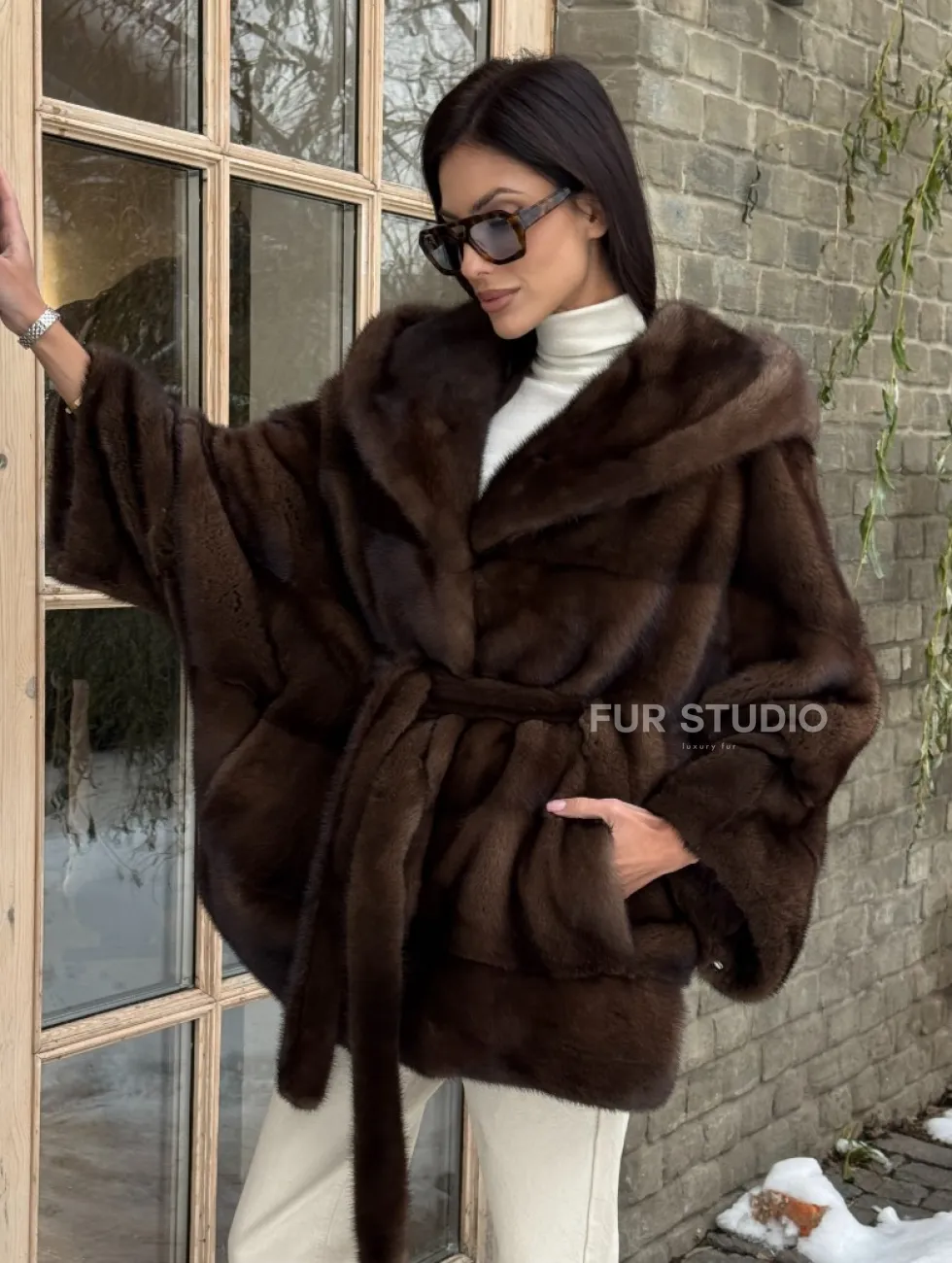 Полушубок из натурального меха норки Nafa mink в цвете соболь с капюшоном, фасон - летучая мышь доступна для покупки в нашем шоуруме Furs Studio в Чите. У нас так же есть доставка во все города России. Добавьте немного роскоши в свой гардероб с этой шубой, которая будет служить вам многие годы.