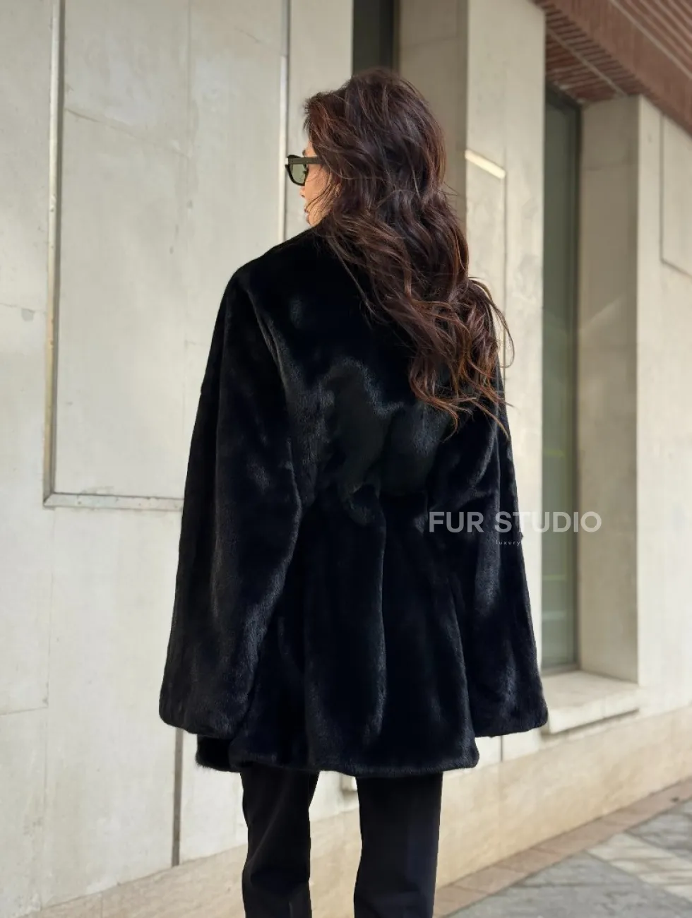 Мех данной шубы аукционная норка, цвет черный. Предлагается в размерах от 42 до 52. Длина модели 75-80 см, что выгодно подчеркивает фигуру девушек. Эта модель идеально подойдет для девушек и женщин, предпочитающих роскошные натуральные меха.
