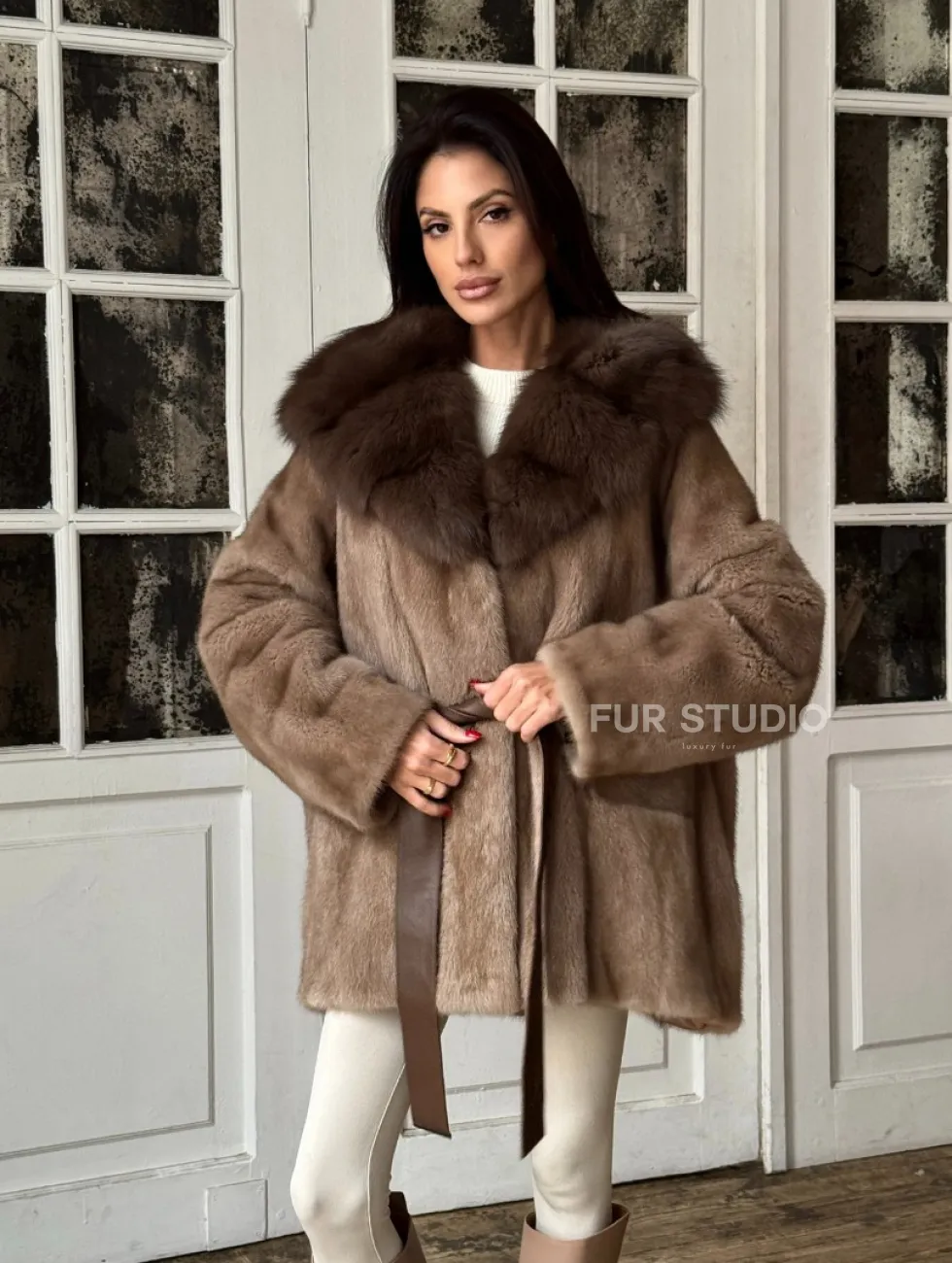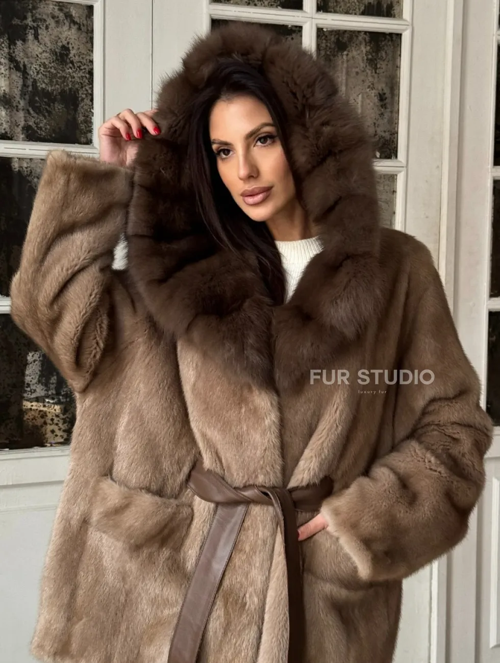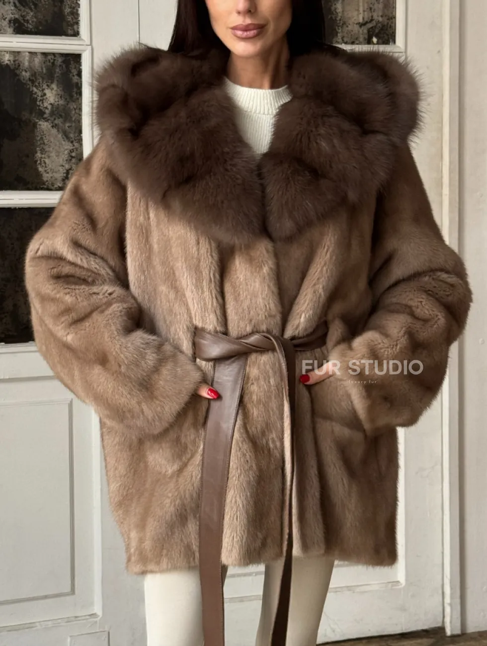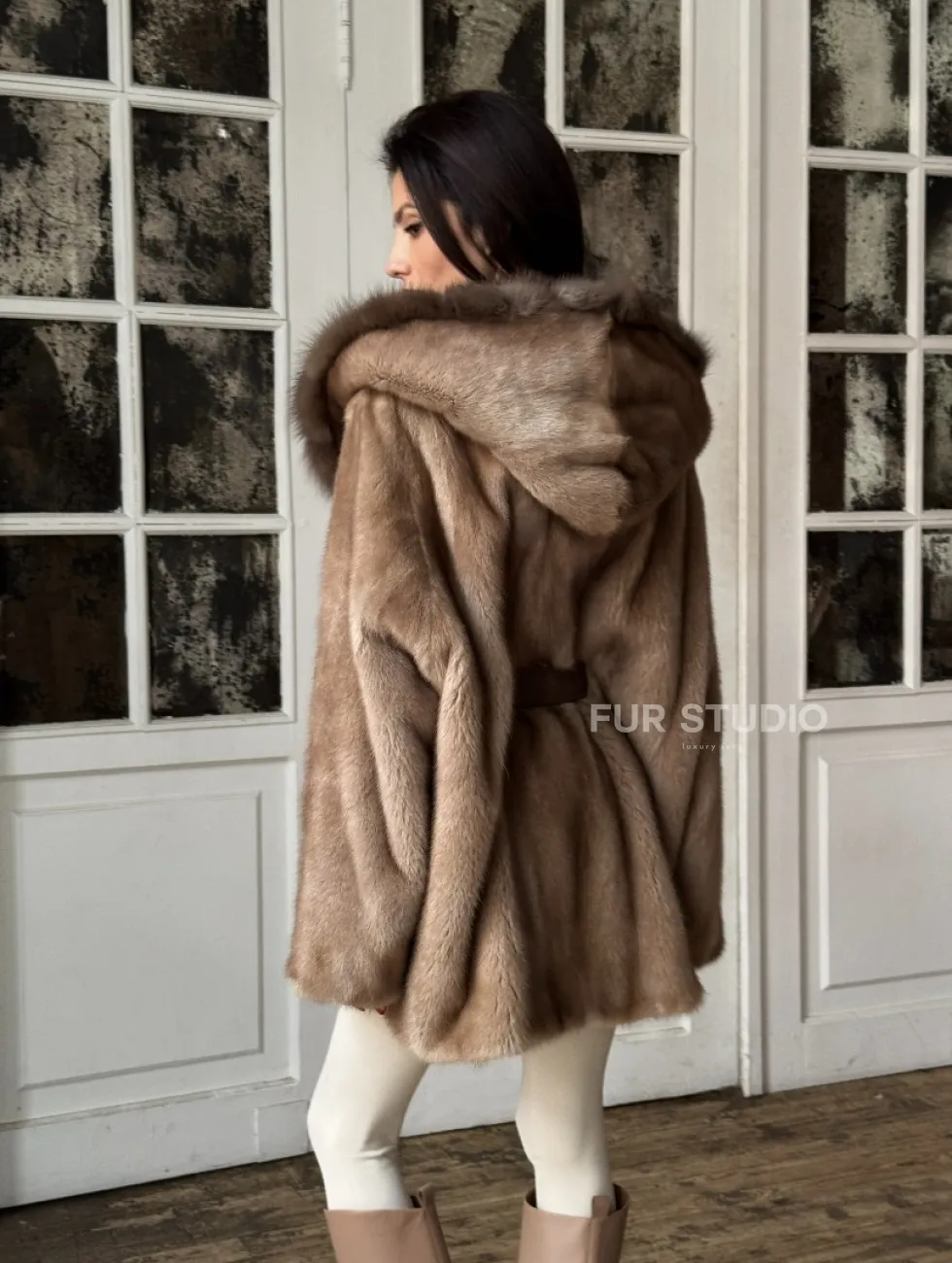 Полушубок кимоно из меха норки Almond с капюшоном куница доступна для покупки в нашем шоуруме Furs Studio в Чите. У нас так же есть доставка во все города России. Добавьте немного роскоши в свой гардероб с этой шубой, которая будет служить вам многие годы.
