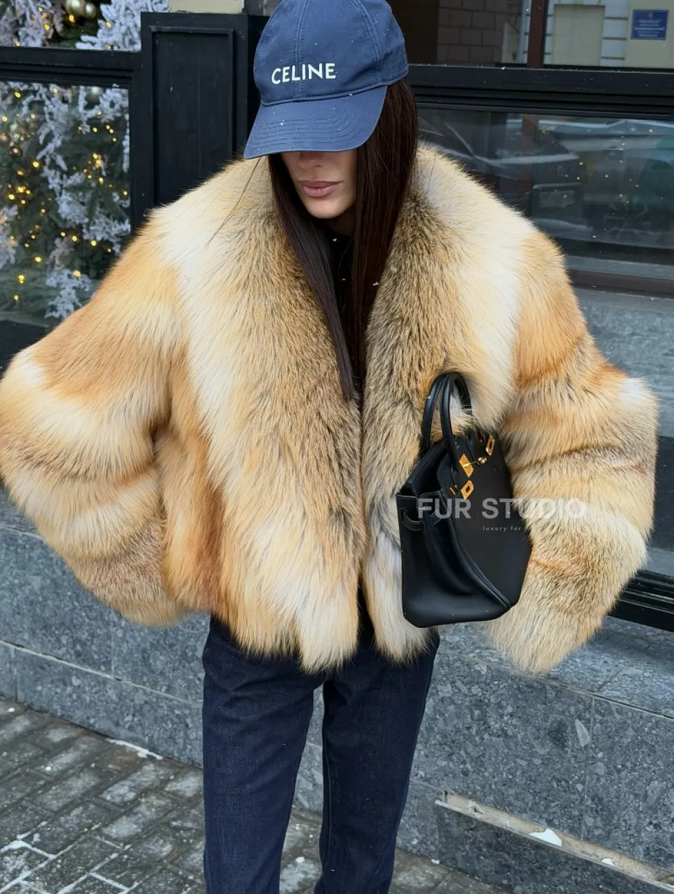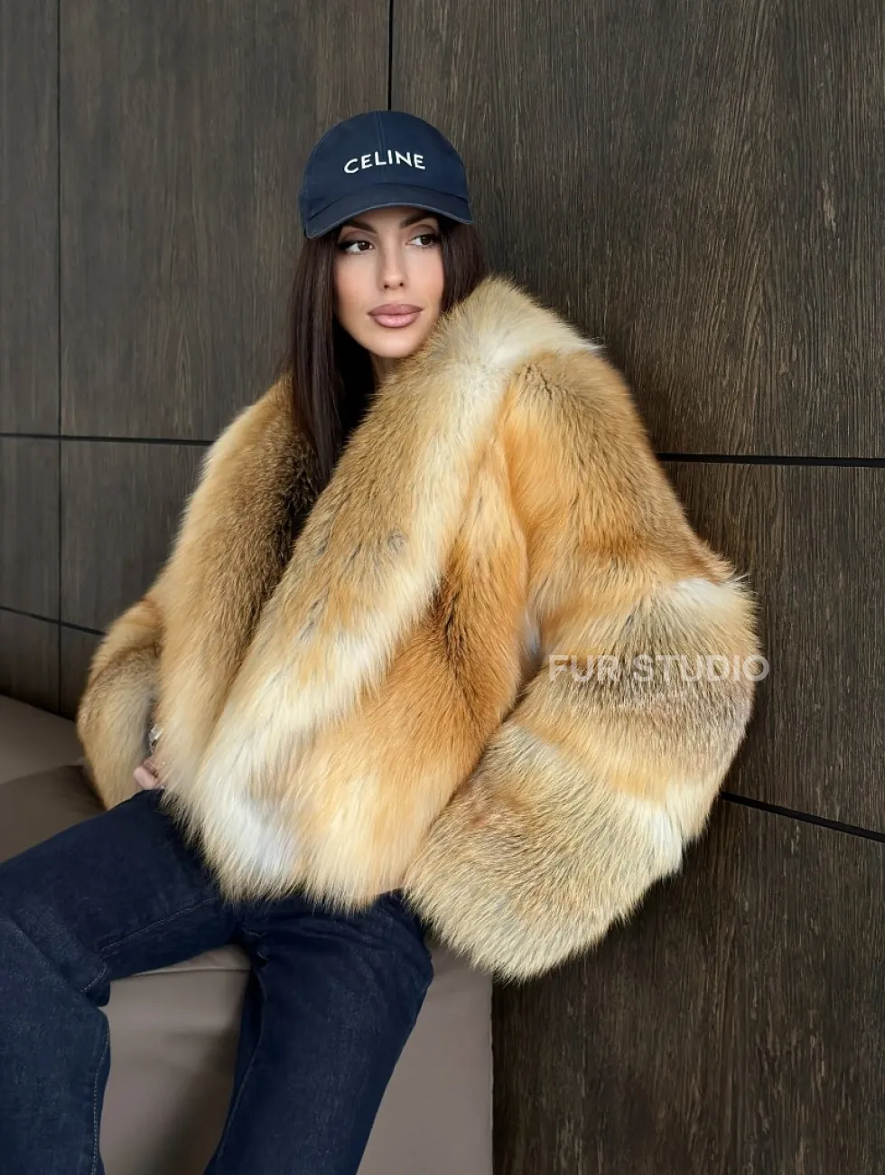 Мех данной шубы лиса, цвет рыжий. Предлагается в размерах от 42 до 46. Длина модели 50-55 см, что выгодно подчеркивает фигуру девушек. Эта модель идеально подойдет для девушек и женщин, предпочитающих роскошные натуральные меха.