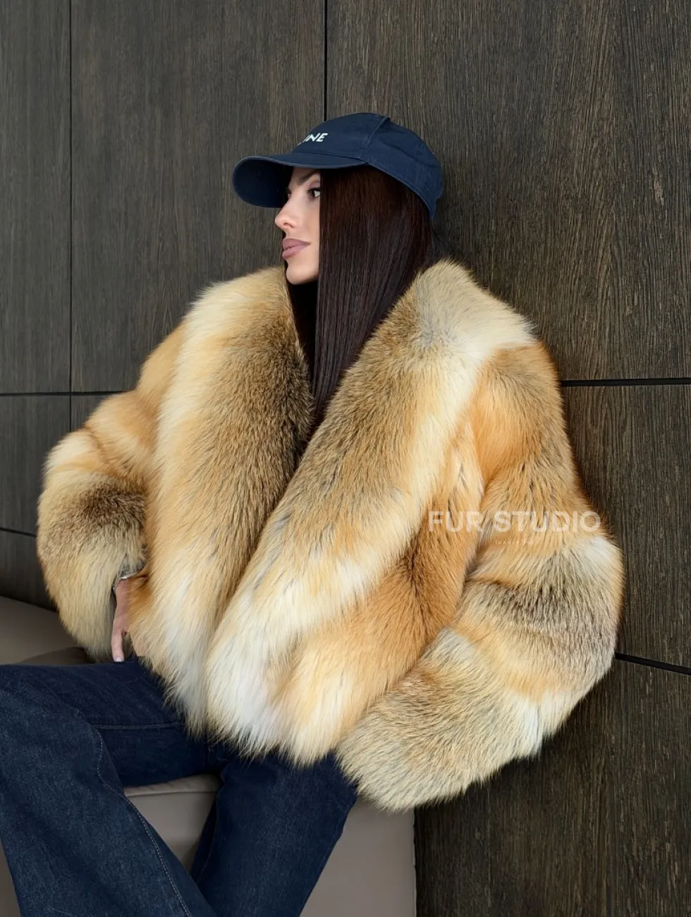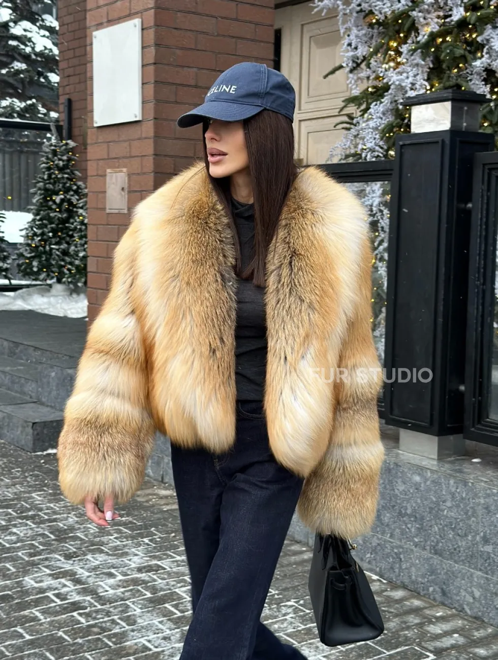 Полушубок-кроп с большим шалевым воротником из меха лисы Golden Sunrise доступна для покупки в нашем шоуруме Furs Studio в Чите. У нас так же есть доставка во все города России. Добавьте немного роскоши в свой гардероб с этой шубой, которая будет служить вам многие годы.