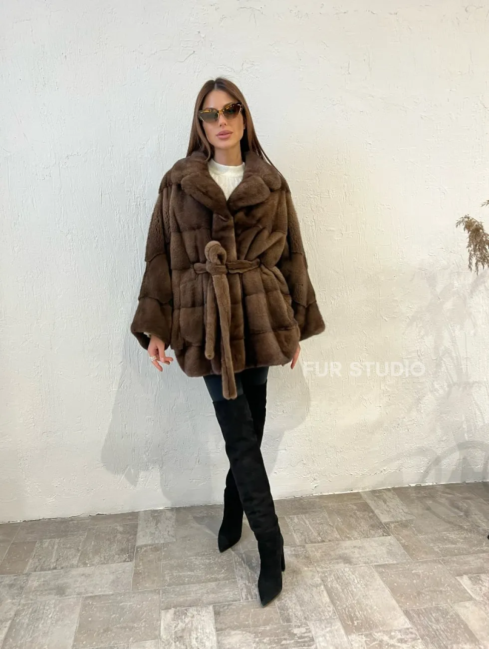 Пончо - шуба из плюшевой североамериканской норки цвет соболь доступна для покупки в нашем шоуруме Furs Studio в Чите. У нас так же есть доставка во все города России. Добавьте немного роскоши в свой гардероб с этой шубой, которая будет служить вам многие годы.