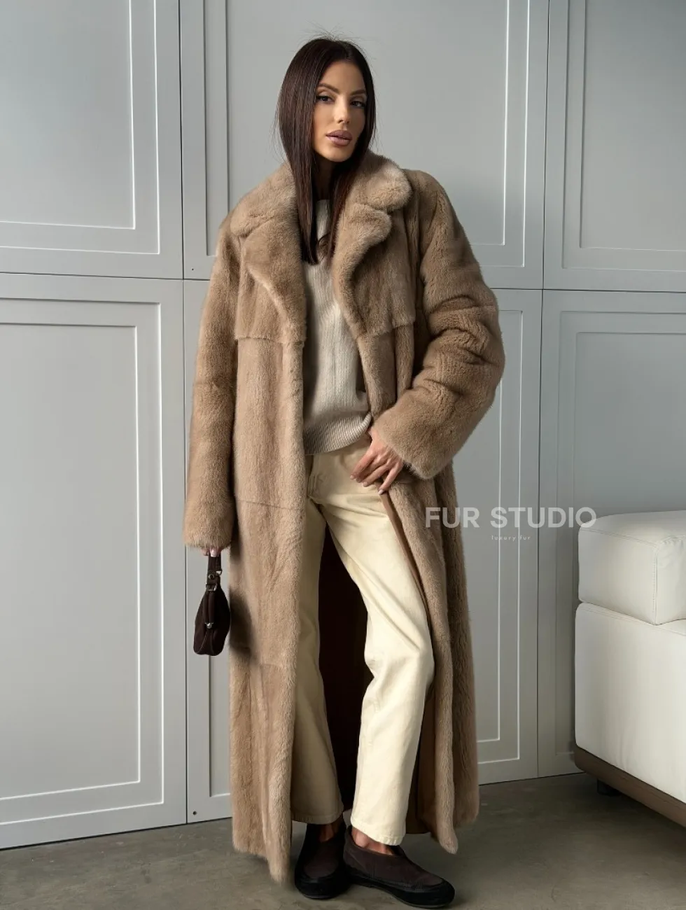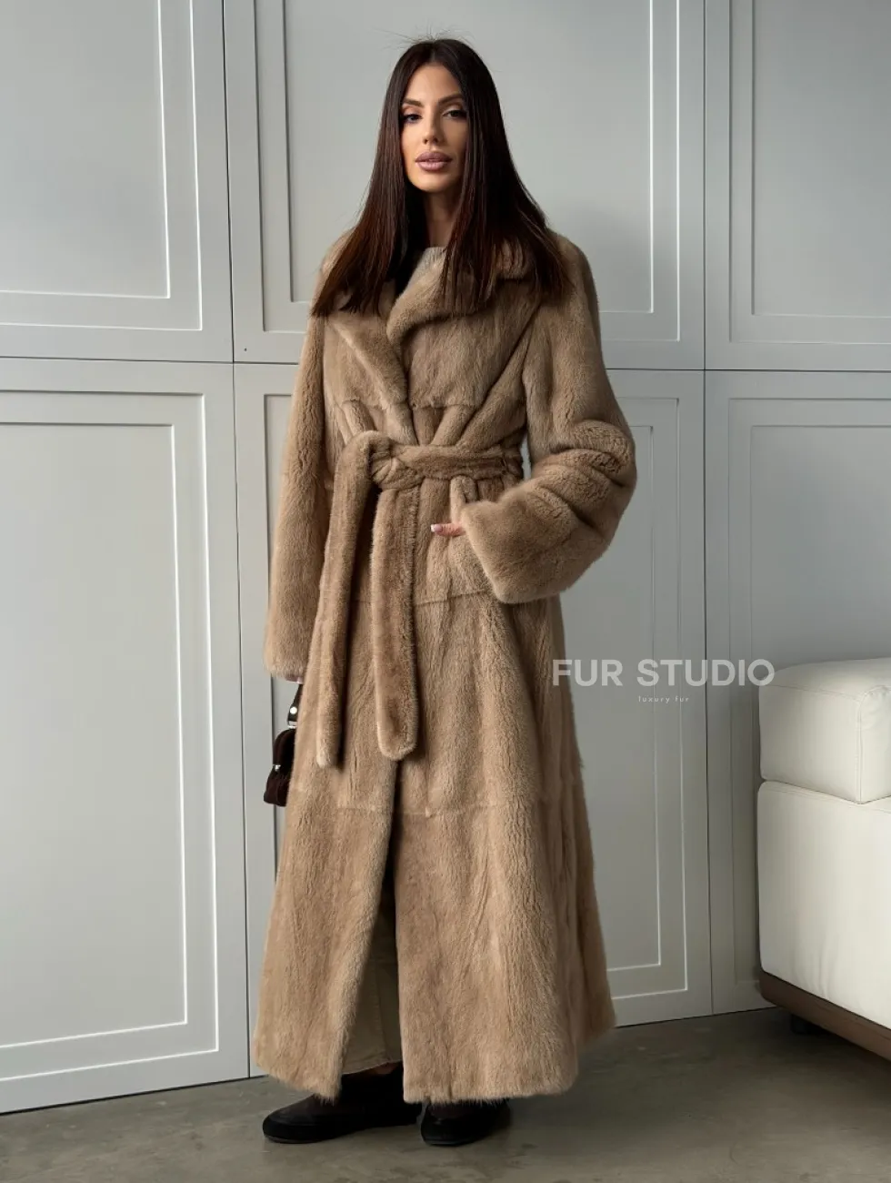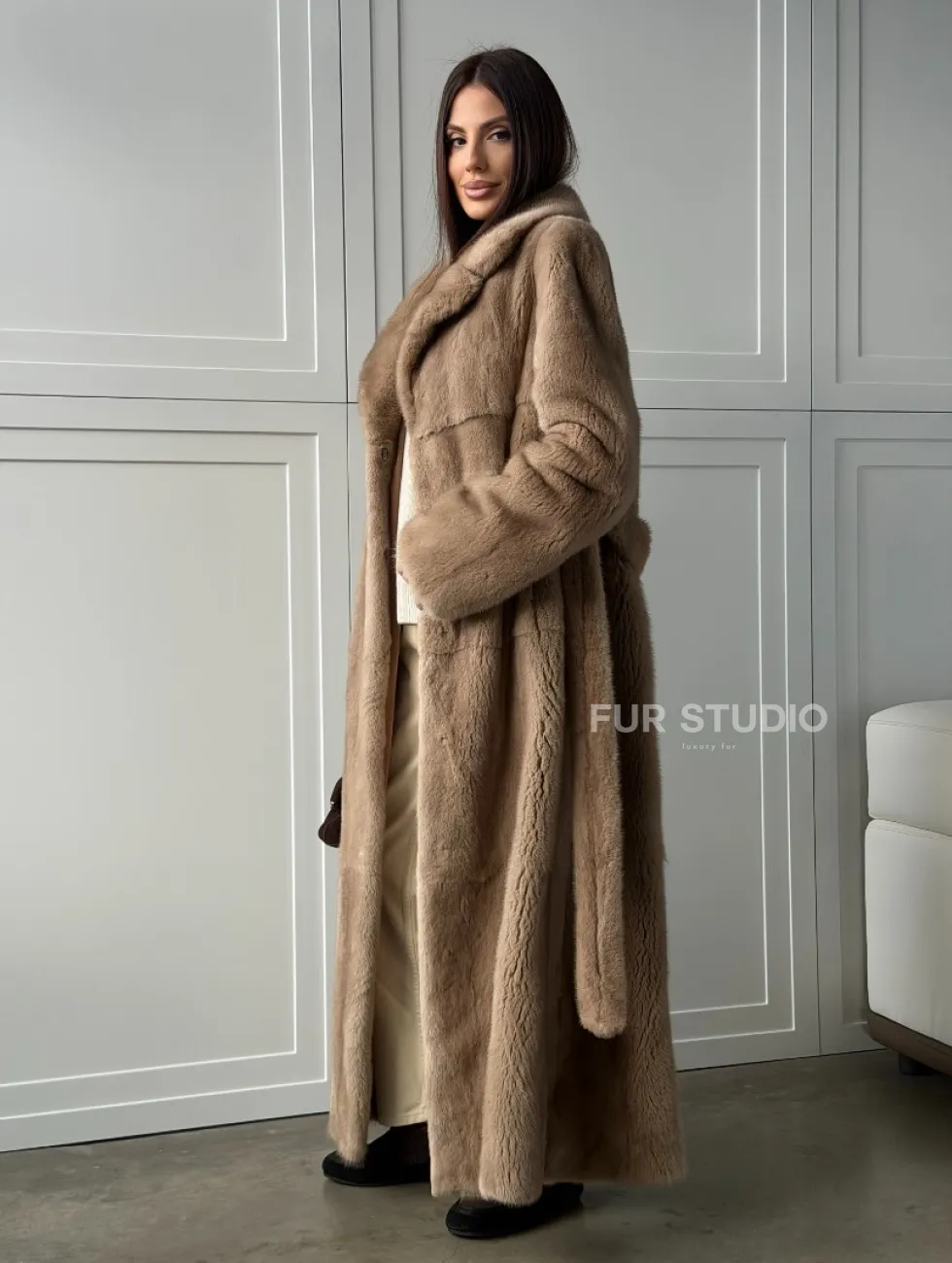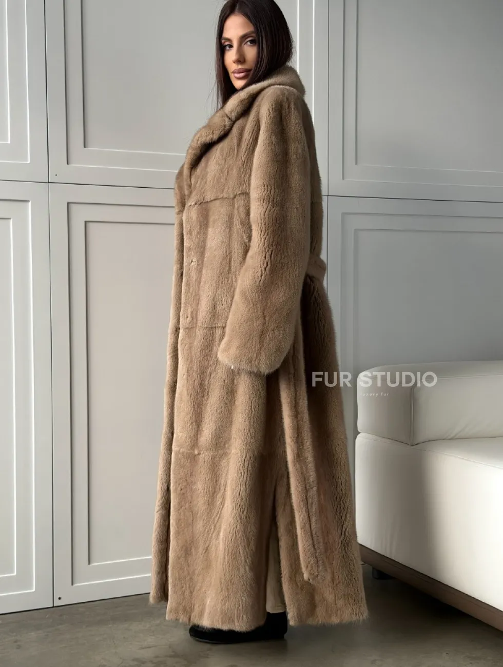 Прямая шуба из меха норки с поясом (бежевая) доступна для покупки в нашем шоуруме Furs Studio в Чите. У нас так же есть доставка во все города России. Добавьте немного роскоши в свой гардероб с этой шубой, которая будет служить вам многие годы.