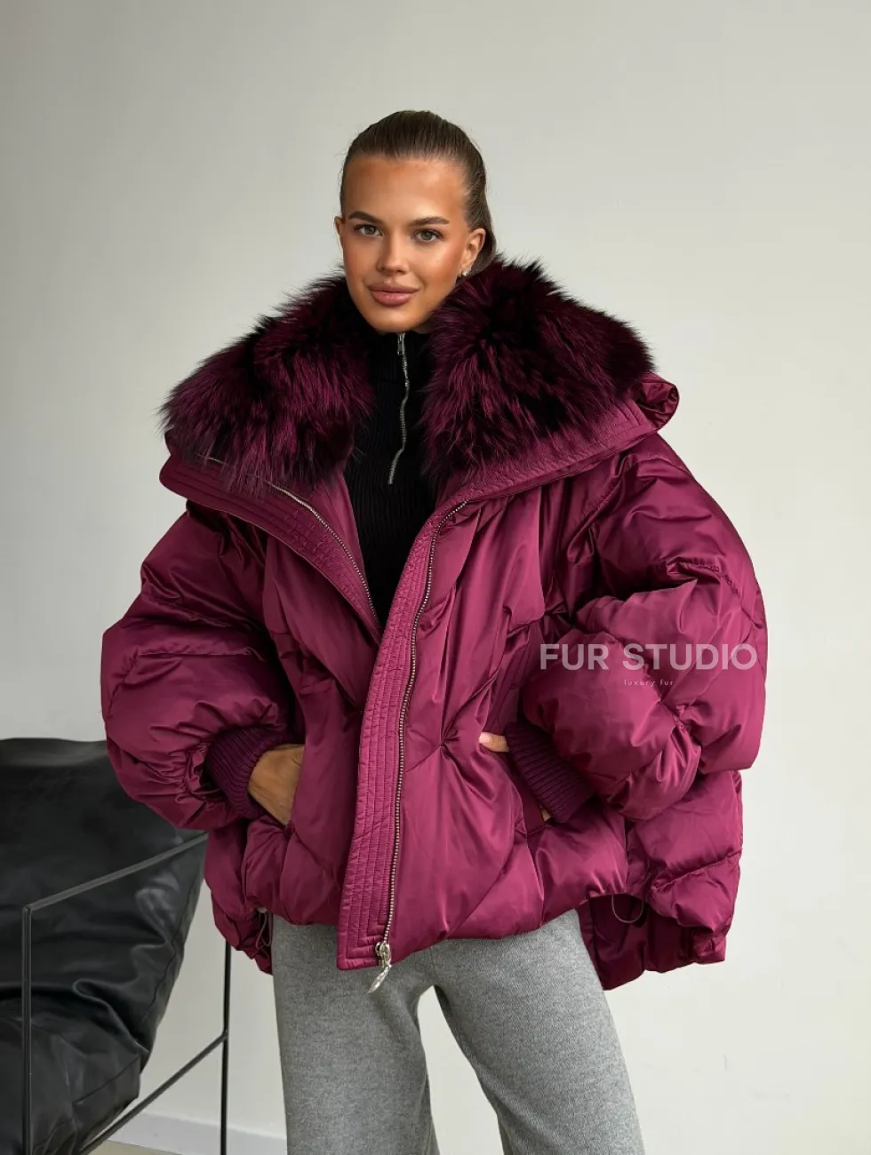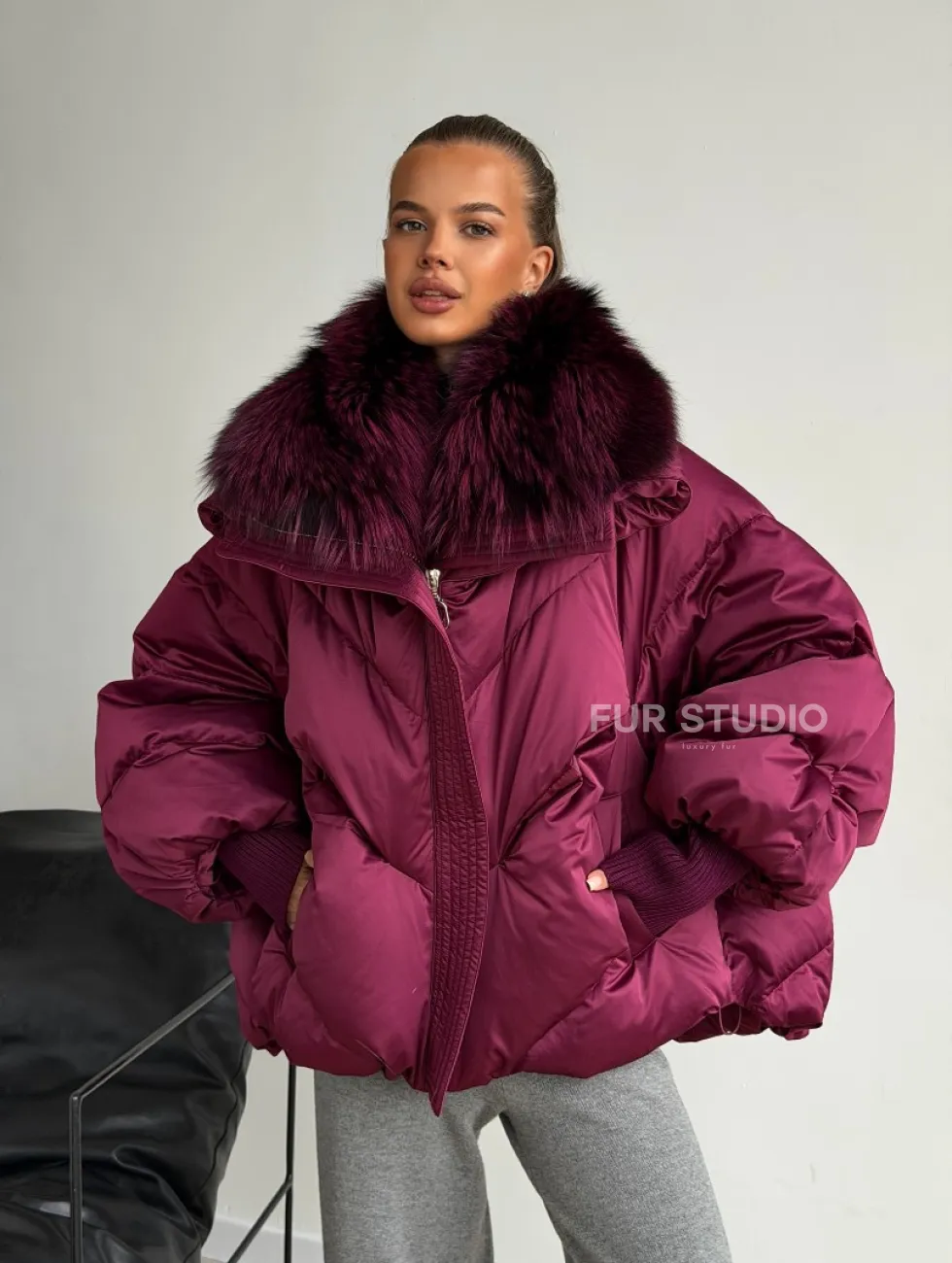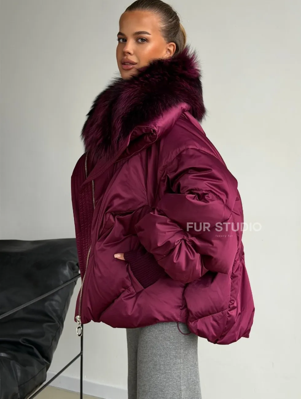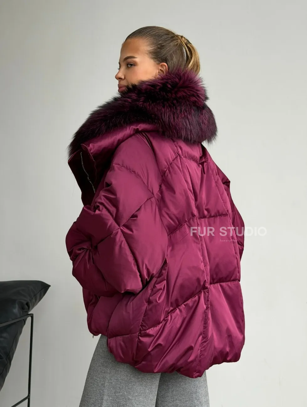 Пуховик с мехом чернобурки 102580