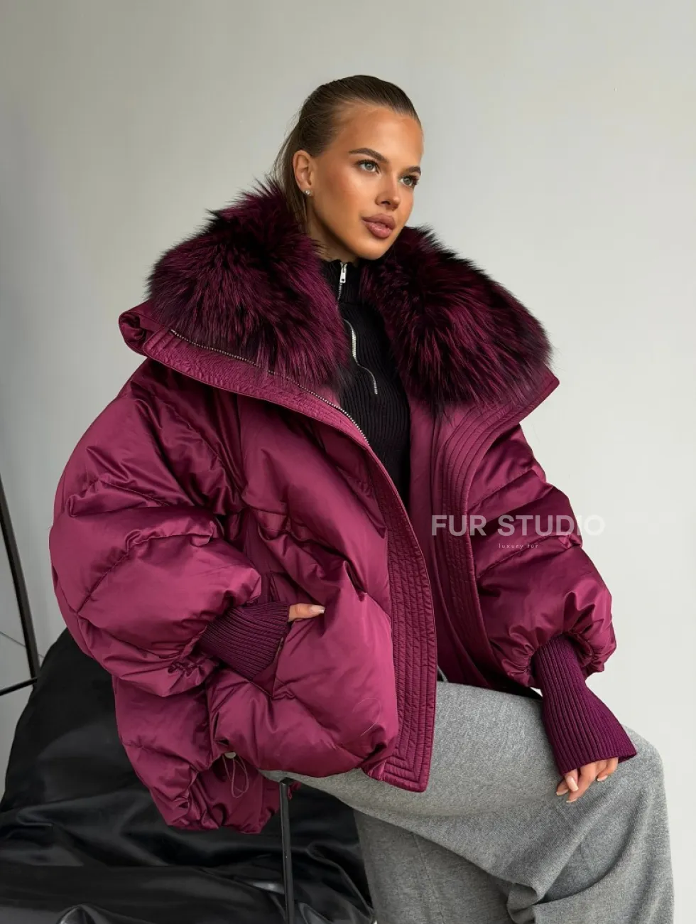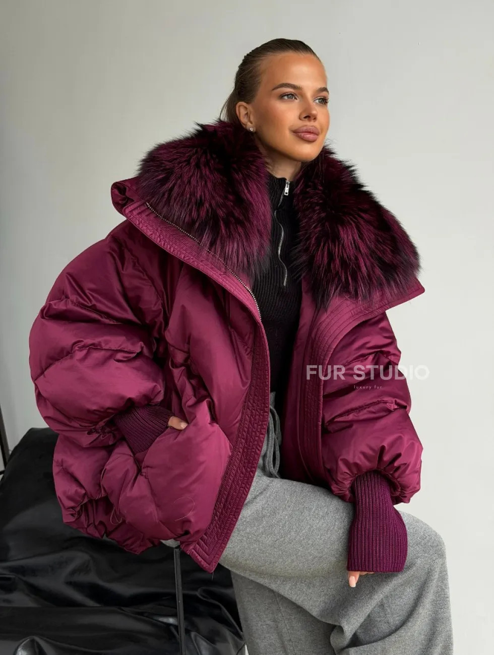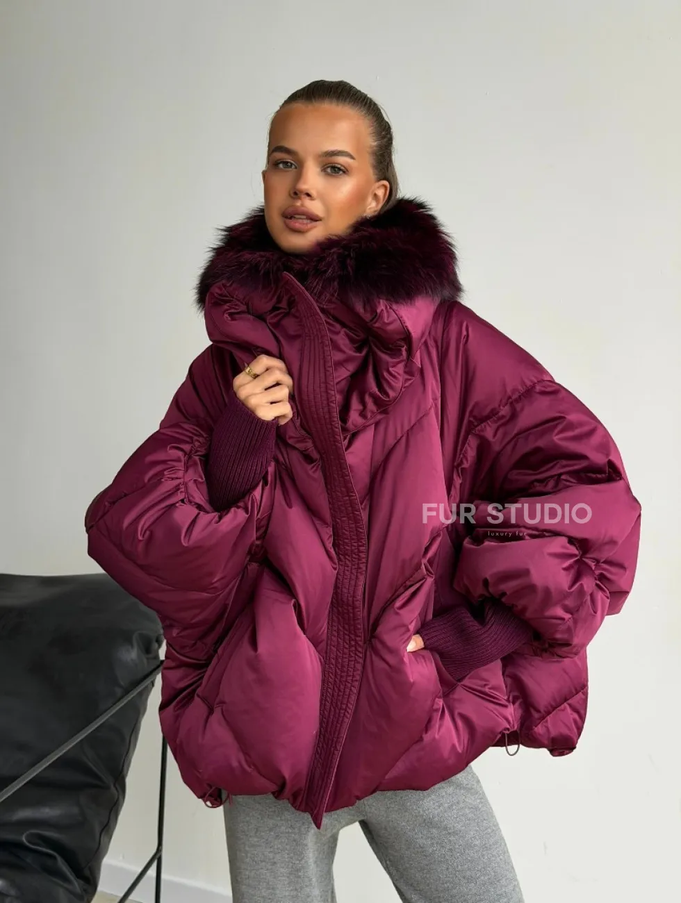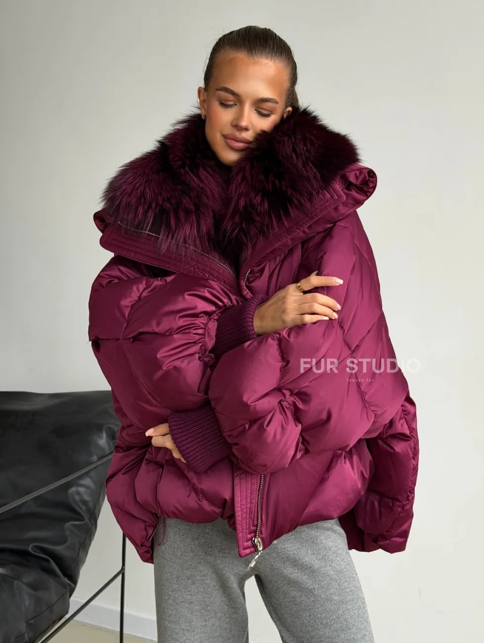 Пуховик с мехом чернобурки 102580
