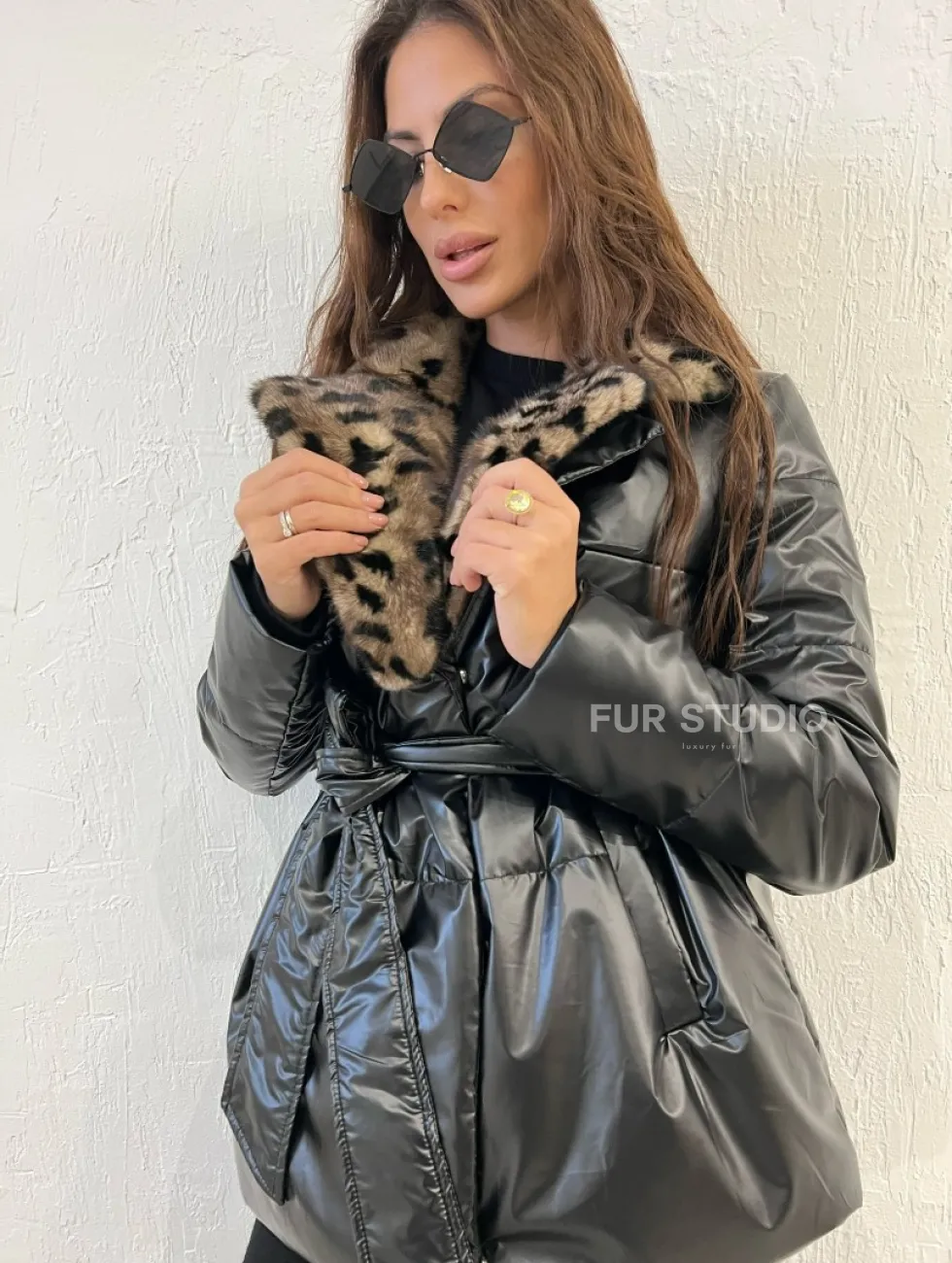 Модель идеальна для дам любого возраста. Длина оптимальна и комфортна для повседневной носки. Необычный пояс выделяет талию и делает силуэт хрупким. Изделие подходит к стилю casual, вечернему наряду. Купить пуховик с мехом норки в анималистическом принте - это отличное соотношение цена/качество.